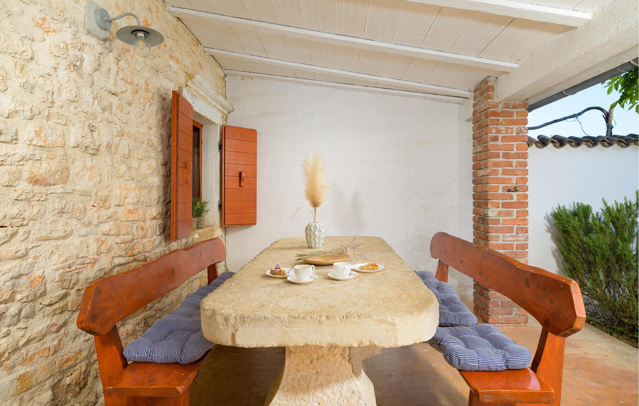 Denne smukke, rustikke Villa Nona Milka ligger i den lille landsby Juršici på den sydlige del af Istrien-halvøen. Kun 15 minutters kørsel væk ligger de attraktive byer Pula, Vodnjan og Rovinj, som helt sikkert vil glæde jer med deres rige turist- og gastronomiske tilbud samt deres kulturelle og historiske arv. Villa Nona Milka blev renoveret i 2015 og har bevaret alle træk ved traditionel istrisk arkitektur. Villaen er indrettet for at give en følelse af komfort og afslapning med sin historiske charme. Den består af fire smukke soveværelser, tre komfortable badeværelser, et fuldt udstyret køkken og en stue, der er perfekt til afslapning om eftermiddagen. I gården til Villa Nona Milka er der en 30 m² stor swimmingpool og et havehus med grill, hvor I kan tilberede friske og lækre måltider til familien og venner. Der er også et komfortabelt udendørs siddeområde til i alt 8 personer. Villa Nona Milka tilbyder sine gæster underholdningsmuligheder såsom bordfodbold, bordtennis og en lille legeplads for børn. Villa Nona Milka ligger i den forladte gamle bydel og tilbyder derfor sine gæster fuldstændig privatliv, hvilket sikrer en perfekt og afslappende ferie i fuldstændig privatliv. Den nærmeste strand ligger kun 10 km væk. Kæledyr er tilladt på denne ejendom efter ejerens skøn eller mod et gebyr. Bemærk venligst, at denne ejendom ikke accepterer ungdomsgrupper eller polterabender. En ungdomsgruppe på denne ejendom består af personer under 30 år. Book ikke denne ejendom, hvis I er en ungdomsgruppe eller en polterabend, da jeres booking vil blive afvist efter booking, hvilket også kan ske ved ankomst til ejendommen eller under jeres ophold, og I vil ikke blive refunderet.