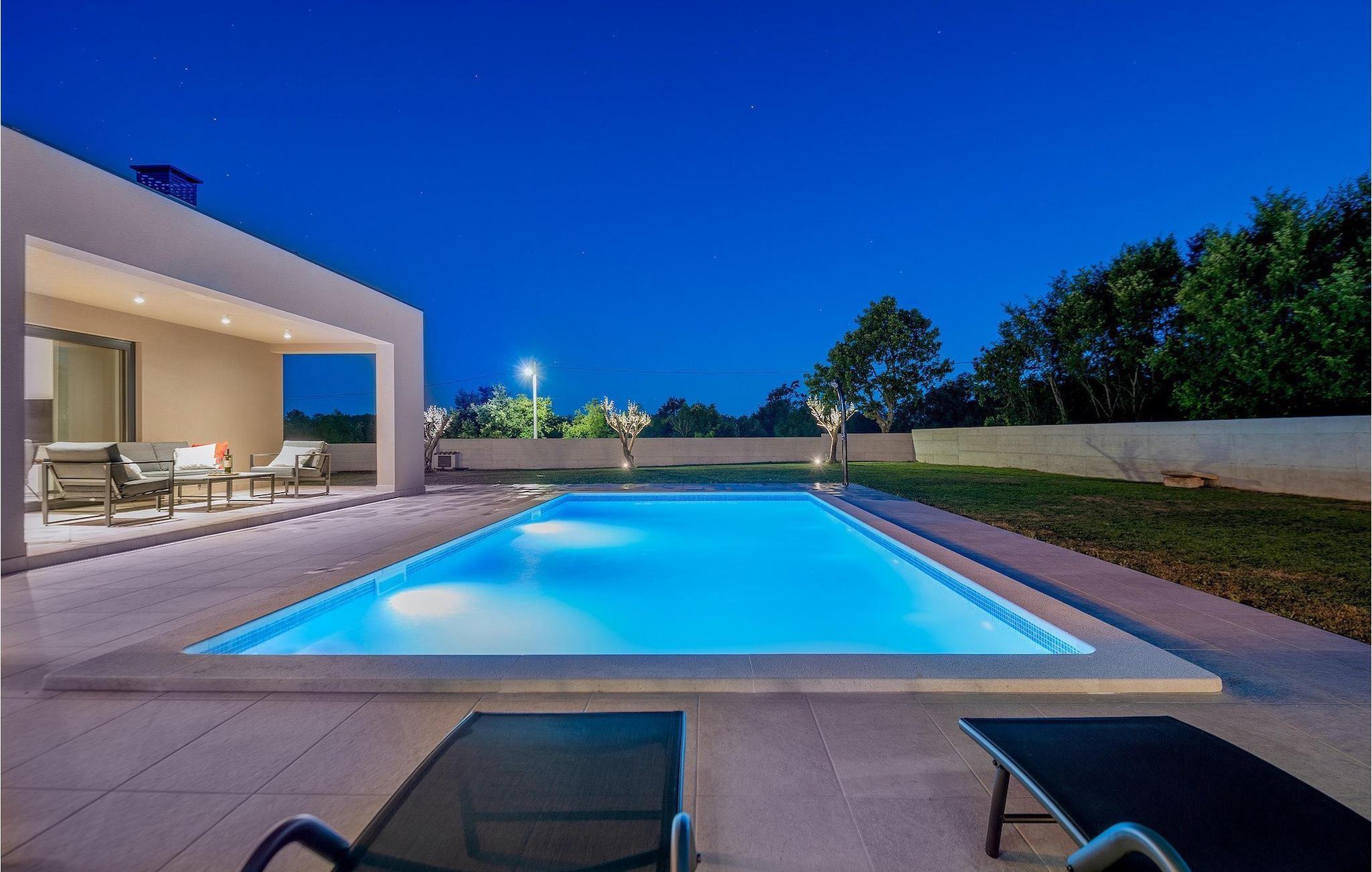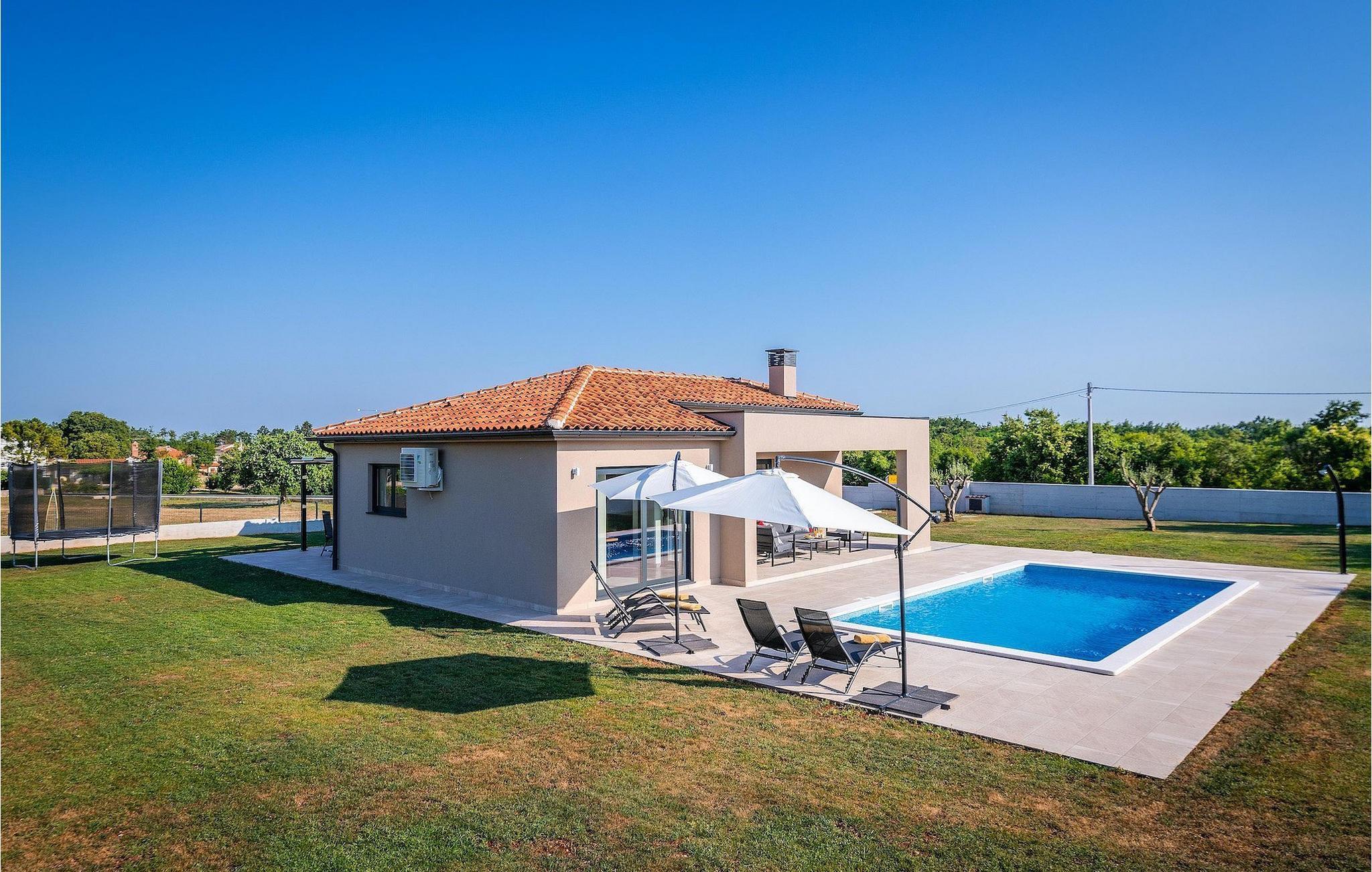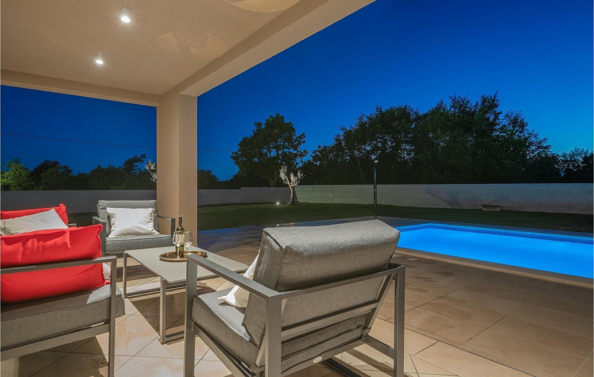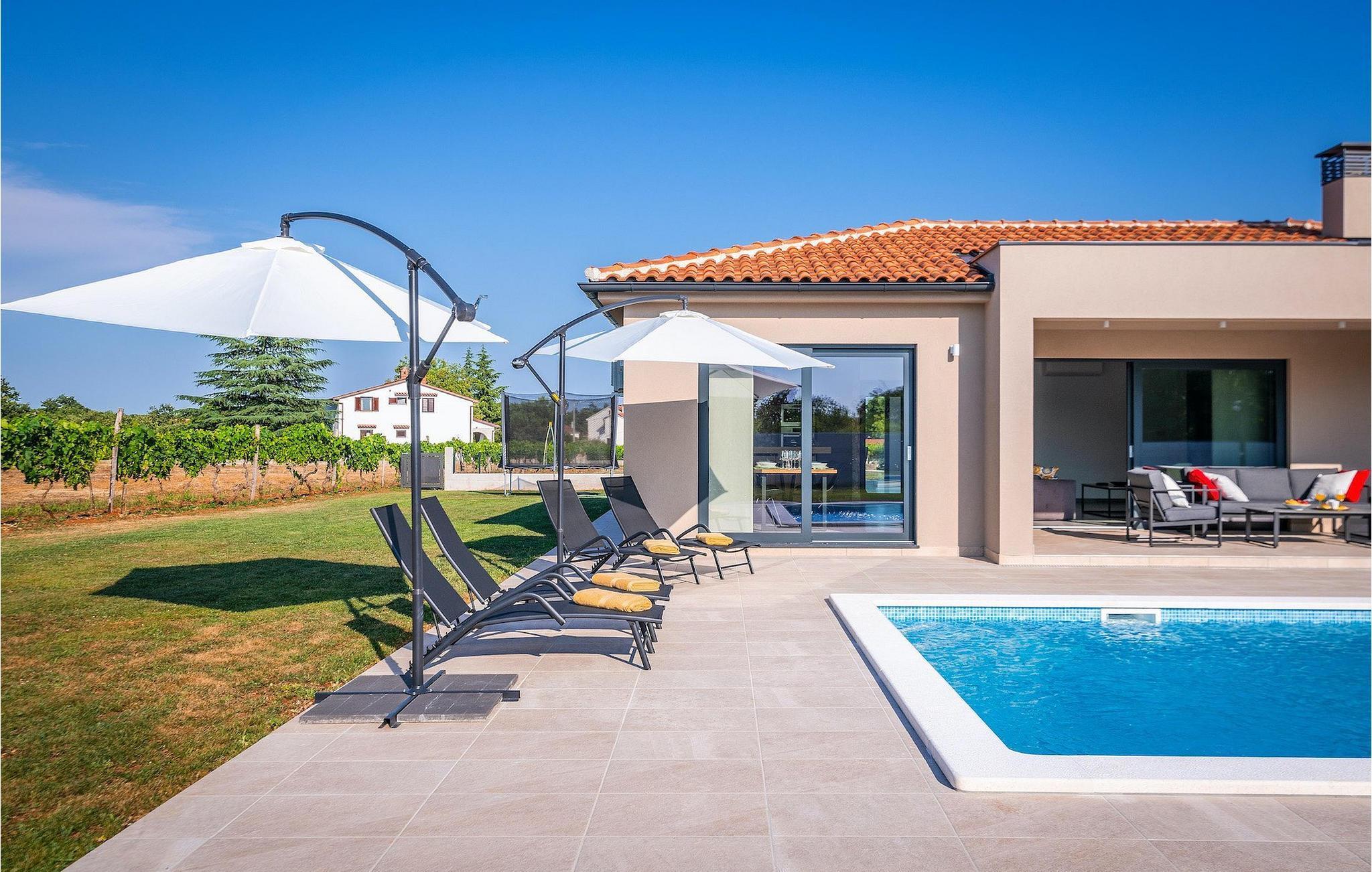 Fra stuen er der direkte adgang til villaens have og poolområde, helt lukket fra alle sider. Mens børnene nyder trampolinen og legepladsen, kan de voksne nyde en kold drink ved poolen eller grillen på terrassen på bagsiden af villaen. Undslippe solen og skjul dig på terrassen og slap af i loungeområdet. Hvis du beslutter dig for at forlade dit private stykke paradis, er placeringen af denne villa en fantastisk startposition for vandreture i naturen, gå til stranden, gastronomiske ture og dagsture til smukke istriske byer som Rovinj, Porec, Pula, Fazana, Vrsar, Rabac...I den syd-centrale del af halvøen Istrien ligger det middelalderlige bymonument St. Vincent. Den gamle arkitektur i byen og de omkringliggende landsbyer er velbevaret, mens vinmarker og oliven dominerer dette område med et varmt middelhavsklima. St. Vincent og det omkringliggende landskab er velkendt, ikke kun for deres historiske og kulturelle arv, men for fremragende vin og ægte istrisk køkken. Istrien er et unikt og fortryllet sted, der har taget imod besøgende og bosættere fra andre dele af verden, så længe vi har nedtegnet historie. Byen Pula med dets romerske amfiteater og Brijuni nationalpark med en 18-hullers golfbane ligger kun en kort køretur væk. Adriaterhavskysten med det krystalklare hav og alle former for vandaktiviteter nær den smukke by Rovinj med dens kunstsamfund er også meget tæt på.