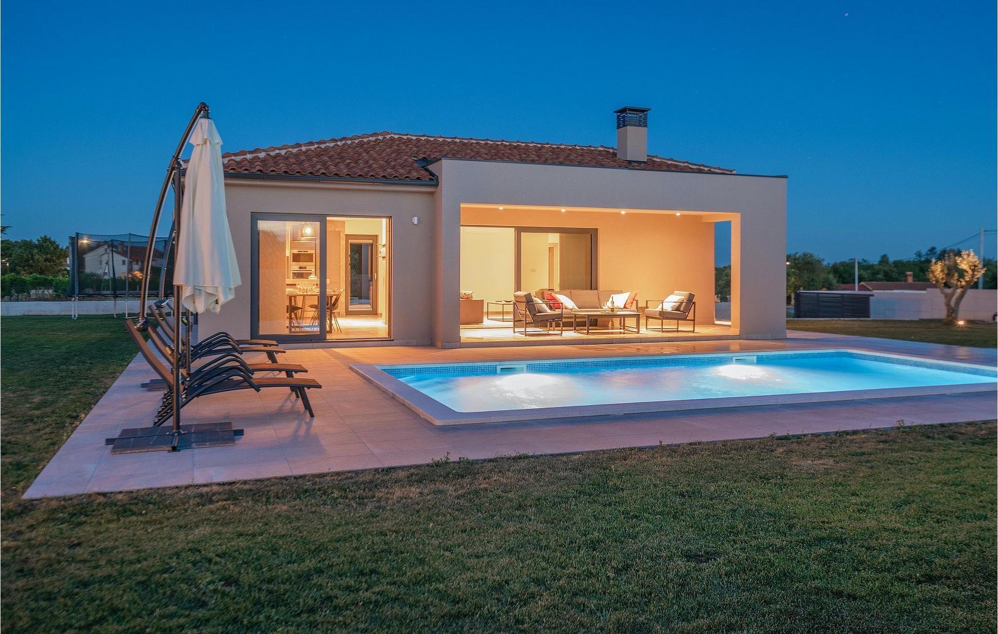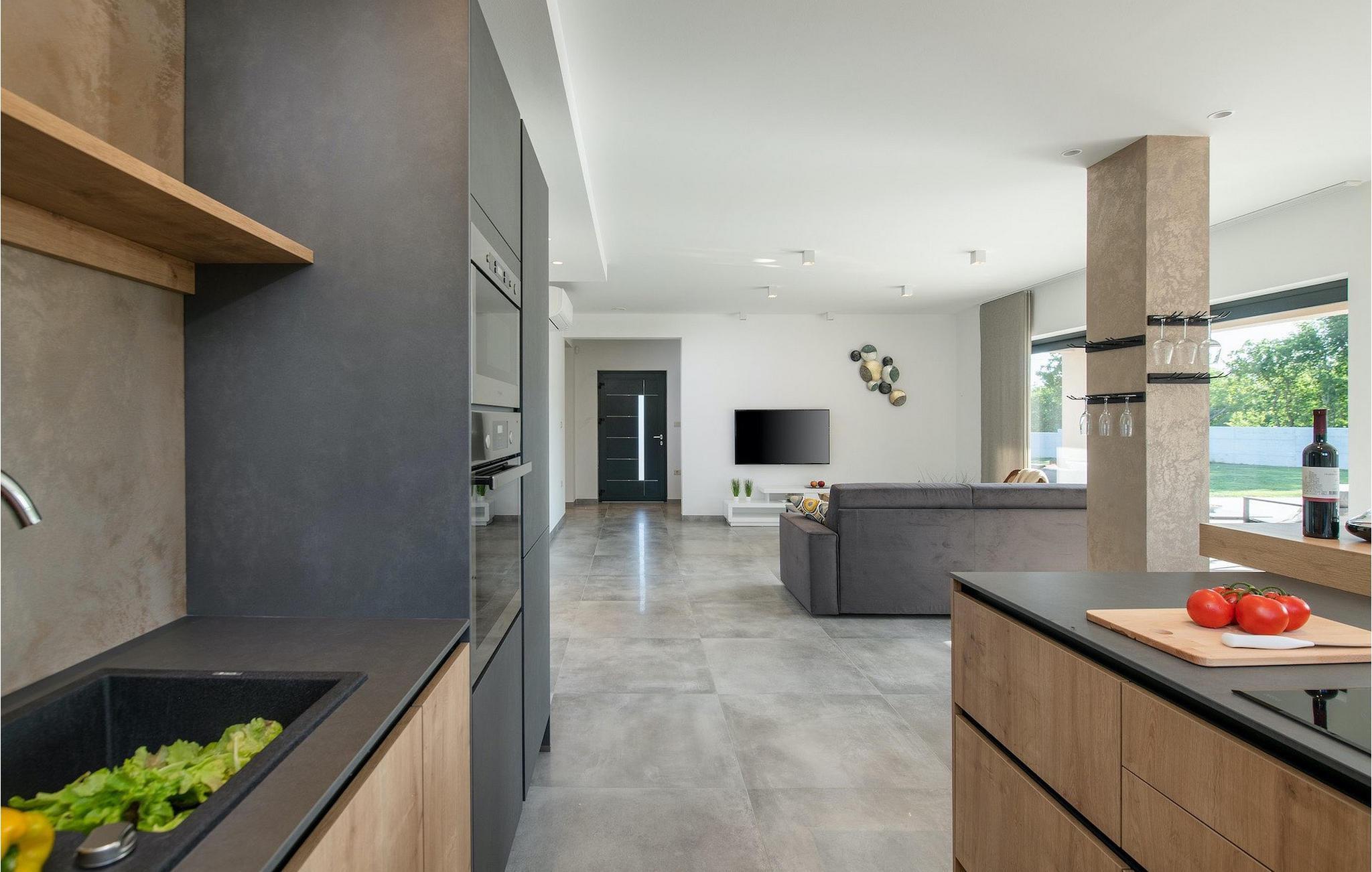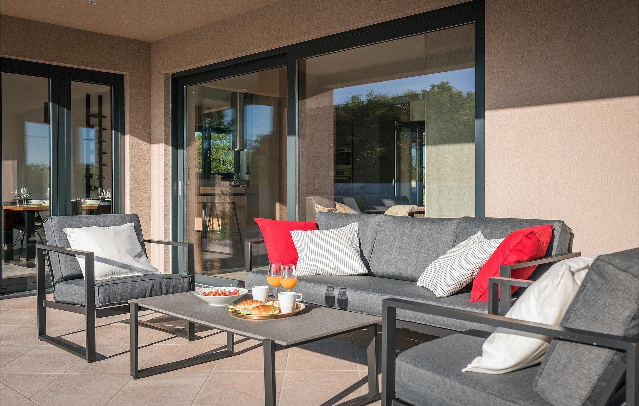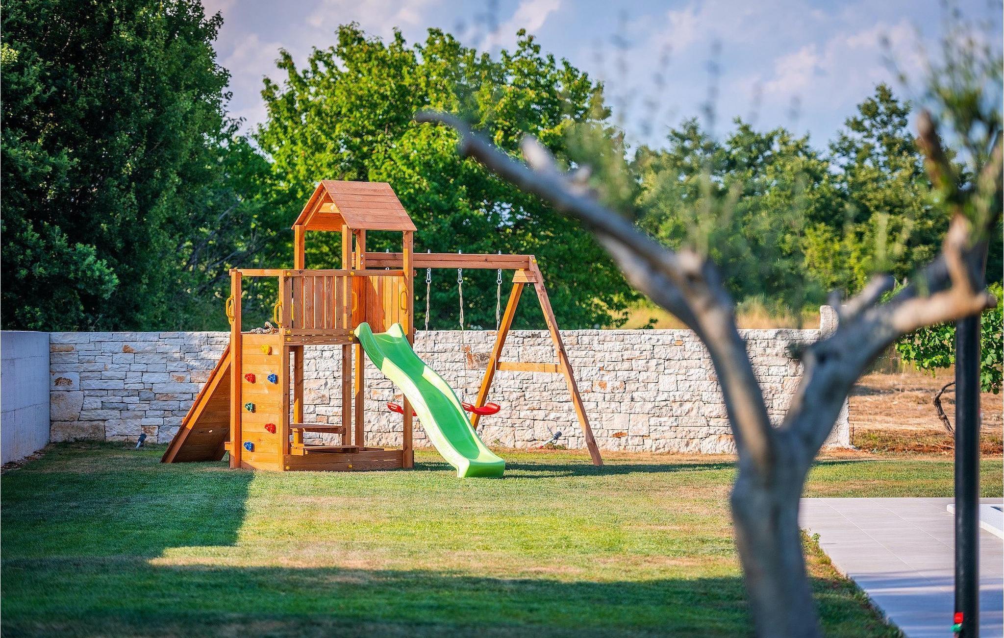 Fra stuen er der direkte adgang til villaens have og poolområde, helt lukket fra alle sider. Mens børnene nyder trampolinen og legepladsen, kan de voksne nyde en kold drink ved poolen eller grillen på terrassen på bagsiden af villaen. Undslippe solen og skjul dig på terrassen og slap af i loungeområdet. Hvis du beslutter dig for at forlade dit private stykke paradis, er placeringen af denne villa en fantastisk startposition for vandreture i naturen, gå til stranden, gastronomiske ture og dagsture til smukke istriske byer som Rovinj, Porec, Pula, Fazana, Vrsar, Rabac...I den syd-centrale del af halvøen Istrien ligger det middelalderlige bymonument St. Vincent. Den gamle arkitektur i byen og de omkringliggende landsbyer er velbevaret, mens vinmarker og oliven dominerer dette område med et varmt middelhavsklima. St. Vincent og det omkringliggende landskab er velkendt, ikke kun for deres historiske og kulturelle arv, men for fremragende vin og ægte istrisk køkken. Istrien er et unikt og fortryllet sted, der har taget imod besøgende og bosættere fra andre dele af verden, så længe vi har nedtegnet historie. Byen Pula med dets romerske amfiteater og Brijuni nationalpark med en 18-hullers golfbane ligger kun en kort køretur væk. Adriaterhavskysten med det krystalklare hav og alle former for vandaktiviteter nær den smukke by Rovinj med dens kunstsamfund er også meget tæt på.