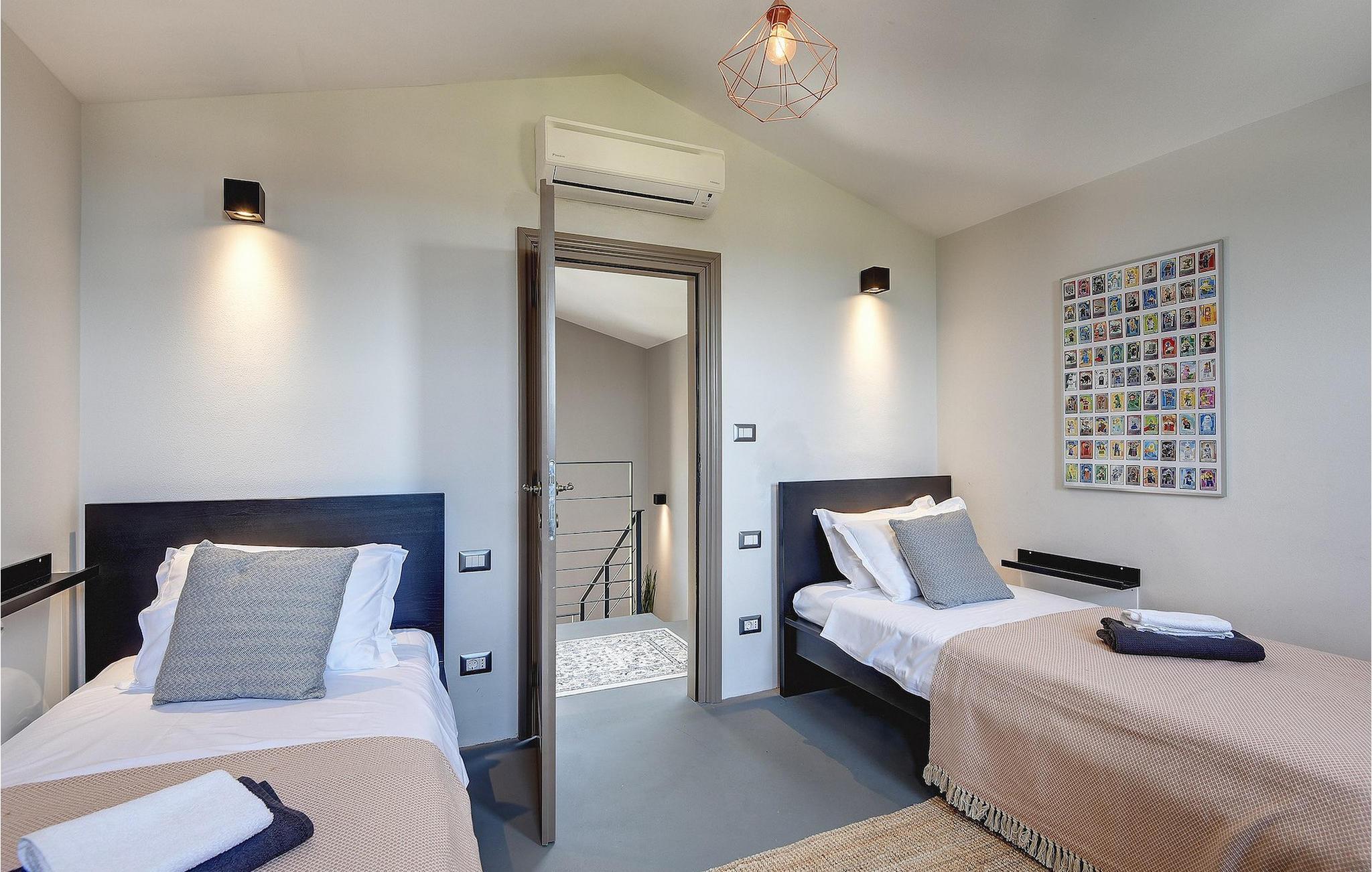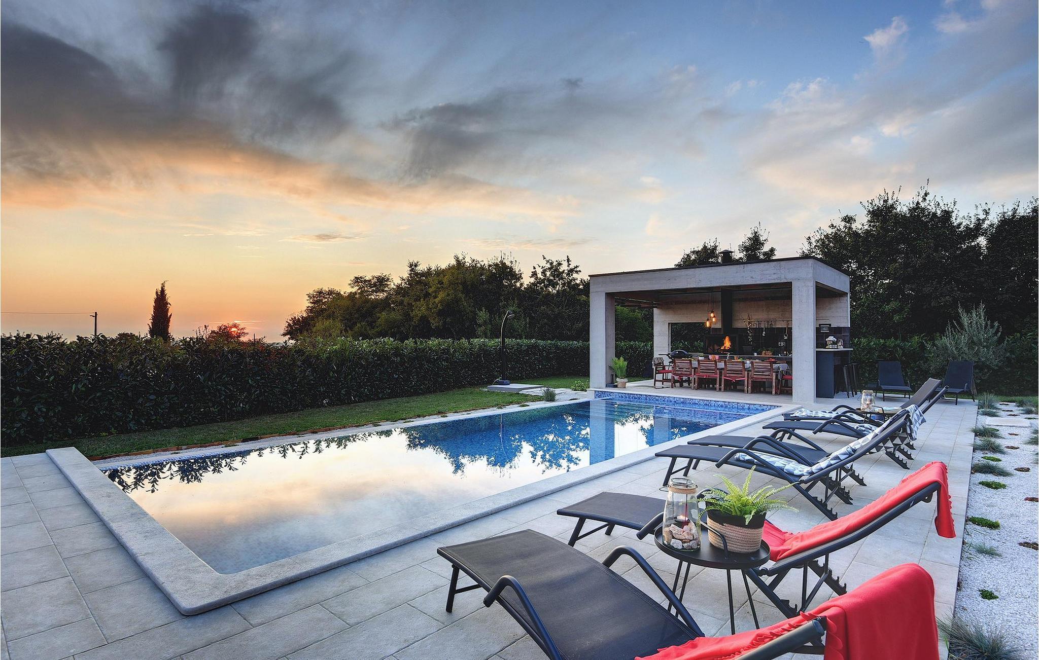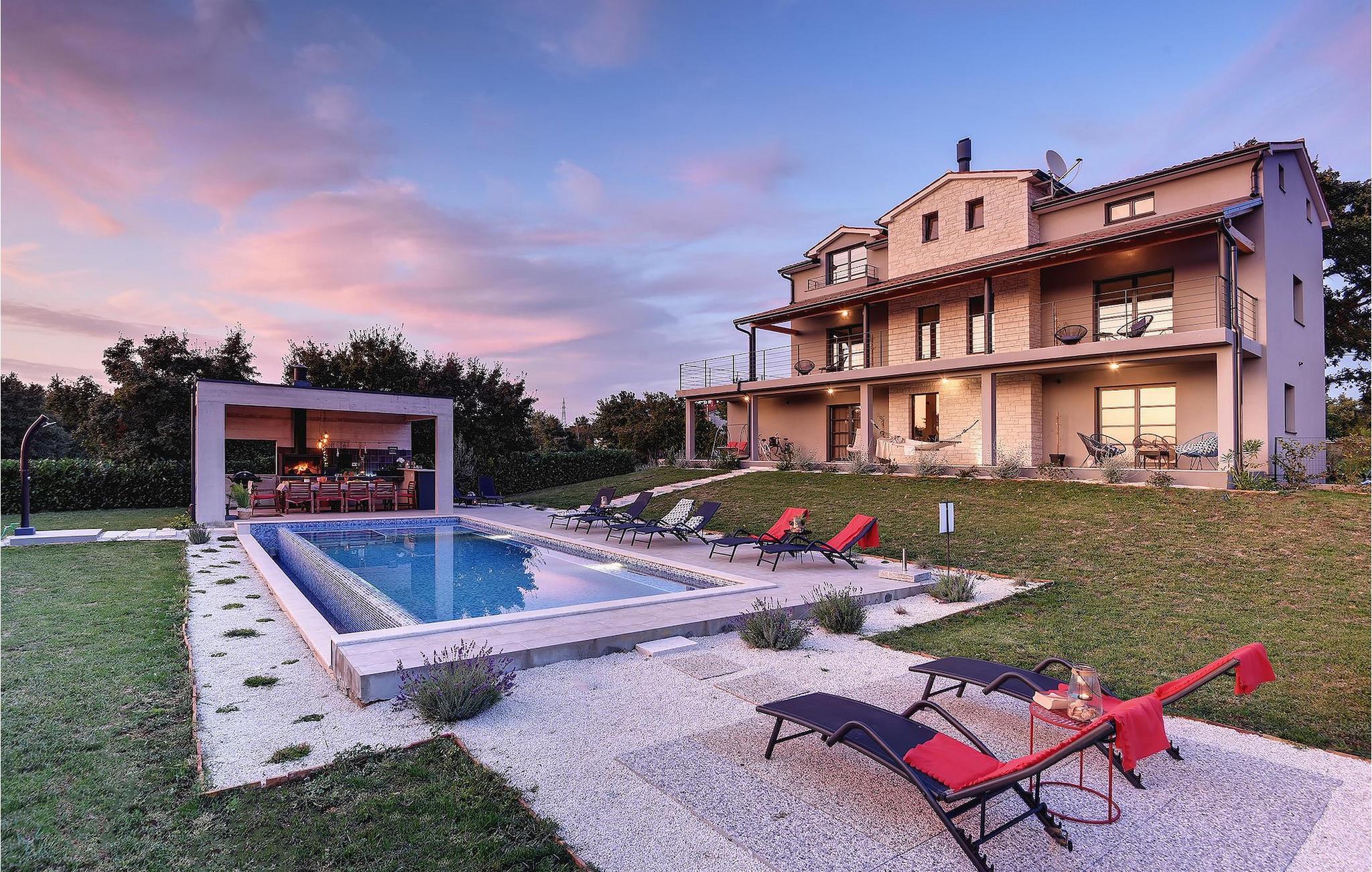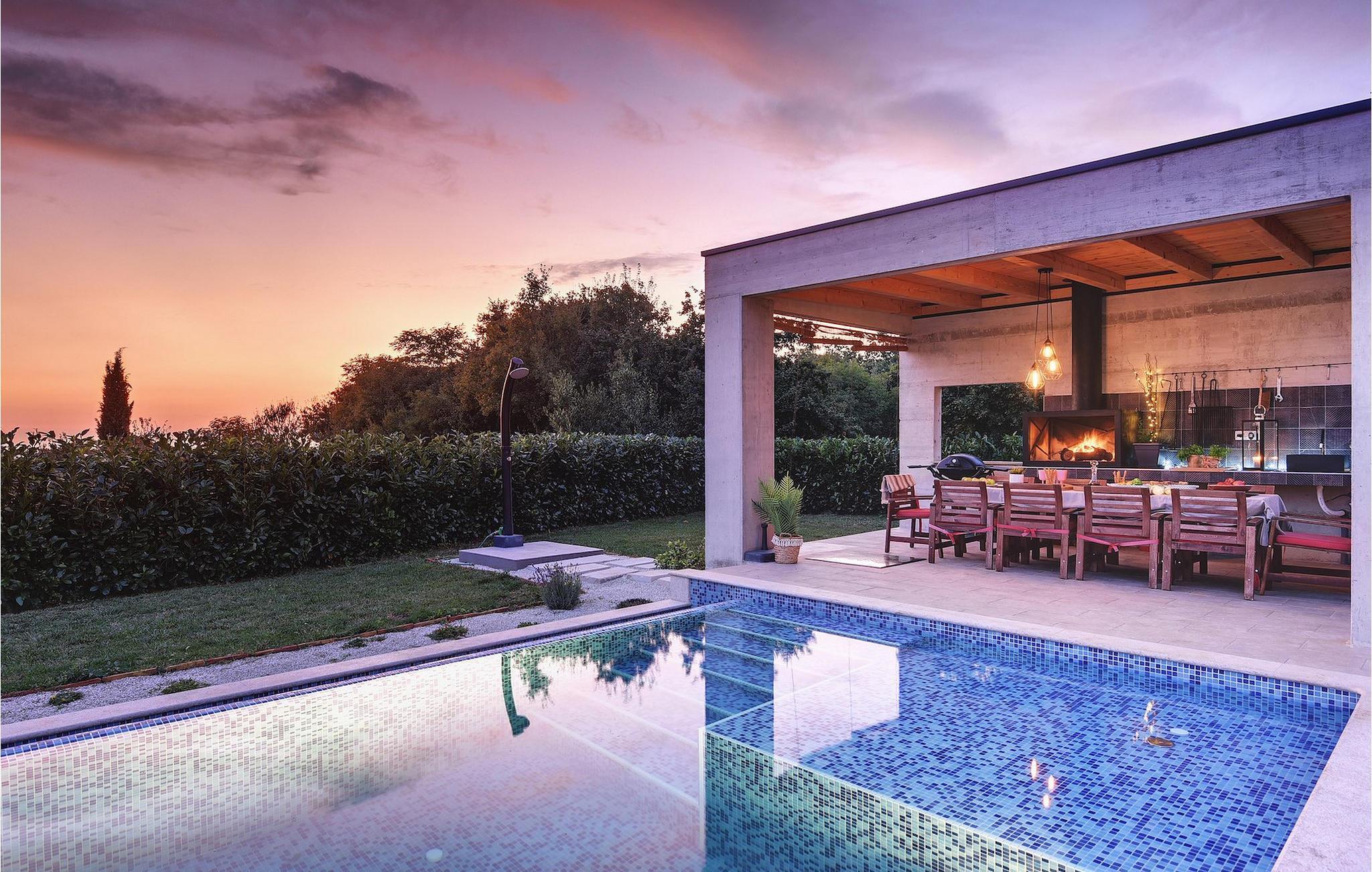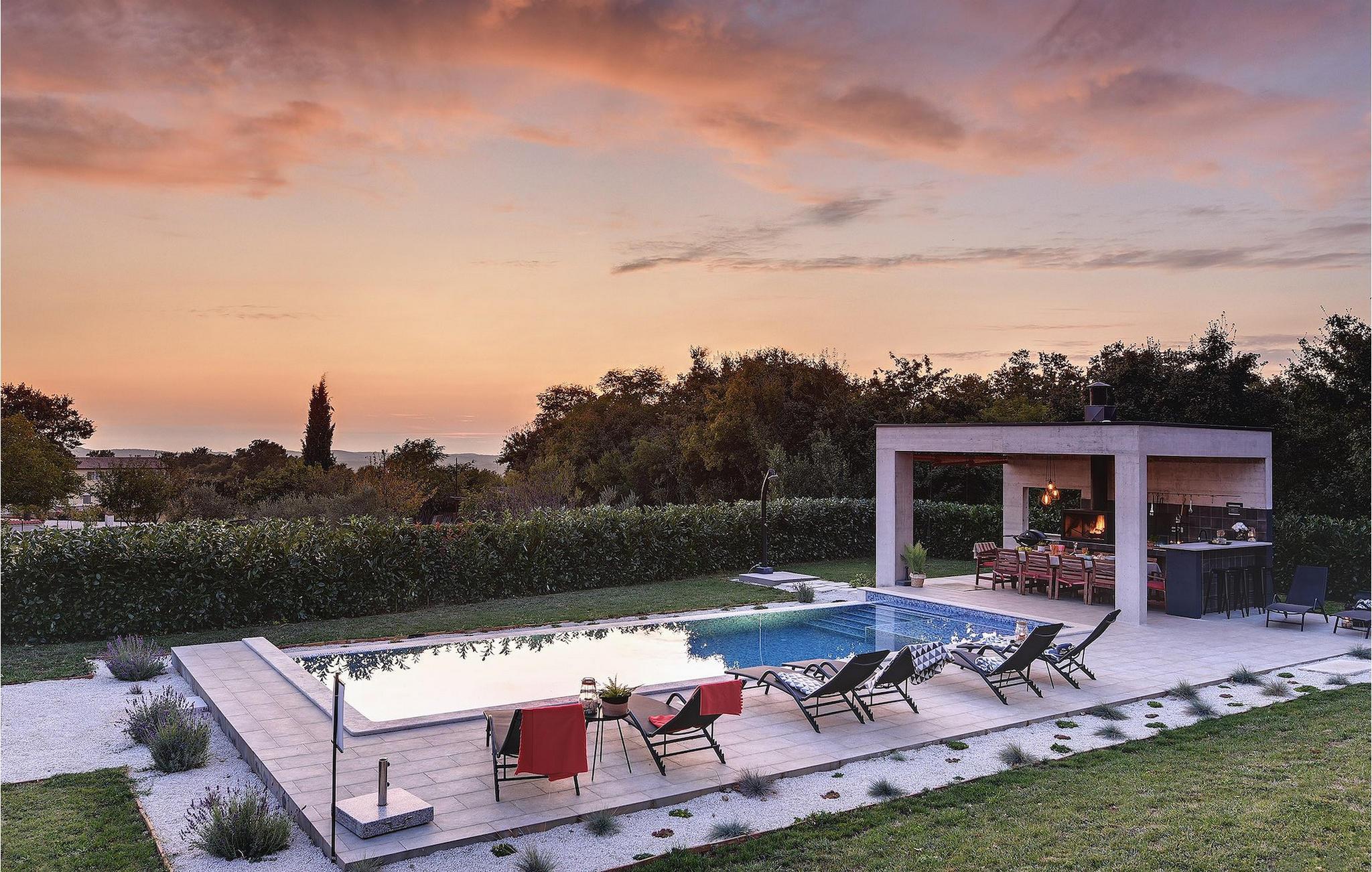 Vil du glemme din hverdag og bryde ud af din hverdag? Dyk ned i din private oase af luksus og fred, fordi villa Two M2 er det rigtige sted at være. Det er beliggende i det centrale Istrien, med alle retninger af denne smukke halvø i din hule hånd. Selve villaen kan ikke beskrives nøjsomt - kun med superlativer på grund af dens mange detaljer. Stueetagen har et åbent koncept med et moderne og fuldt udstyret køkken og et rummeligt spisebord. Den centrale del af stuen er bestemt pejsen, til uforglemmelige og romantiske aftener. Der er to soveværelser på første og tre på anden sal - hver med eget badeværelse. Det er svært at sige, hvilken del af villaen der er den mest charmerende, men du vil helt sikkert blive henrykt ved at gå ned i kælderen, hvor du har din egen private biograf, fitnesscenter, bar og legerum - alt sammen på 90m2.