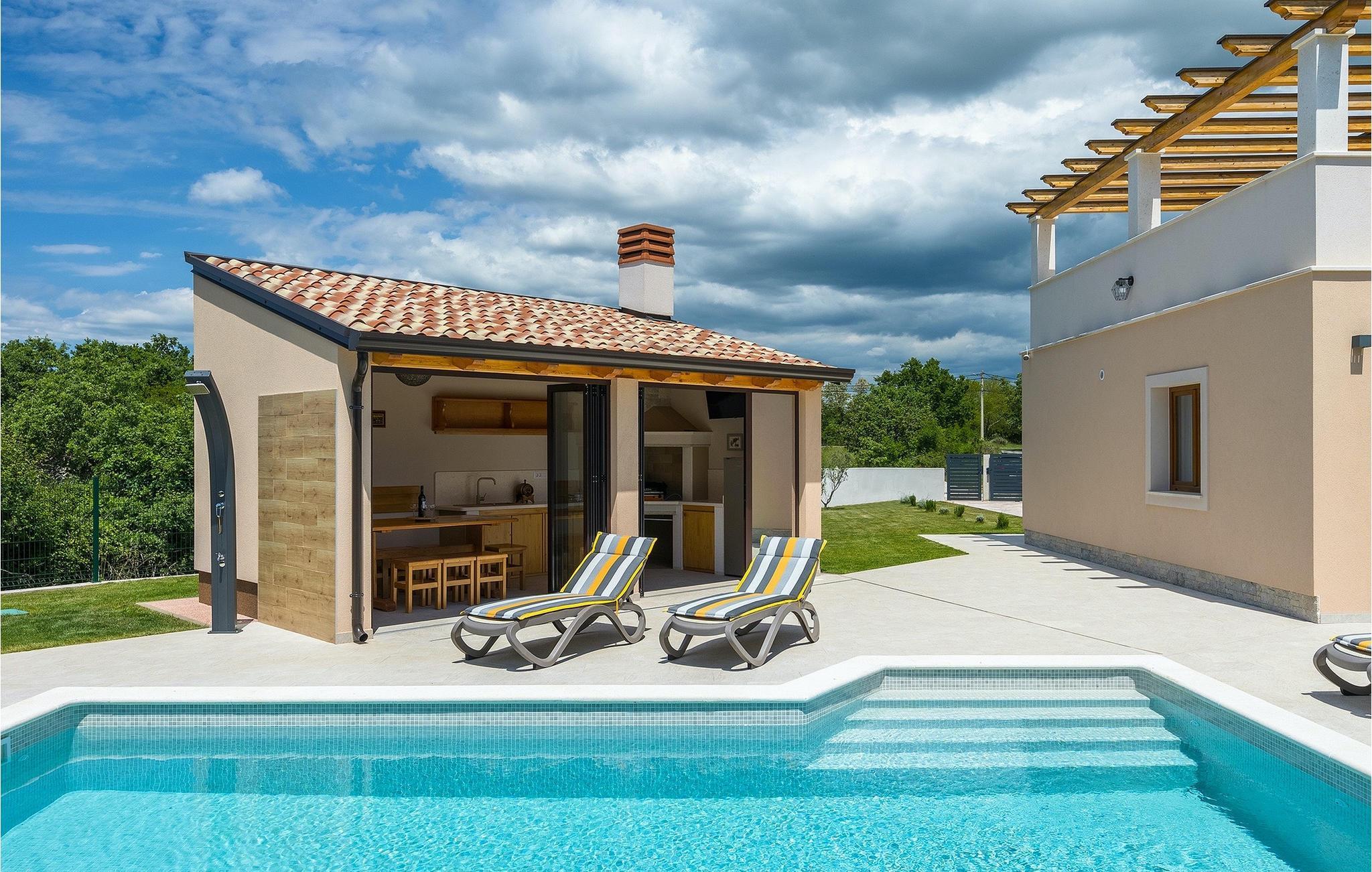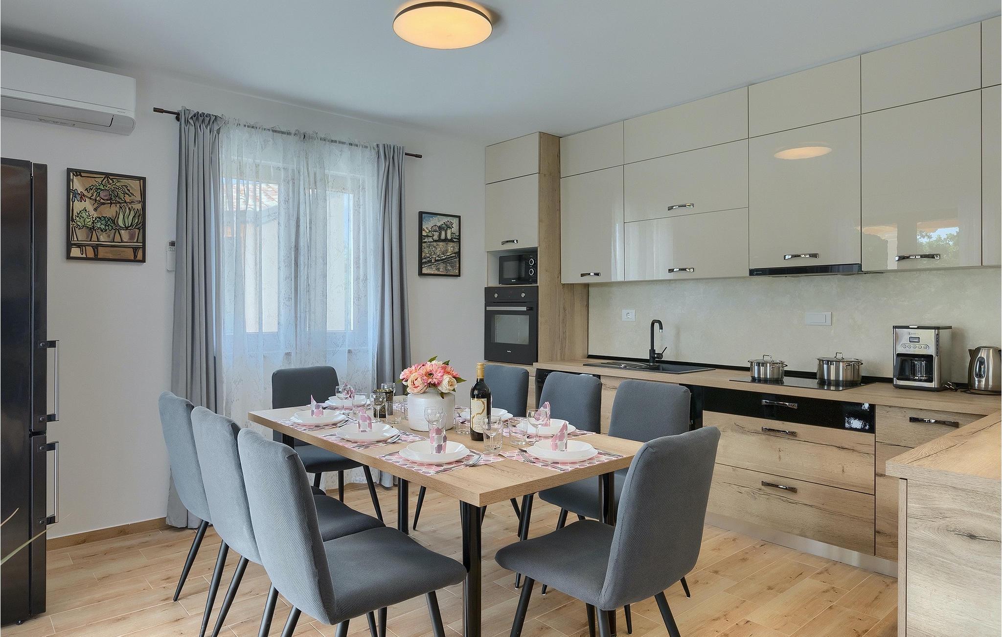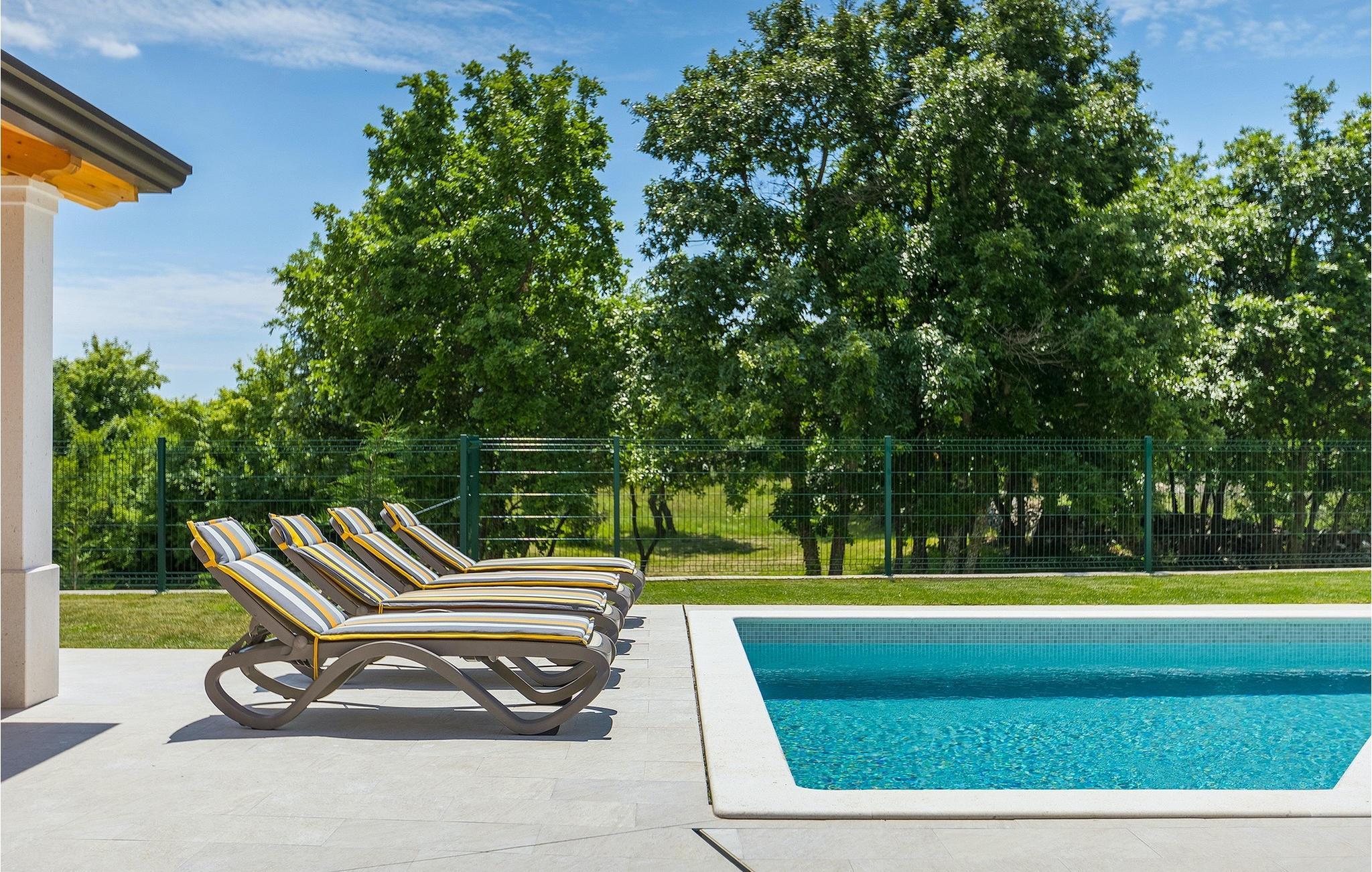 Villa Arlene Klarici ligger i Jursici, kun en kort køretur fra de berømte kystbyer Pula og Rovinj. Villaen kan rumme op til otte personer og byder på alt hvad du behøver til en afslappende ferie. I det velholdte udendørsområde ligger poolen med liggestole. Her kan du slappe af og nyde udsigten over naturen. Brug sommerkøkkenet med grill og spiseplads til at tilbringe uforglemmelige stunder med dine kære. Ejendommen er fuldt indhegnet og har parkering til fire biler. Stueetagen af villaen består af en åben planløsning, spisestue og køkken, et separat toilet, et soveværelse med eget badeværelse. På første sal er der to mere komfortable soveværelser med eget badeværelse og terrasse. Villaen er fuldt airconditioneret og har internetadgang. Flygt fra din hverdag og opdag Istriens skatte.Villa Arlene Klarici ligger i landsbyen Jursici nær den berømte by Pula. Det romerske amfiteater ligger i den historiske by. Også kaldet Arenaen er det det sjettestørste og et af de bedst bevarede amfiteatre i verden. Glem ikke at besøge den maleriske kystby Rovinj. Gå en tur gennem de romantiske gyder og smag typiske lokale specialiteter i restauranterne. For familier med børn anbefaler vi en tur til Porec til badelandet. Istrien byder på en række naturlige skønheder og kulturelle seværdigheder, som ikke bør gå glip af. Villa Arlene Klarici er det perfekte udgangspunkt for at udforske skønheden og seværdighederne i Istrien.