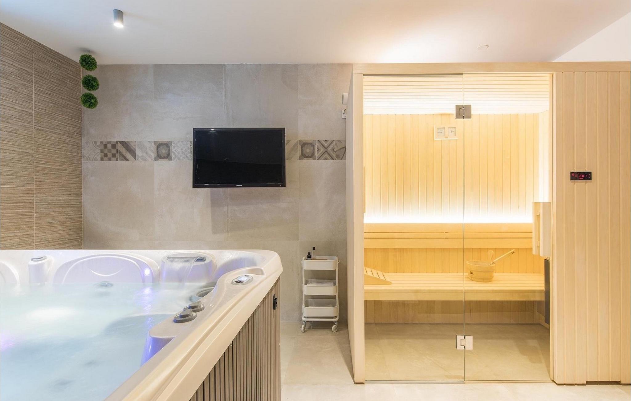 Denne vidunderlige villa med en smuk 72m2 privat pool er blevet indrettet med stor opmærksomhed og sans for detaljer for at tilbyde sine gæster en varm og indbydende atmosfære uden at ofre rummelighed og luksus. Villaen kan højst rumme 10 personer. Et soveværelse og den lyse, åbne opholdsstue med et elegant, fuldt udstyret køkken og spiseplads er placeret i stueetagen. Fra stuen har I direkte adgang til poolen og haven. 6-personers udendørs spabad ved poolen, stereoanlæg Bose Freespace udendørs lydsystem, udendørs ismaskine og professionelt bordfodboldbord i underholdningsområdet. De andre tre soveværelser med eget badeværelse er på første sal. Et af soveværelserne har en skøn altan med udsigt over poolområdet og området, hvor I kan nyde rolige sommeraftener. For yderligere afslapning er der indendørs jacuzzi, sauna og fitnessudstyr i kælderen, mens loftet tilbyder et fredeligt tilflugtssted med en sovesofa.