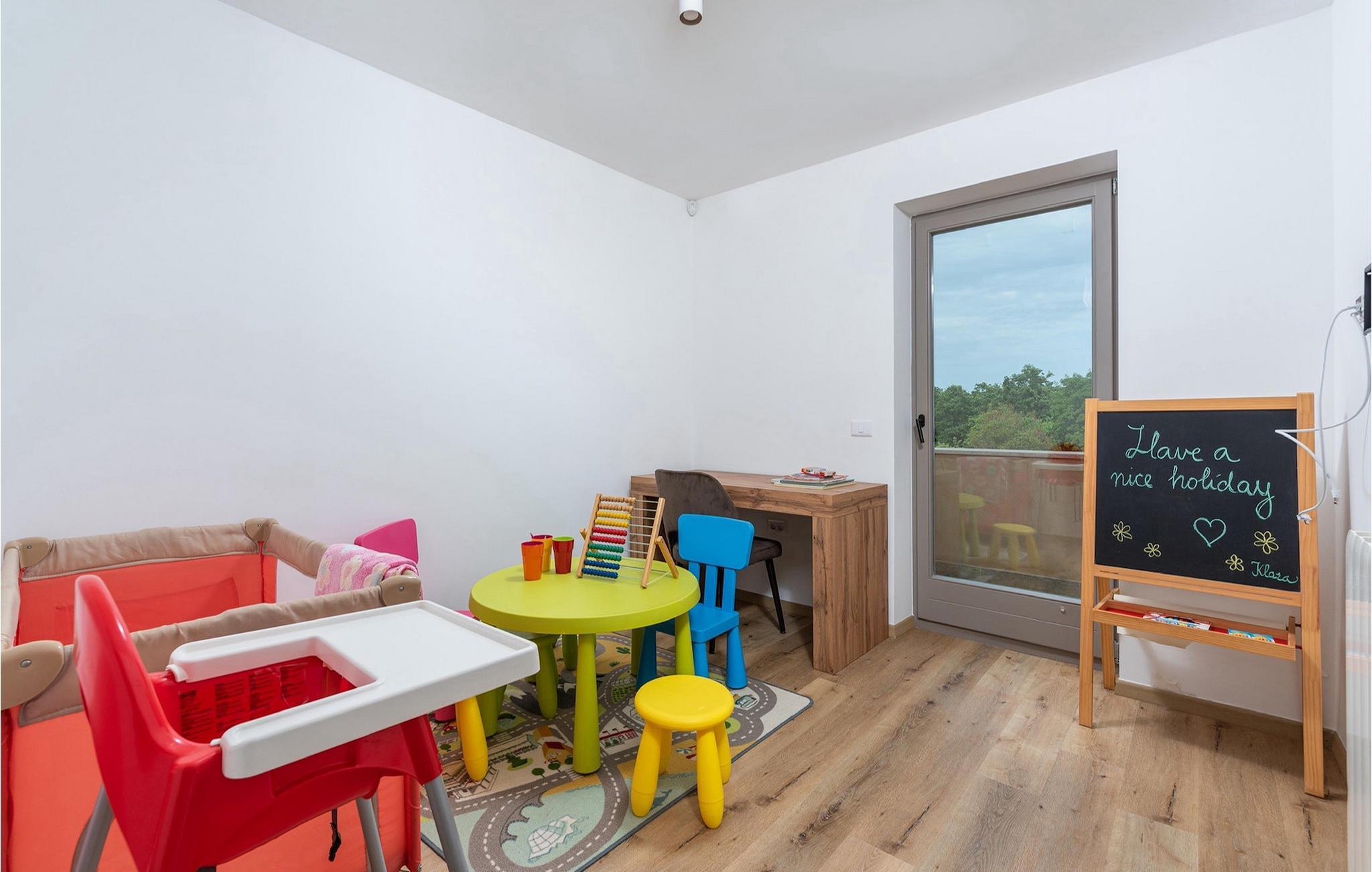 Das Erdgeschoss besteht aus einer voll ausgestatteten offenen Küche, einem Wohnzimmer, einem Arbeits-/Kinderzimmer, einem Schlafzimmer mit Doppelbett, einem Badezimmer und einer Toilette. Im ersten Stock gibt es ein Hauptschlafzimmer mit eigenem Bad und zwei komfortable Doppelzimmer und ein Badezimmer. Buchen Sie die Villa Branko Istrien und erleben Sie einen unvergesslichen Urlaub in Istrien! Villa Branko Istria ist keine Partyvilla und Jugendgruppen sind nicht erlaubt.Das kleine, malerische Dorf Pusti liegt nur einen Kilometer entfernt von dem alten mittelalterlichen Stadtdenkmal Svetvincenat, dem dominantesten Ort im südlichen Teil Zentralistriens. Svetvincenat wird Sie mit dem Schloss Morosini / Grimani, dem Renaissanceplatz, der Gastfreundschaft der Einheimischen, einer großen Auswahl an traditioneller istrischer Küche, Weinen und extra nativen Olivenölen beeindrucken.
