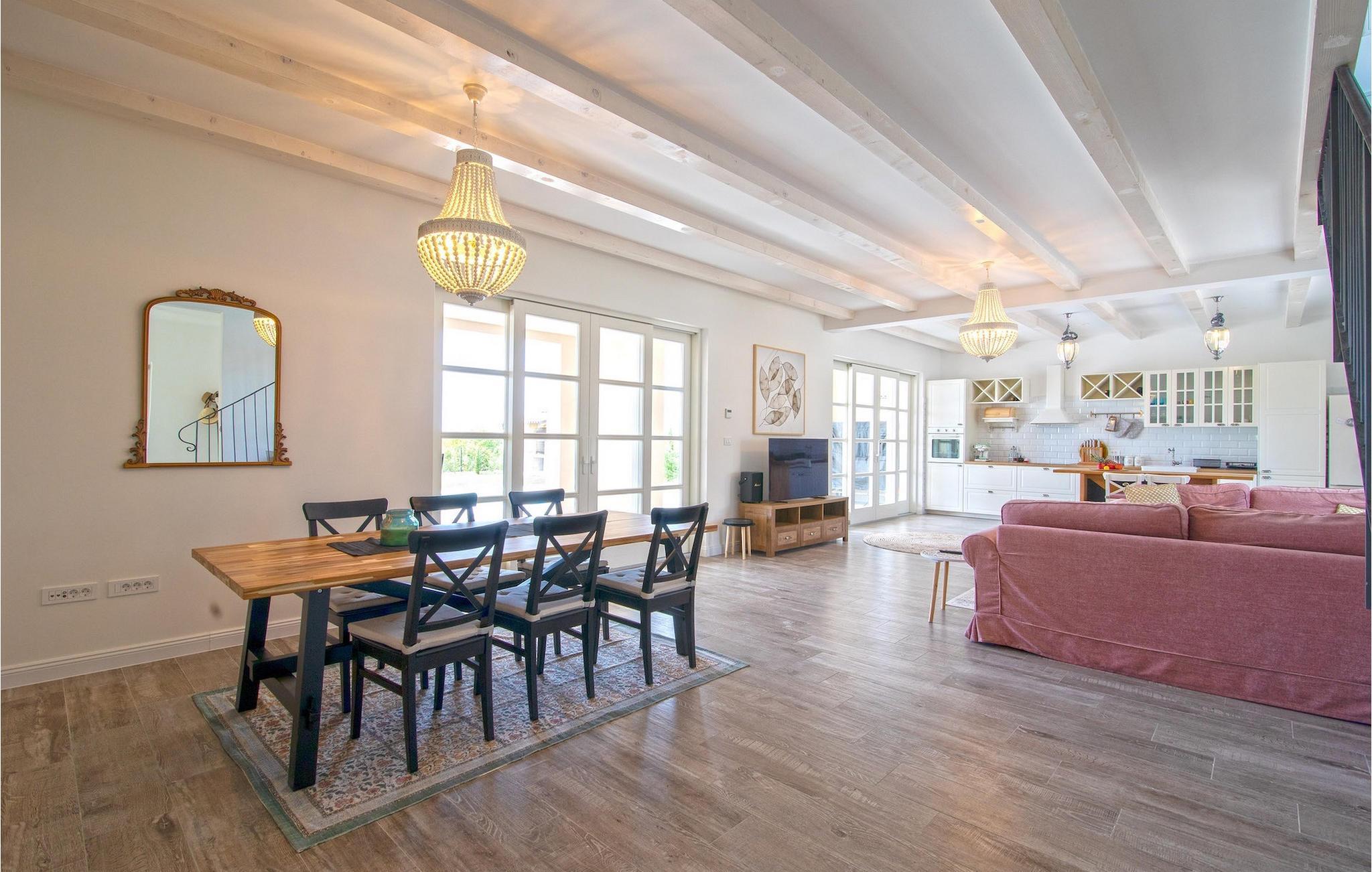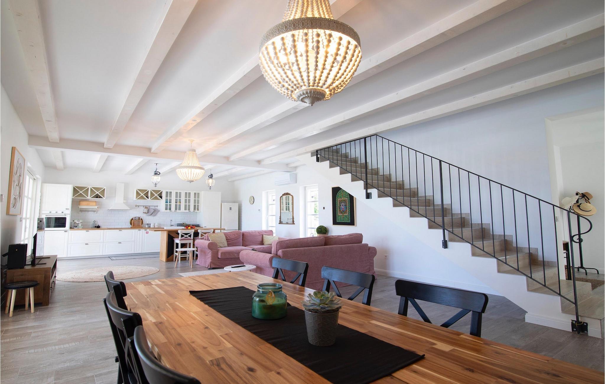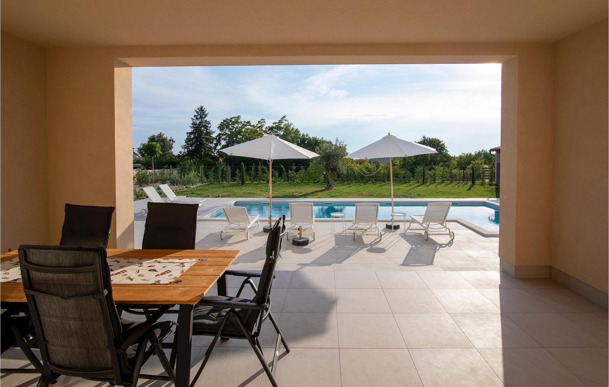 Hvis du leder efter en villa til en afslappende ferie, er villa Stella Smoljanci det ideelle valg for dig. Den charmerende villa byder på tre soveværelser for op til seks personer. Træbjælkerne, der strækker sig gennem lofterne i alle rum, giver denne villa en særlig charme. Alle tre soveværelser er placeret på første sal. De er rummelige og komfortable og har alle eget badeværelse og aircondition samt adgang til en fælles balkon. I to soveværelser finder du to enkeltsenge, der kan slås sammen til en dobbeltseng. I det tredje værelse er der en dobbeltseng. I villaens stueetage finder du en stue med sofa og tv, som er forbundet med spisestuen og et fuldt udstyret køkken. Hele rummet har aircondition. Ved siden af huset er der en overdækket terrasse med spisebord, hvor du kan nyde lækre måltider tilberedt på kulgrillen, som også står til din rådighed. I villaens have finder du en swimmingpool og liggestole, hvor du kan slappe af med en bog eller en forfriskende drink, samt et bordtennisbord til underholdning. Ejendommen er helt indhegnet og har privat parkering til 4 biler. Book din bolig i villa Stella Smoljanci og tilbring en uforglemmelig ferie med familie og venner.Villa Stella Smoljanci er beliggende i hjertet af det landlige Istrien, halvvejs mellem Pazin og Pula. Det centrale Istrien er kendt for sine olivenlunde og vinmarker samt små maleriske middelalderbyer. I den nærliggende by Svetvincenat er der restauranter, caféer, vingårde og butikker. Dette charmerende sted er ikke kun kendt for sine historiske og kulturelle seværdigheder, men også for dets fremragende og lækre istriske køkken. Vi anbefaler, at du prøver specialiteter såsom hjemmelavet istrisk prosciutto, istrisk pasta (fuži) og middelhavshjemmelavede specialiteter. Dette område er fyldt med cykel- og vandrestier, og kun en kort køretur gennem dette maleriske landskab adskiller dig fra berømte kystdestinationer og strande.
