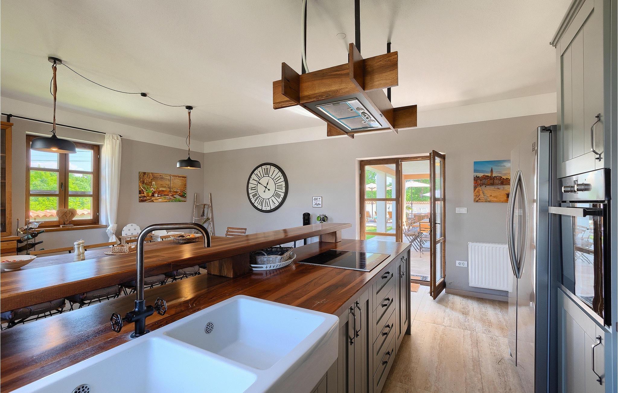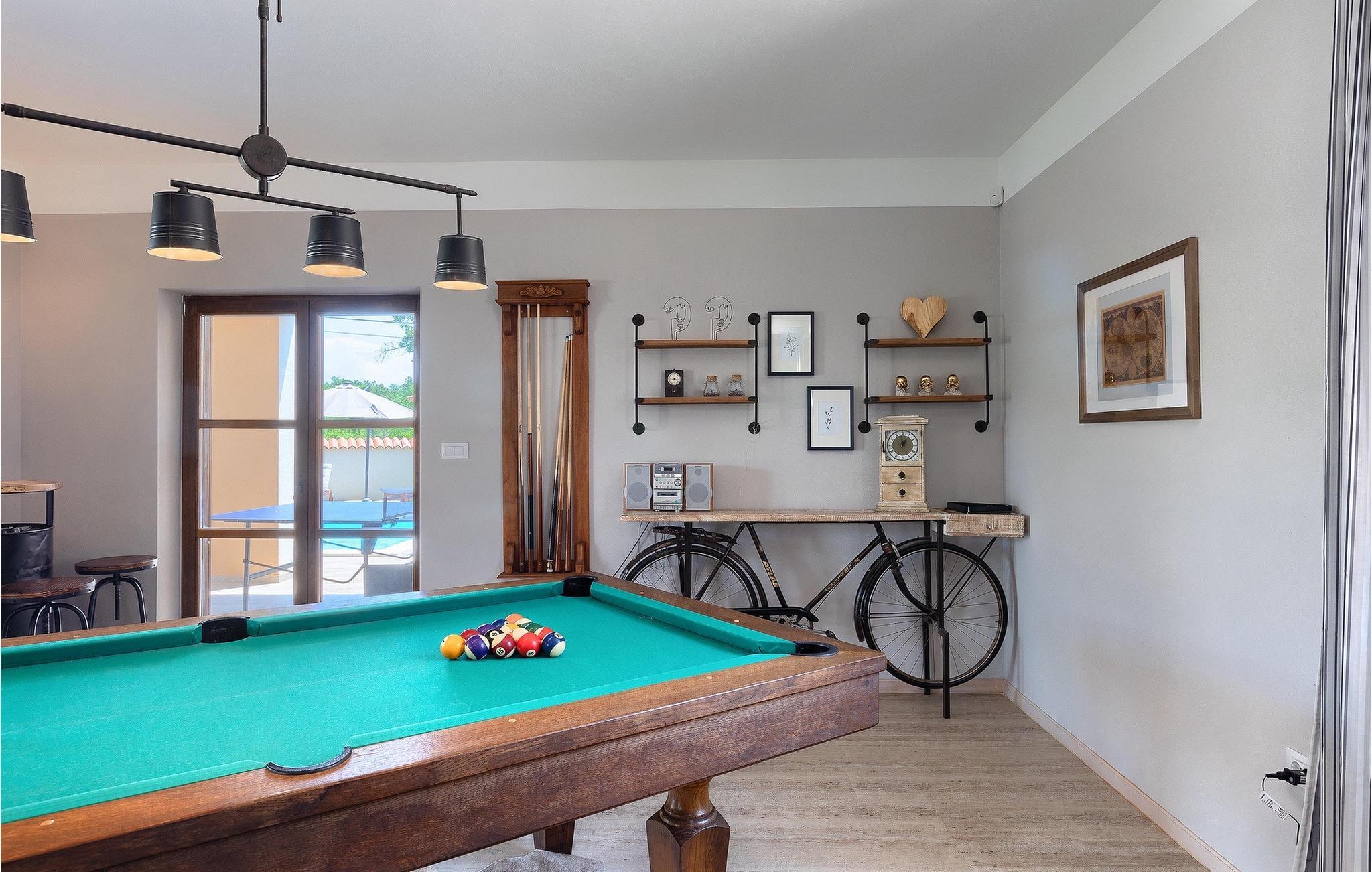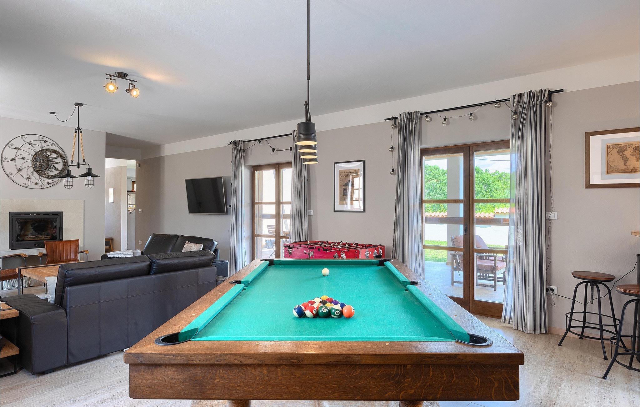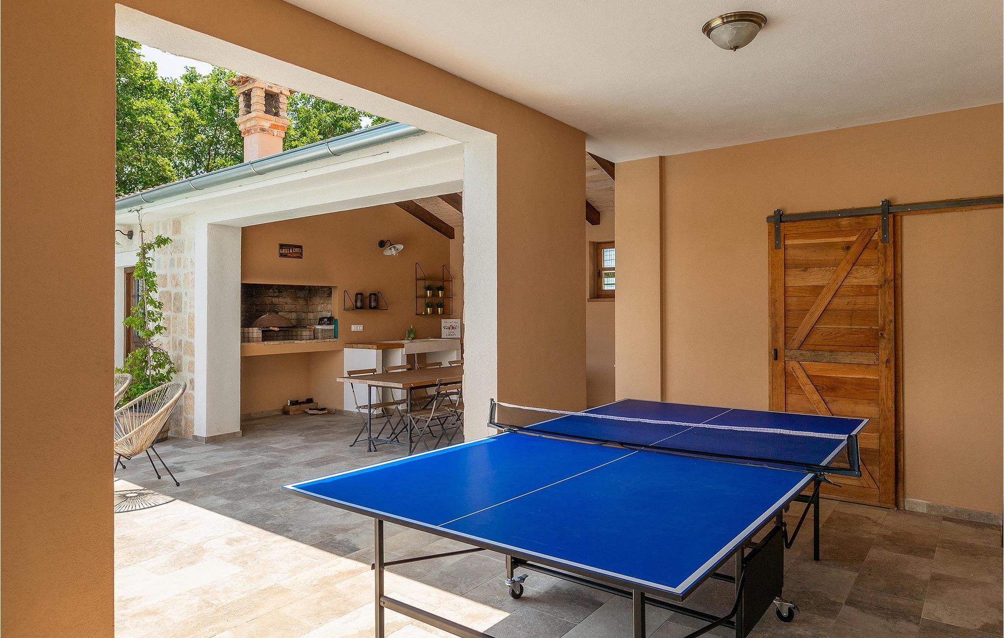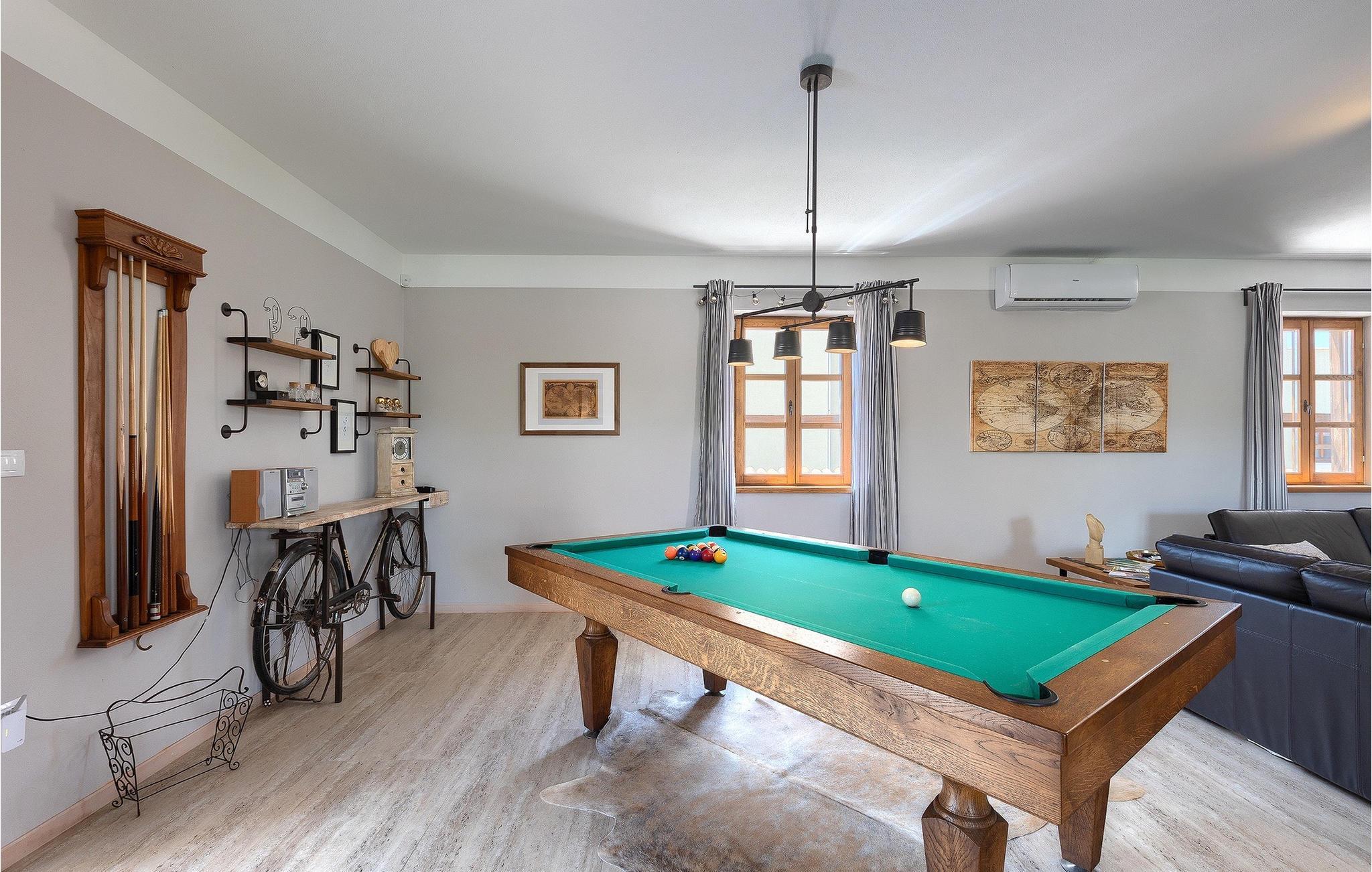 Du er kommet til det rette sted, hvis du leder efter en privat villa med pool til en afslappet ferie med dine kære, mens du søger et stilfuldt design og en hyggelig atmosfære. Villa Cirka er en vidunderlig ejendom med seks soveværelser i det centrale Istrien, der kan rumme 12 personer fra en familie eller gruppe af venner. Villaen byder på et smukt uderum og et lige så imponerende indvendigt rum. Udendørsområdet giver dig mulighed for at slappe af og køle ned i den 36 m2 opvarmede pool, slappe af på liggestolene med en forfriskende drink, og lade de unge spille bordtennis, mens de nyder deres ferie. En kulgrill, et overdækket udendørs spiseområde og hyggelige havemøbler er alle tilgængelige til gæsternes brug. De kan også lave skønne hjemmelavede måltider på kulgrillen udenfor. På tværs af villaens to plan er både interiør og eksteriør dekoreret med talrige trædetaljer og har en moderne, hjemlig stil. Hovedhuset har en stor, rummelig stue med et poolbord og et kickerbord, et moderne, fuldt udstyret køkken og en spisestue. Et soveværelse med en køjeseng og et en-suite badeværelse og et andet toilet er placeret i stueetagen af Villa Cirkas hovedbolig. Villaen er fuldt klimatiseret med Wi-Fi og også kæledyrsvenlig. Der er fire andre elegante soveværelser på første sal i Villa Cirka, som hver har tv, aircondition og tilhørende badeværelse med bruser. To af disse soveværelser har også udgange til altaner. Poolhuset er et ideelt sted at søge en ekstra knivspids af privatlivets fred, fordi det er adskilt fra hovedhuset og indeholder et soveværelse i dobbelt størrelse og et en-suite badeværelse med bruser. Villa Cirka er et fantastisk sted for særlige ferier med familie og venner, da det har masser af fornøjelige funktioner, et smukt design og en fantastisk beliggenhed. I den centrale Istriske landsby Svetvincenat kan du finde den dejlige Villa Cirka. Vodnjan, Motovun og Groznjan er nogle af de dejlige og romantiske byer, der er et besøg værd i dette område. Fremragende restauranter og taverner med et bredt udvalg af traditionelle retter ligesom hjemmelavet istrisk prosciutto (pršut), istrisk pasta (fuži) og hjemmelavede middelhavsspecialiteter kan findes tæt på villaen. Strandbyen Rovinj ligger ikke langt fra ejendommen, mens Pula, Istriens største perle, ligger i den sydlige del af regionen. Adskillige attraktioner i Pula er velkendte, ligesom det romerske amfiteater du helt sikkert bør besøge. Næste stop bør være The Brijuni National Park, hvis du vil udforske de maleriske omgivelser og nyde naturen og dyrenes verden. Temperaturen i den opvarmede swimmingpool er afhængig af eksterne faktorer, herunder vejrforhold, og som sådan kan temperaturen på vandet ikke garanteres.