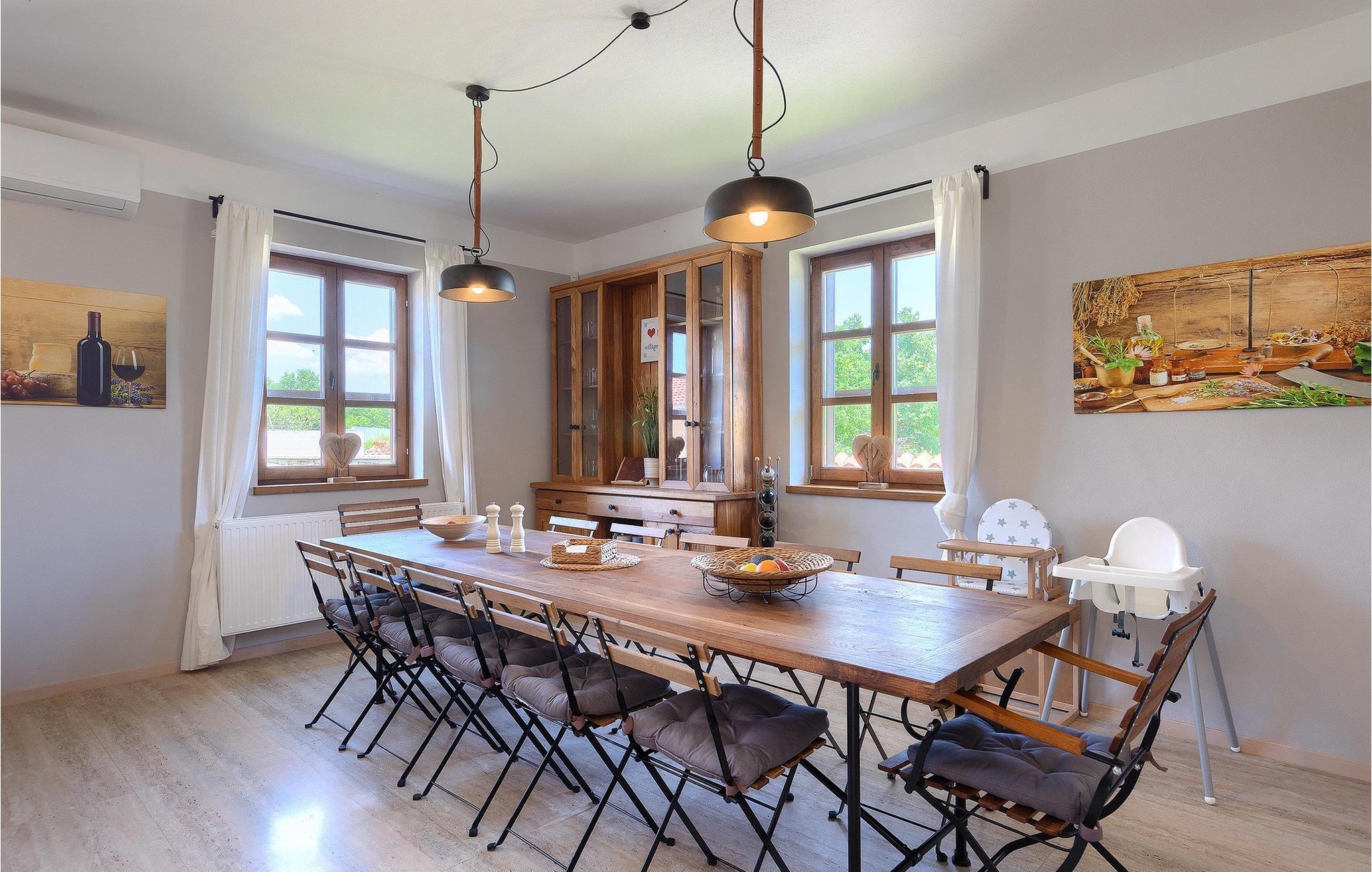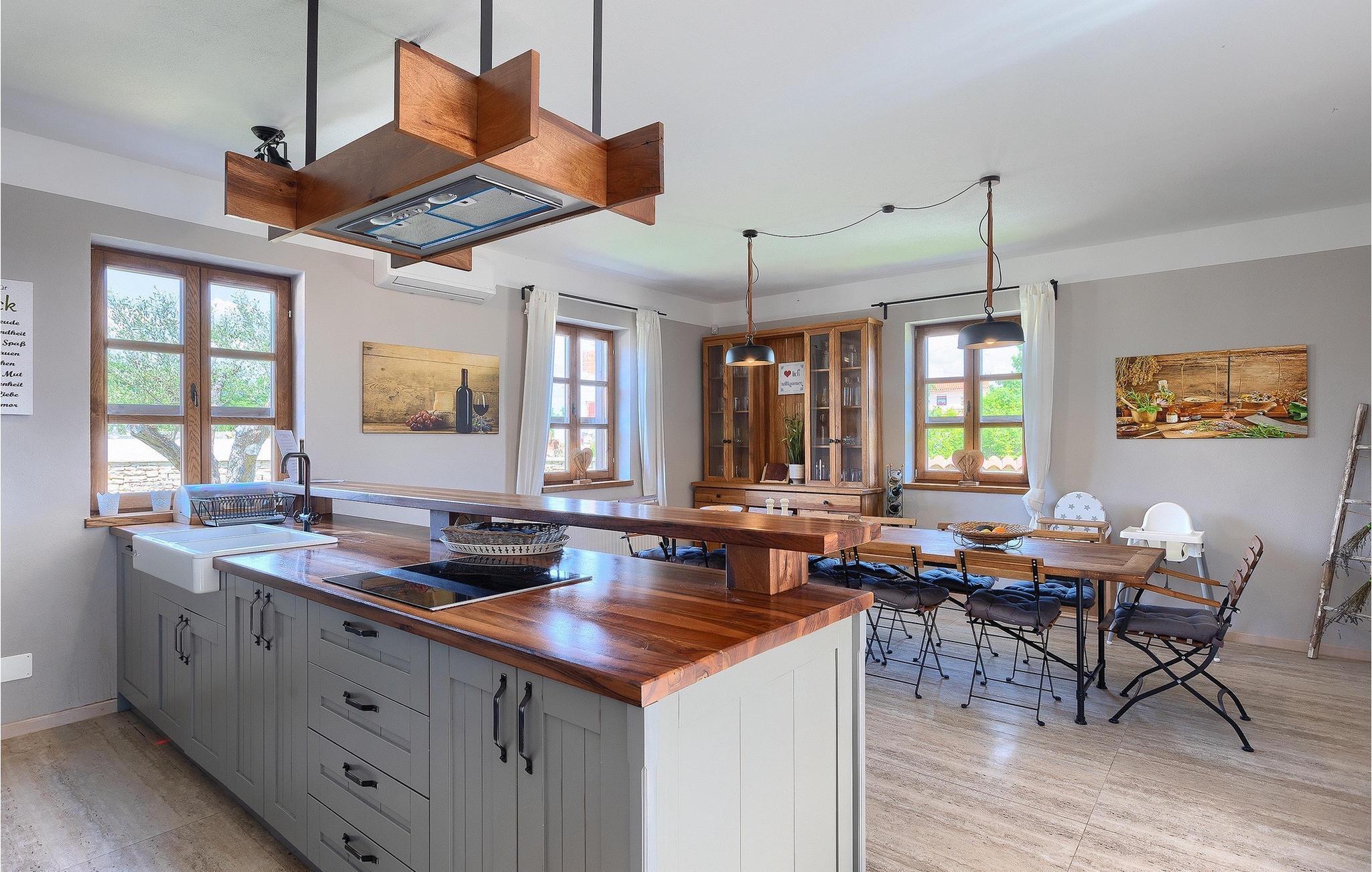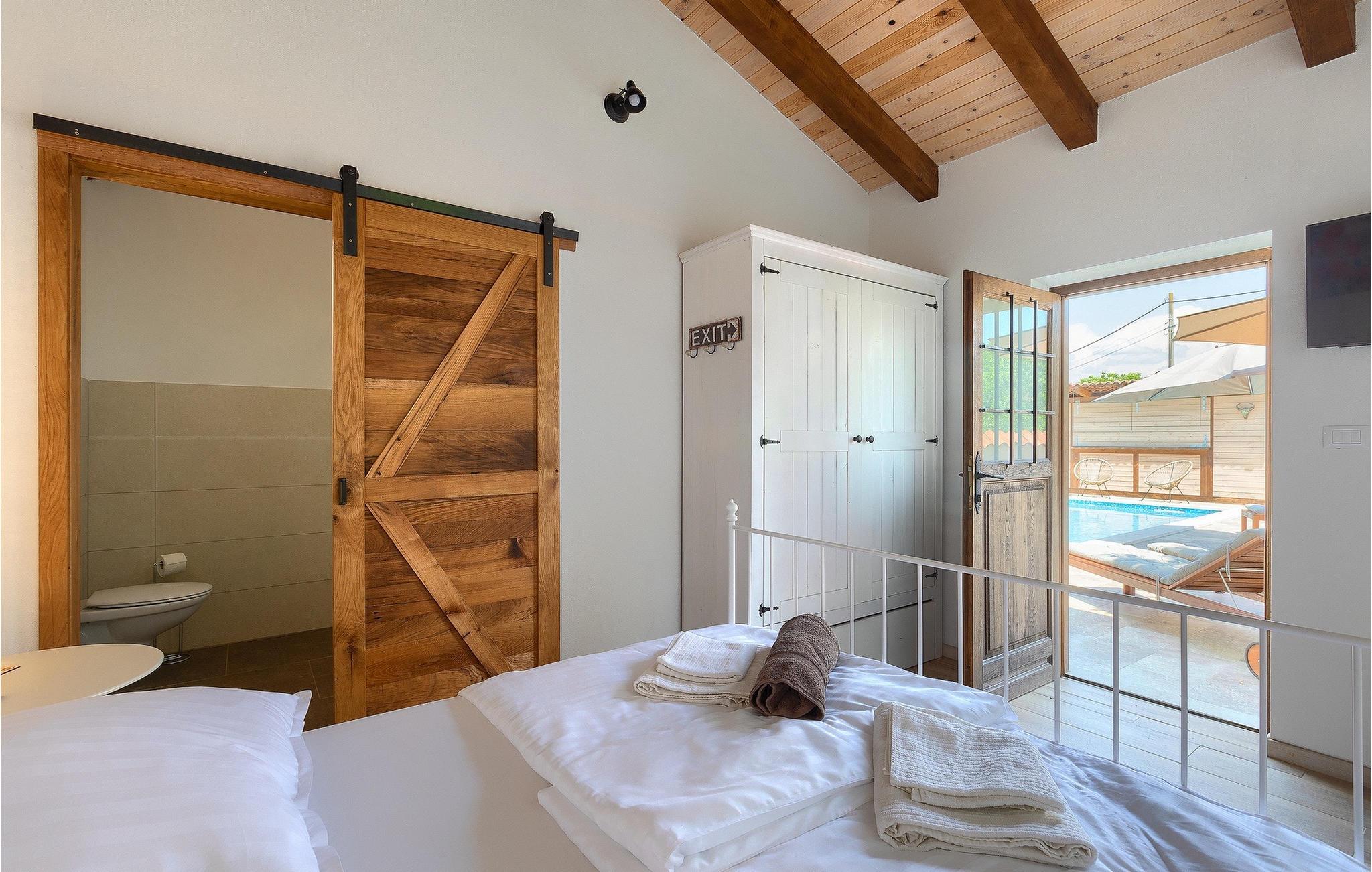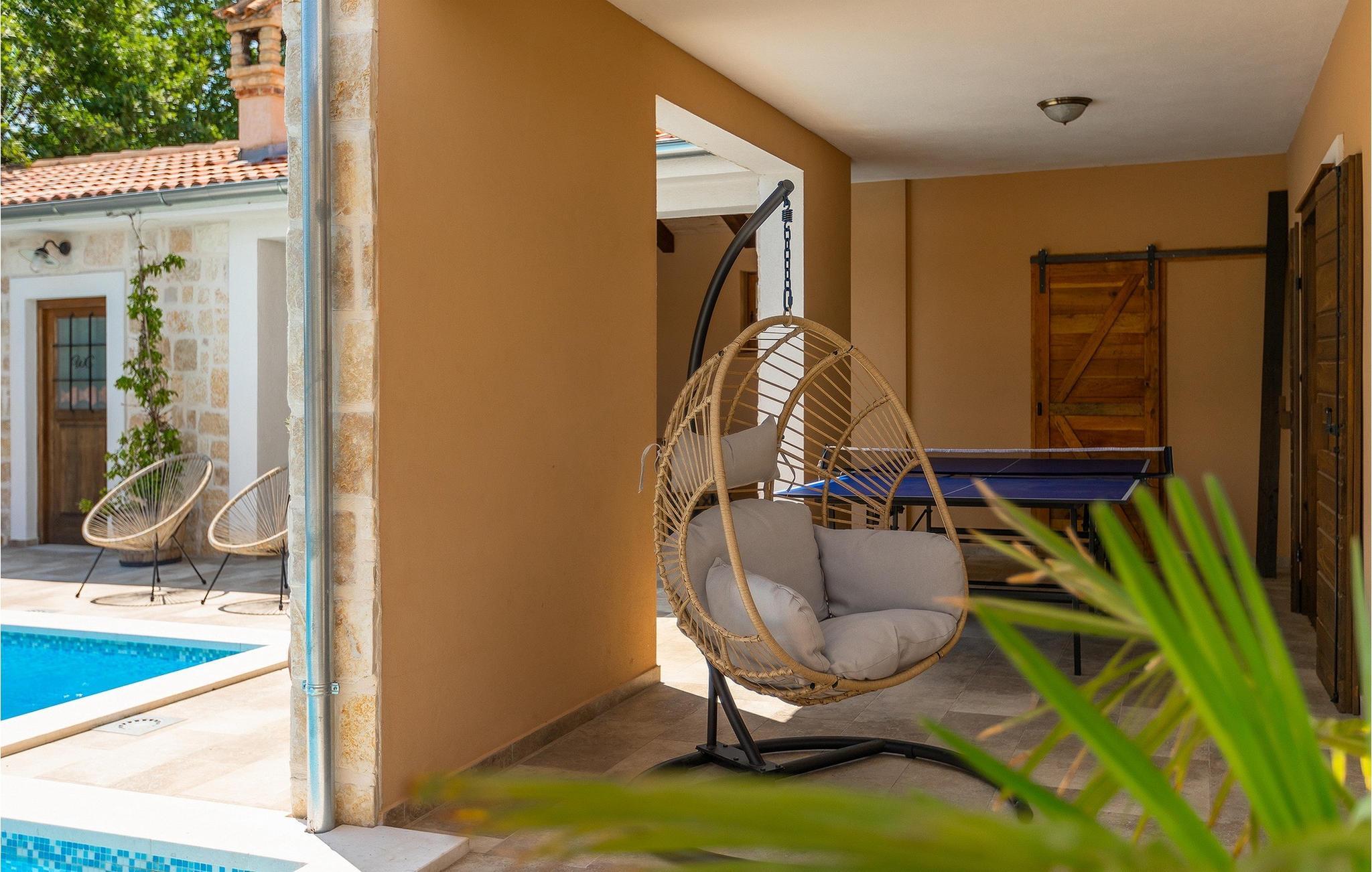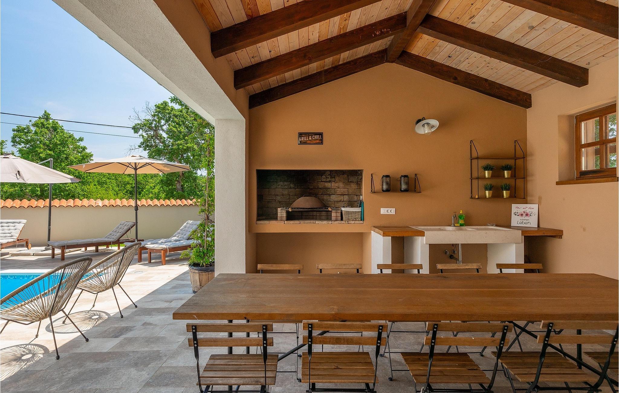 Du er kommet til det rette sted, hvis du leder efter en privat villa med pool til en afslappet ferie med dine kære, mens du søger et stilfuldt design og en hyggelig atmosfære. Villa Cirka er en vidunderlig ejendom med seks soveværelser i det centrale Istrien, der kan rumme 12 personer fra en familie eller gruppe af venner. Villaen byder på et smukt uderum og et lige så imponerende indvendigt rum. Udendørsområdet giver dig mulighed for at slappe af og køle ned i den 36 m2 opvarmede pool, slappe af på liggestolene med en forfriskende drink, og lade de unge spille bordtennis, mens de nyder deres ferie. En kulgrill, et overdækket udendørs spiseområde og hyggelige havemøbler er alle tilgængelige til gæsternes brug. De kan også lave skønne hjemmelavede måltider på kulgrillen udenfor. På tværs af villaens to plan er både interiør og eksteriør dekoreret med talrige trædetaljer og har en moderne, hjemlig stil. Hovedhuset har en stor, rummelig stue med et poolbord og et kickerbord, et moderne, fuldt udstyret køkken og en spisestue. Et soveværelse med en køjeseng og et en-suite badeværelse og et andet toilet er placeret i stueetagen af Villa Cirkas hovedbolig. Villaen er fuldt klimatiseret med Wi-Fi og også kæledyrsvenlig. Der er fire andre elegante soveværelser på første sal i Villa Cirka, som hver har tv, aircondition og tilhørende badeværelse med bruser. To af disse soveværelser har også udgange til altaner. Poolhuset er et ideelt sted at søge en ekstra knivspids af privatlivets fred, fordi det er adskilt fra hovedhuset og indeholder et soveværelse i dobbelt størrelse og et en-suite badeværelse med bruser. Villa Cirka er et fantastisk sted for særlige ferier med familie og venner, da det har masser af fornøjelige funktioner, et smukt design og en fantastisk beliggenhed. I den centrale Istriske landsby Svetvincenat kan du finde den dejlige Villa Cirka. Vodnjan, Motovun og Groznjan er nogle af de dejlige og romantiske byer, der er et besøg værd i dette område. Fremragende restauranter og taverner med et bredt udvalg af traditionelle retter ligesom hjemmelavet istrisk prosciutto (pršut), istrisk pasta (fuži) og hjemmelavede middelhavsspecialiteter kan findes tæt på villaen. Strandbyen Rovinj ligger ikke langt fra ejendommen, mens Pula, Istriens største perle, ligger i den sydlige del af regionen. Adskillige attraktioner i Pula er velkendte, ligesom det romerske amfiteater du helt sikkert bør besøge. Næste stop bør være The Brijuni National Park, hvis du vil udforske de maleriske omgivelser og nyde naturen og dyrenes verden. Temperaturen i den opvarmede swimmingpool er afhængig af eksterne faktorer, herunder vejrforhold, og som sådan kan temperaturen på vandet ikke garanteres.
