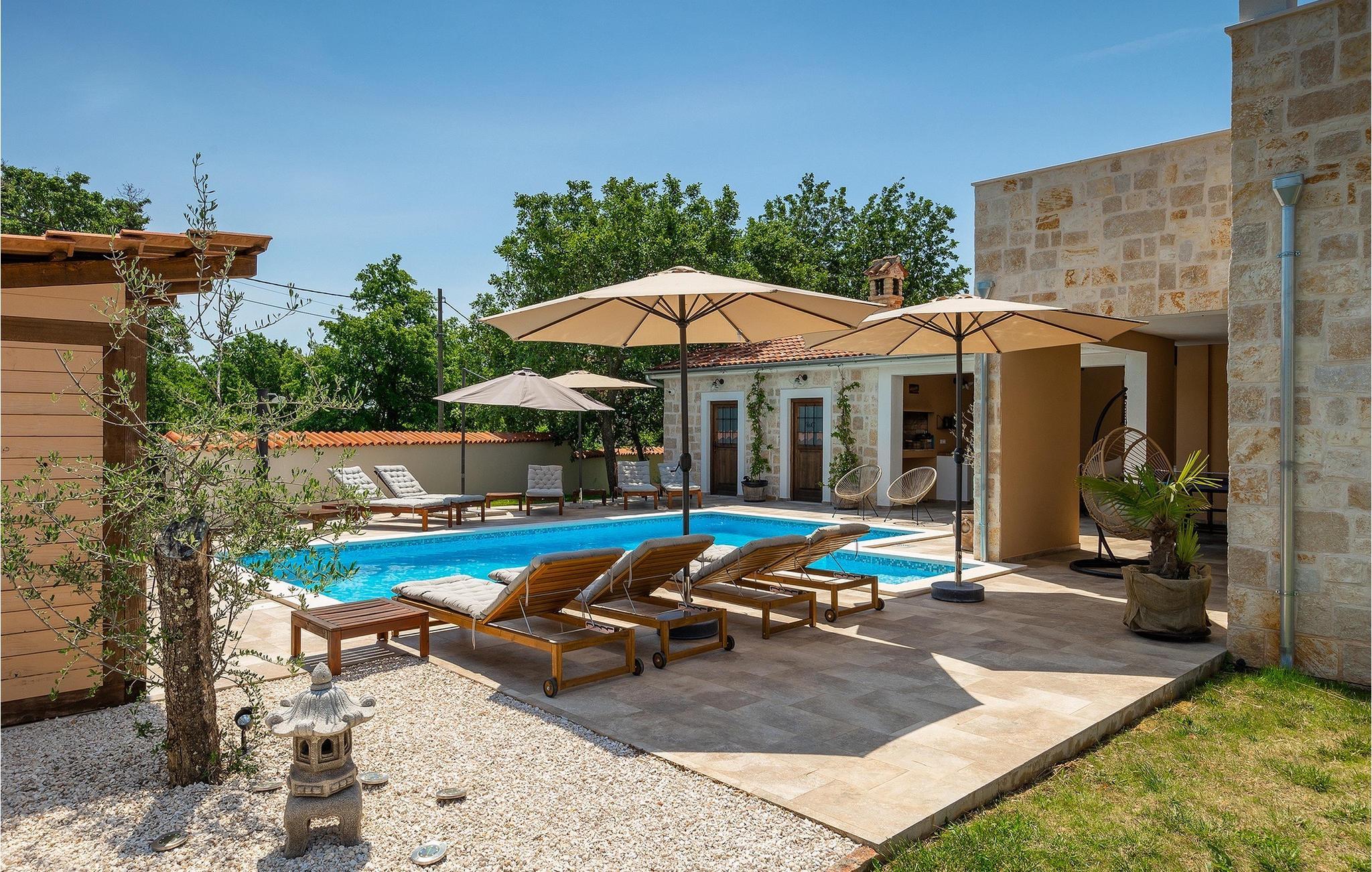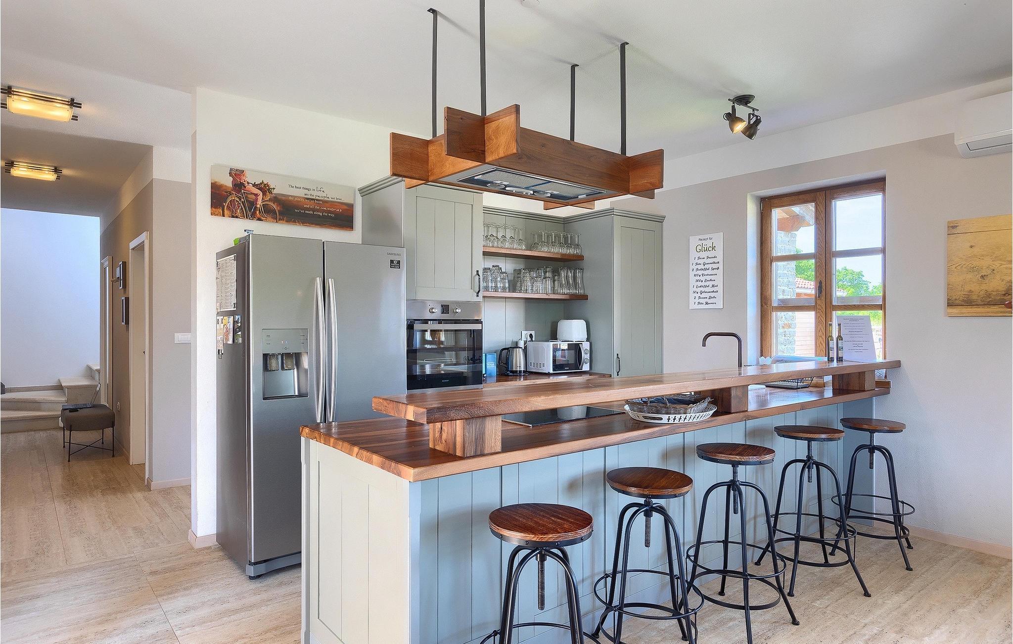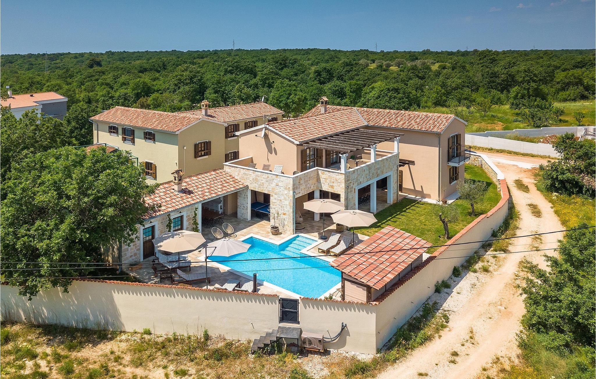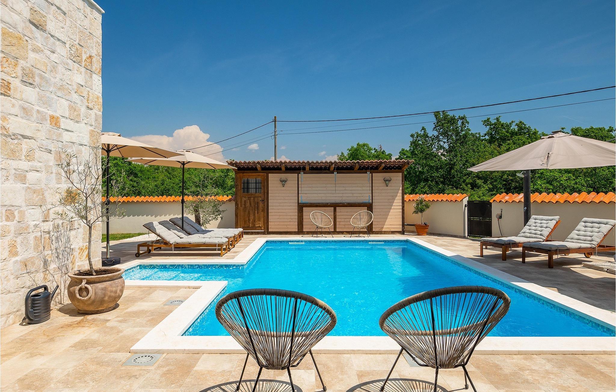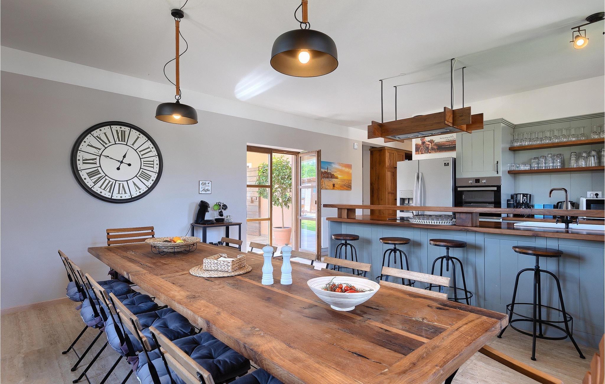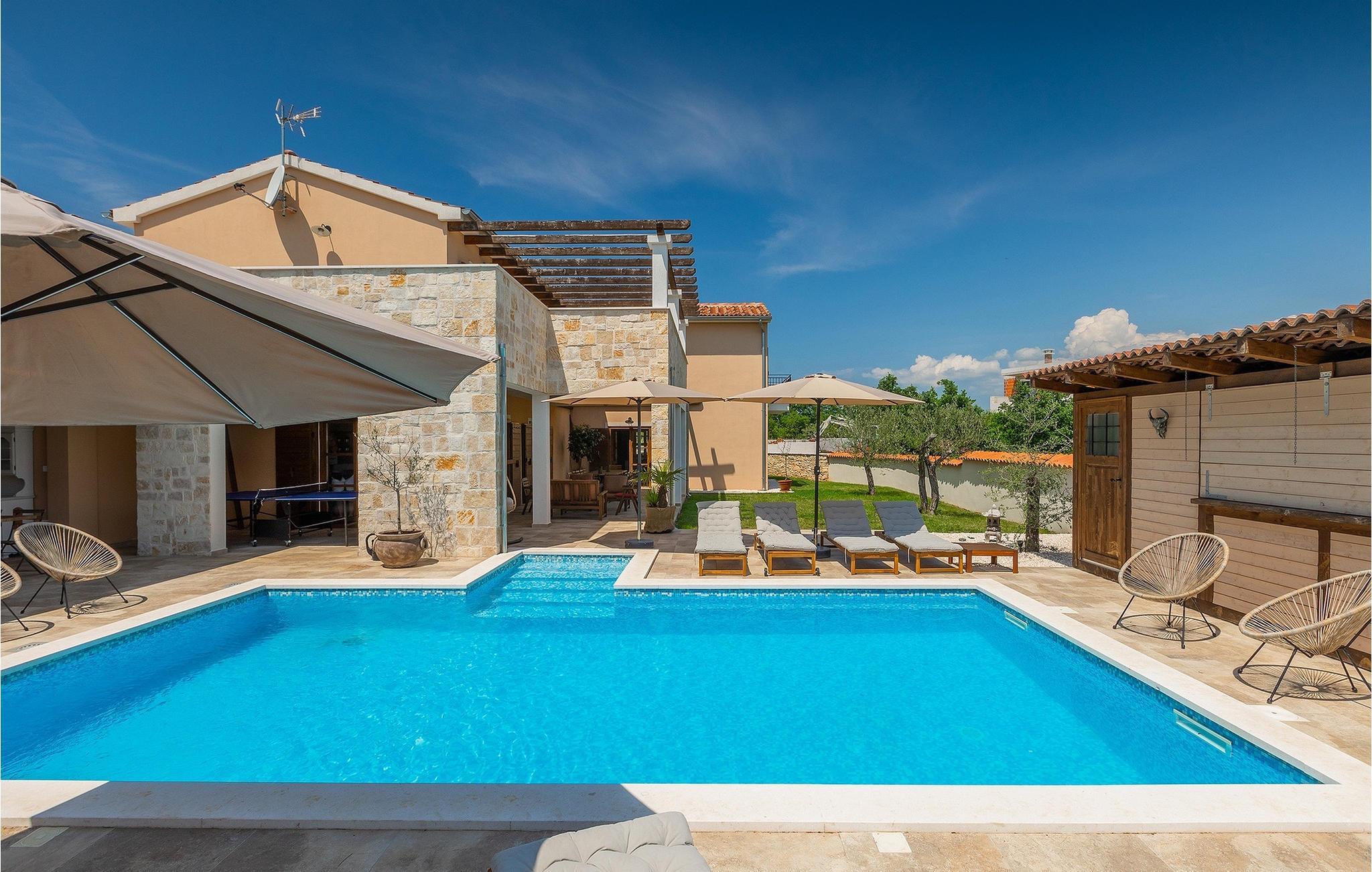 Du er kommet til det rette sted, hvis du leder efter en privat villa med pool til en afslappet ferie med dine kære, mens du søger et stilfuldt design og en hyggelig atmosfære. Villa Cirka er en vidunderlig ejendom med seks soveværelser i det centrale Istrien, der kan rumme 12 personer fra en familie eller gruppe af venner. Villaen byder på et smukt uderum og et lige så imponerende indvendigt rum. Udendørsområdet giver dig mulighed for at slappe af og køle ned i den 36 m2 opvarmede pool, slappe af på liggestolene med en forfriskende drink, og lade de unge spille bordtennis, mens de nyder deres ferie. En kulgrill, et overdækket udendørs spiseområde og hyggelige havemøbler er alle tilgængelige til gæsternes brug. De kan også lave skønne hjemmelavede måltider på kulgrillen udenfor. På tværs af villaens to plan er både interiør og eksteriør dekoreret med talrige trædetaljer og har en moderne, hjemlig stil. Hovedhuset har en stor, rummelig stue med et poolbord og et kickerbord, et moderne, fuldt udstyret køkken og en spisestue. Et soveværelse med en køjeseng og et en-suite badeværelse og et andet toilet er placeret i stueetagen af Villa Cirkas hovedbolig. Villaen er fuldt klimatiseret med Wi-Fi og også kæledyrsvenlig. Der er fire andre elegante soveværelser på første sal i Villa Cirka, som hver har tv, aircondition og tilhørende badeværelse med bruser. To af disse soveværelser har også udgange til altaner. Poolhuset er et ideelt sted at søge en ekstra knivspids af privatlivets fred, fordi det er adskilt fra hovedhuset og indeholder et soveværelse i dobbelt størrelse og et en-suite badeværelse med bruser. Villa Cirka er et fantastisk sted for særlige ferier med familie og venner, da det har masser af fornøjelige funktioner, et smukt design og en fantastisk beliggenhed. I den centrale Istriske landsby Svetvincenat kan du finde den dejlige Villa Cirka. Vodnjan, Motovun og Groznjan er nogle af de dejlige og romantiske byer, der er et besøg værd i dette område. Fremragende restauranter og taverner med et bredt udvalg af traditionelle retter ligesom hjemmelavet istrisk prosciutto (pršut), istrisk pasta (fuži) og hjemmelavede middelhavsspecialiteter kan findes tæt på villaen. Strandbyen Rovinj ligger ikke langt fra ejendommen, mens Pula, Istriens største perle, ligger i den sydlige del af regionen. Adskillige attraktioner i Pula er velkendte, ligesom det romerske amfiteater du helt sikkert bør besøge. Næste stop bør være The Brijuni National Park, hvis du vil udforske de maleriske omgivelser og nyde naturen og dyrenes verden. Temperaturen i den opvarmede swimmingpool er afhængig af eksterne faktorer, herunder vejrforhold, og som sådan kan temperaturen på vandet ikke garanteres.