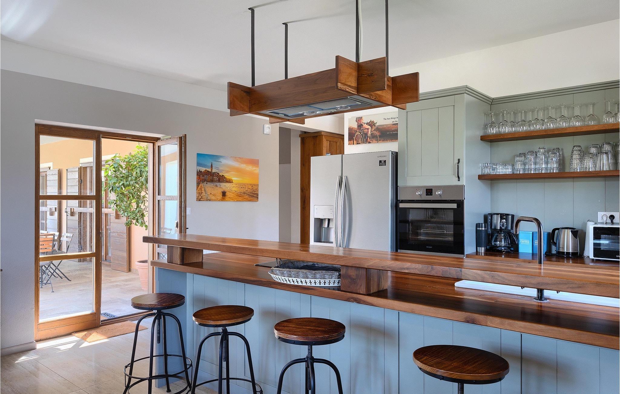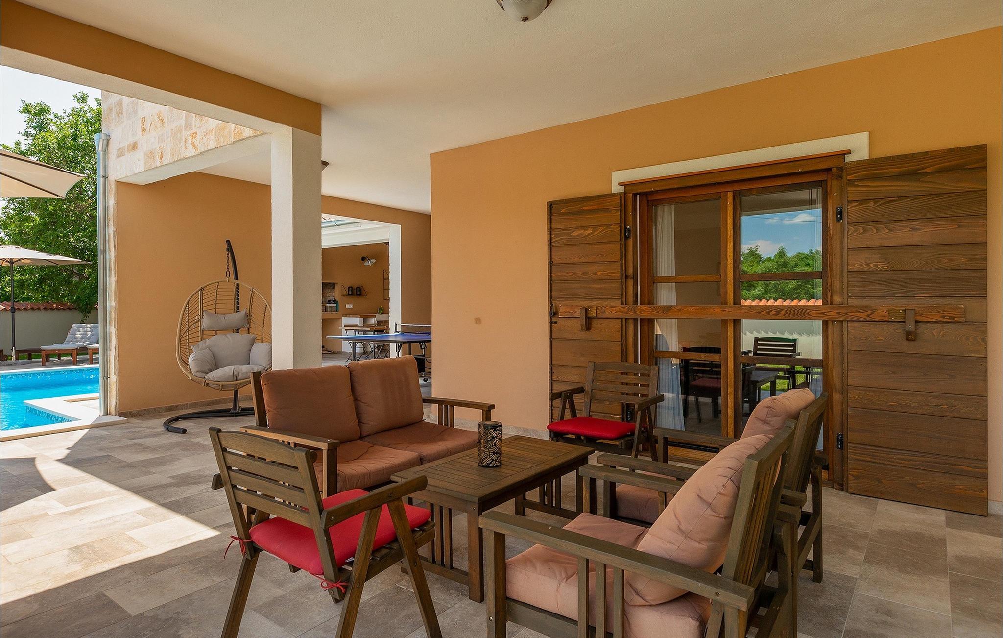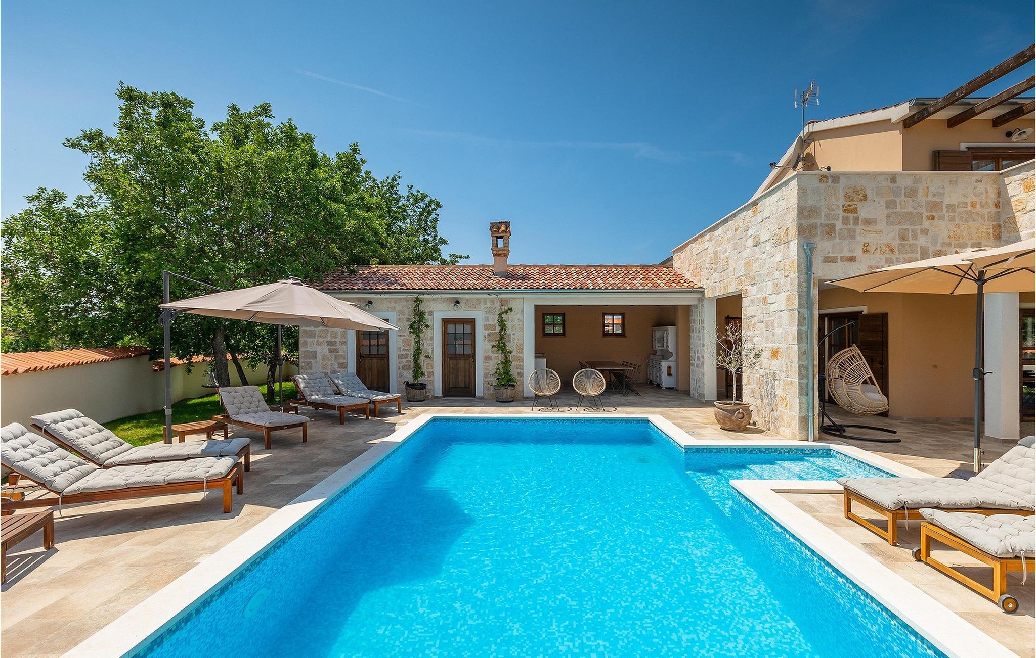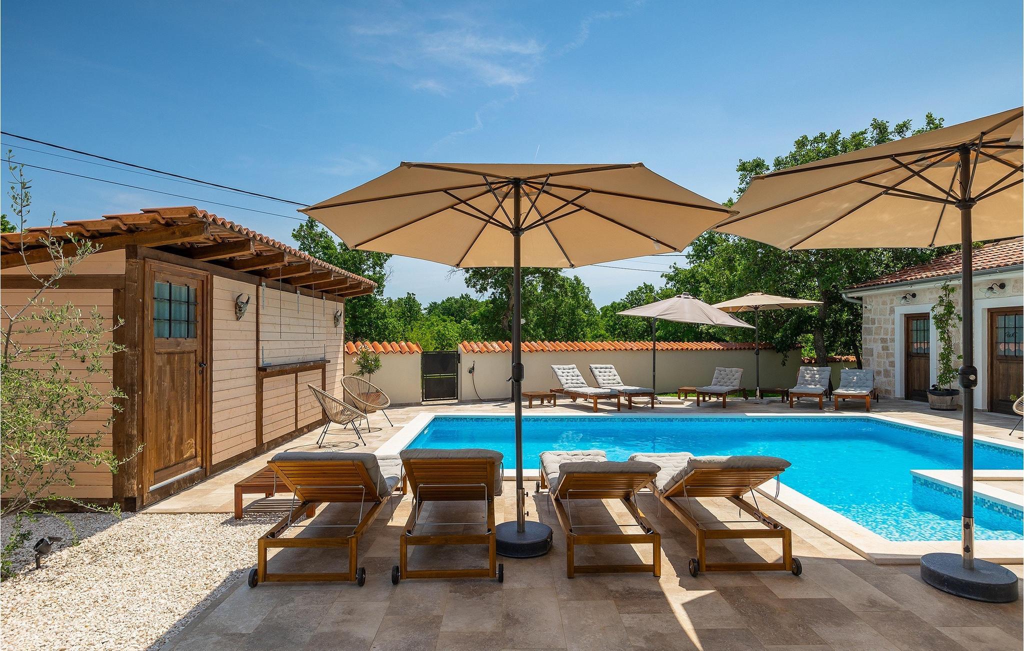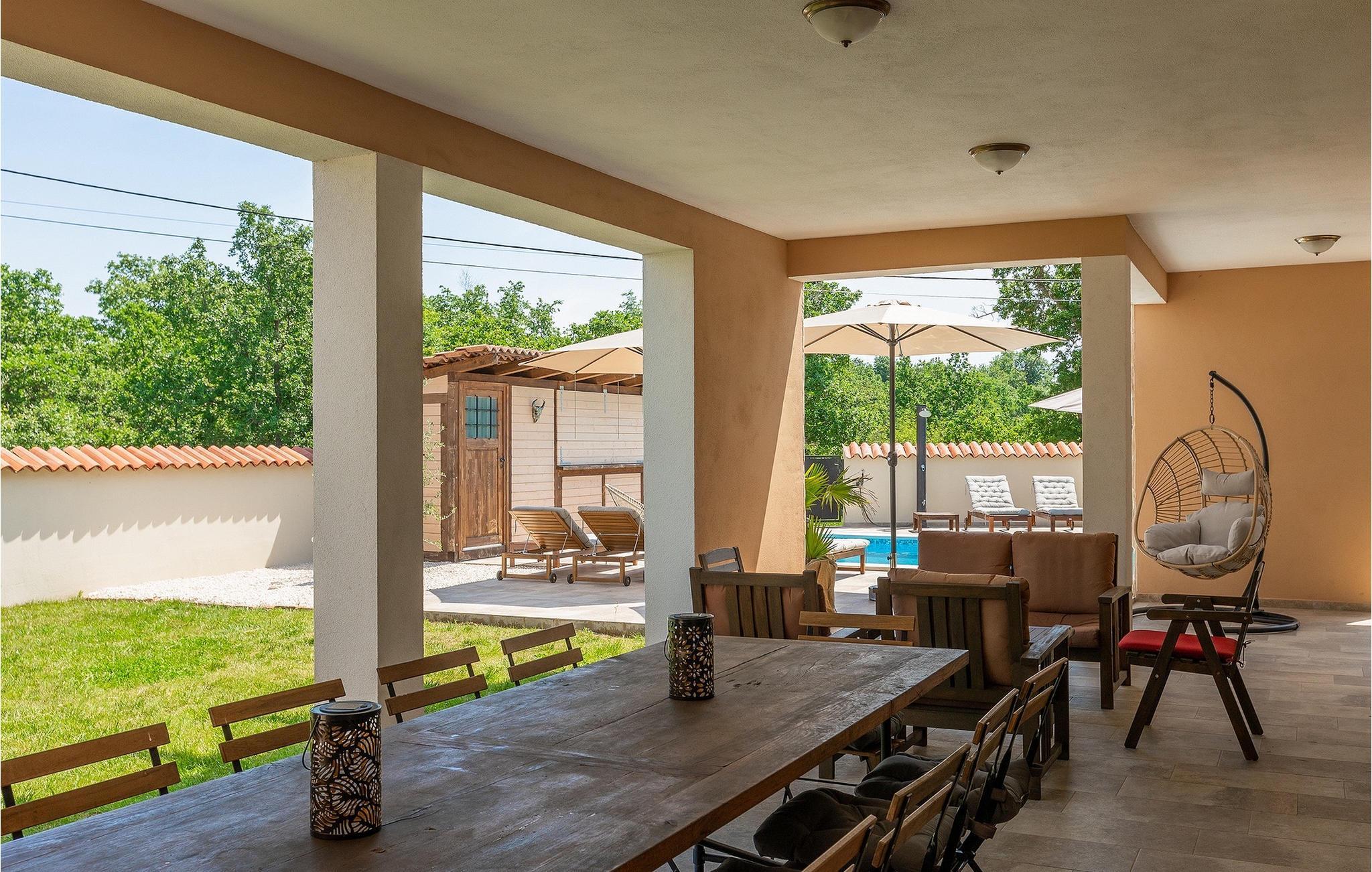 Du er kommet til det rette sted, hvis du leder efter en privat villa med pool til en afslappet ferie med dine kære, mens du søger et stilfuldt design og en hyggelig atmosfære. Villa Cirka er en vidunderlig ejendom med seks soveværelser i det centrale Istrien, der kan rumme 12 personer fra en familie eller gruppe af venner. Villaen byder på et smukt uderum og et lige så imponerende indvendigt rum. Udendørsområdet giver dig mulighed for at slappe af og køle ned i den 36 m2 opvarmede pool, slappe af på liggestolene med en forfriskende drink, og lade de unge spille bordtennis, mens de nyder deres ferie. En kulgrill, et overdækket udendørs spiseområde og hyggelige havemøbler er alle tilgængelige til gæsternes brug. De kan også lave skønne hjemmelavede måltider på kulgrillen udenfor. På tværs af villaens to plan er både interiør og eksteriør dekoreret med talrige trædetaljer og har en moderne, hjemlig stil. Hovedhuset har en stor, rummelig stue med et poolbord og et kickerbord, et moderne, fuldt udstyret køkken og en spisestue. Et soveværelse med en køjeseng og et en-suite badeværelse og et andet toilet er placeret i stueetagen af Villa Cirkas hovedbolig. Villaen er fuldt klimatiseret med Wi-Fi og også kæledyrsvenlig. Der er fire andre elegante soveværelser på første sal i Villa Cirka, som hver har tv, aircondition og tilhørende badeværelse med bruser. To af disse soveværelser har også udgange til altaner. Poolhuset er et ideelt sted at søge en ekstra knivspids af privatlivets fred, fordi det er adskilt fra hovedhuset og indeholder et soveværelse i dobbelt størrelse og et en-suite badeværelse med bruser. Villa Cirka er et fantastisk sted for særlige ferier med familie og venner, da det har masser af fornøjelige funktioner, et smukt design og en fantastisk beliggenhed. I den centrale Istriske landsby Svetvincenat kan du finde den dejlige Villa Cirka. Vodnjan, Motovun og Groznjan er nogle af de dejlige og romantiske byer, der er et besøg værd i dette område. Fremragende restauranter og taverner med et bredt udvalg af traditionelle retter ligesom hjemmelavet istrisk prosciutto (pršut), istrisk pasta (fuži) og hjemmelavede middelhavsspecialiteter kan findes tæt på villaen. Strandbyen Rovinj ligger ikke langt fra ejendommen, mens Pula, Istriens største perle, ligger i den sydlige del af regionen. Adskillige attraktioner i Pula er velkendte, ligesom det romerske amfiteater du helt sikkert bør besøge. Næste stop bør være The Brijuni National Park, hvis du vil udforske de maleriske omgivelser og nyde naturen og dyrenes verden. Temperaturen i den opvarmede swimmingpool er afhængig af eksterne faktorer, herunder vejrforhold, og som sådan kan temperaturen på vandet ikke garanteres.