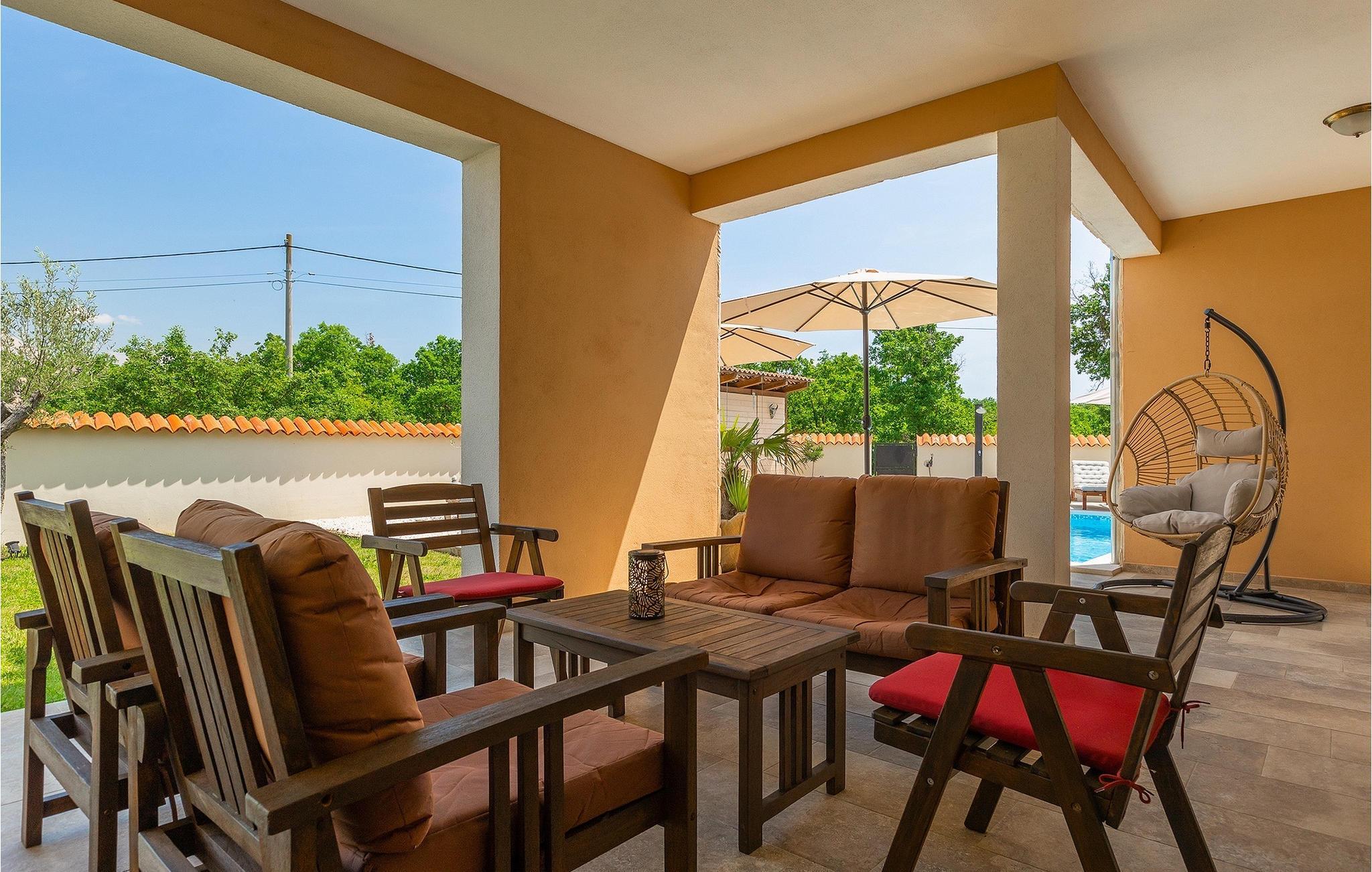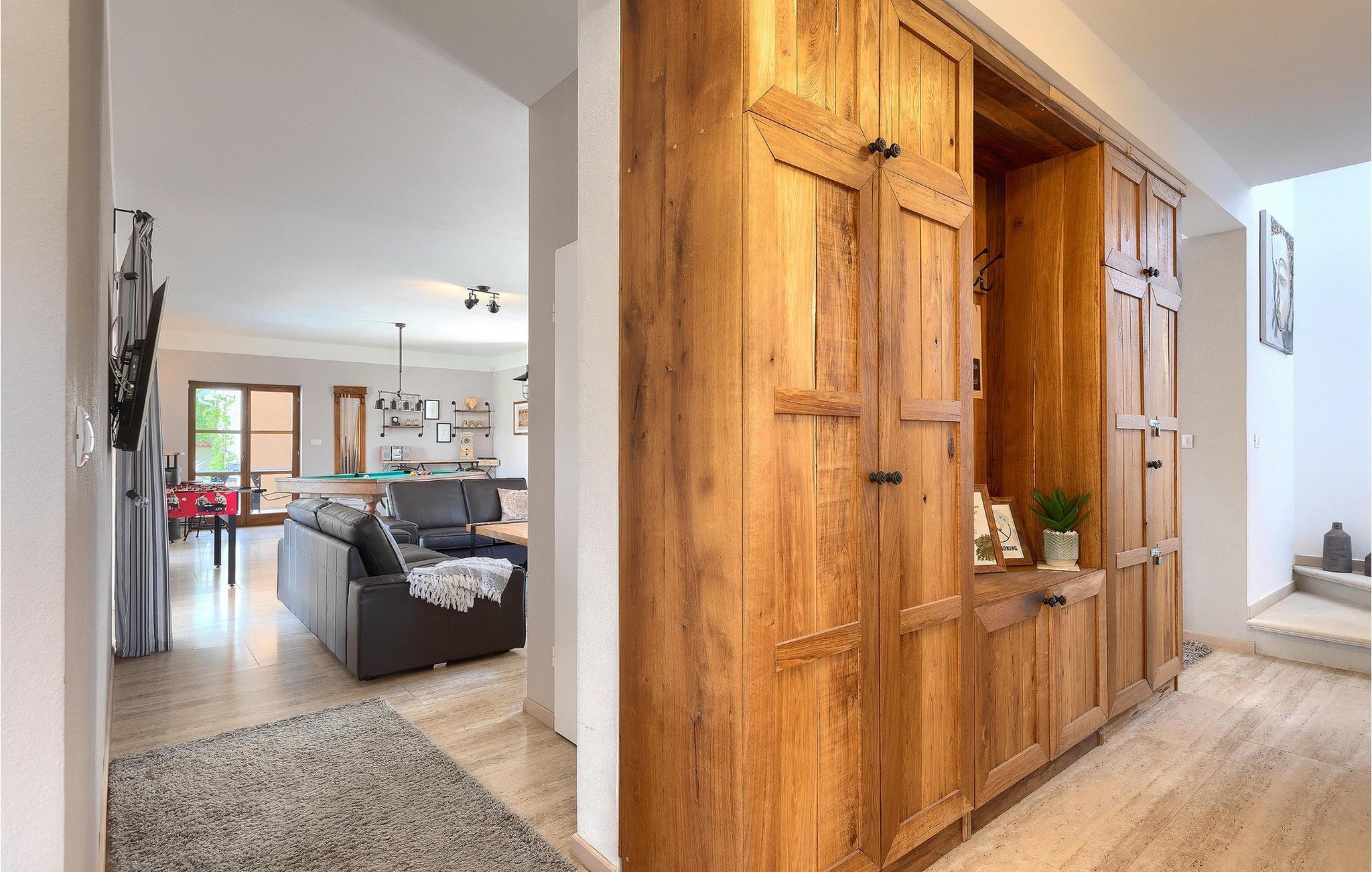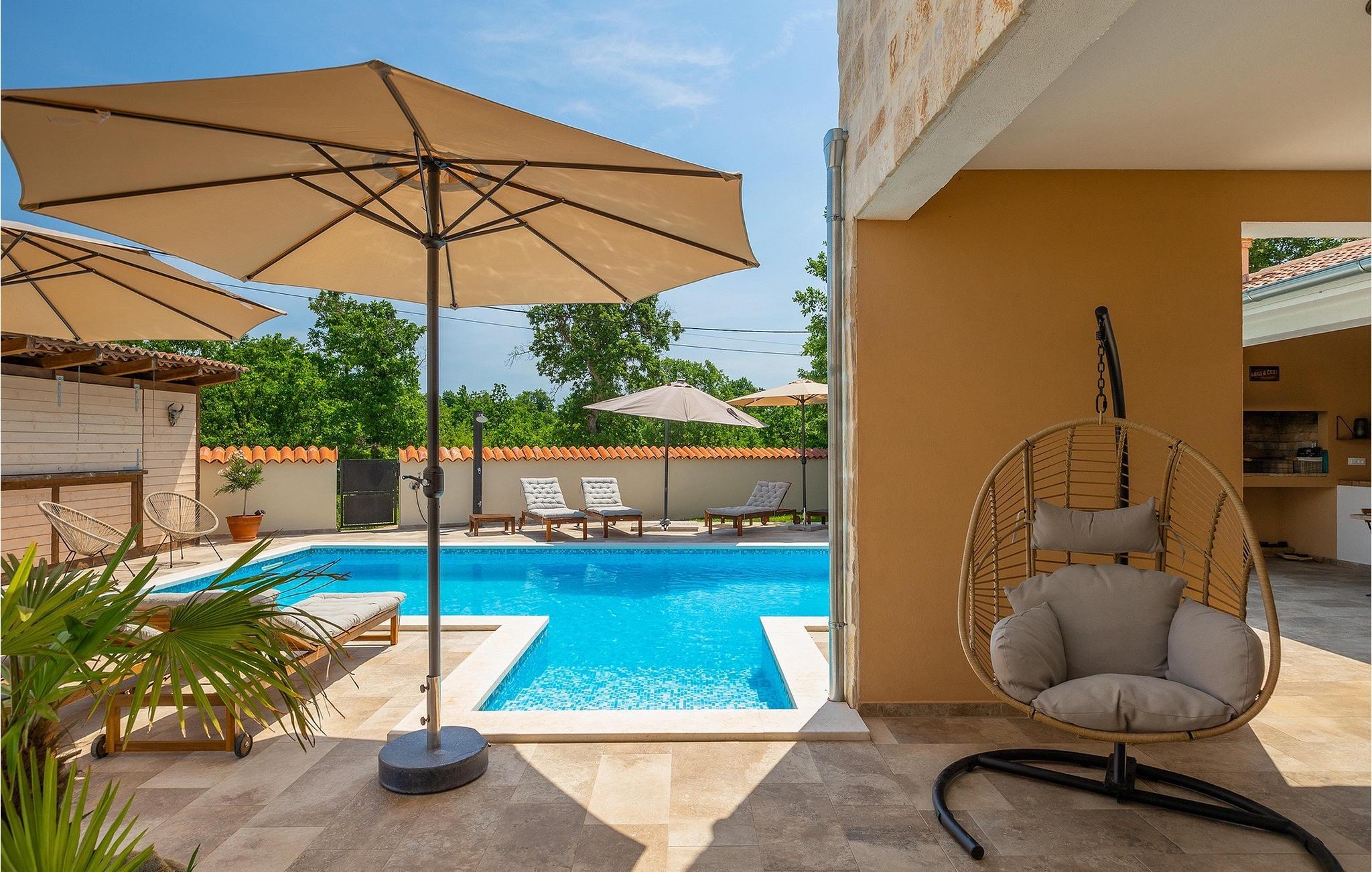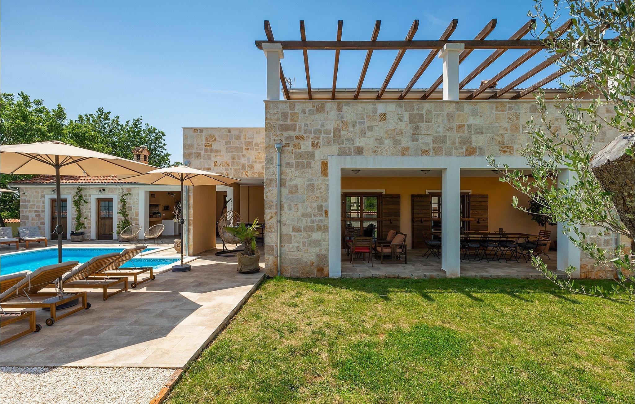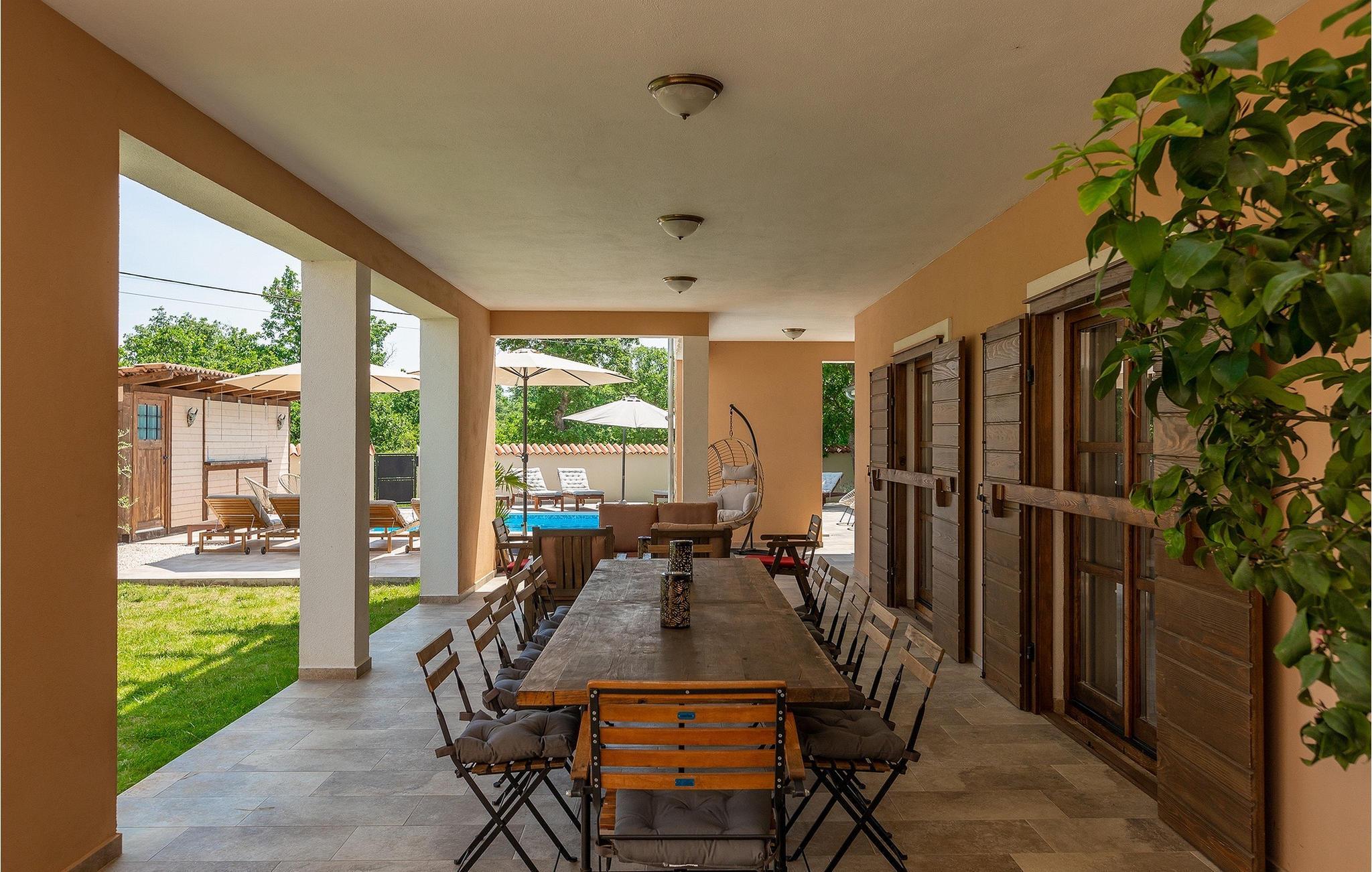 Du er kommet til det rette sted, hvis du leder efter en privat villa med pool til en afslappet ferie med dine kære, mens du søger et stilfuldt design og en hyggelig atmosfære. Villa Cirka er en vidunderlig ejendom med seks soveværelser i det centrale Istrien, der kan rumme 12 personer fra en familie eller gruppe af venner. Villaen byder på et smukt uderum og et lige så imponerende indvendigt rum. Udendørsområdet giver dig mulighed for at slappe af og køle ned i den 36 m2 opvarmede pool, slappe af på liggestolene med en forfriskende drink, og lade de unge spille bordtennis, mens de nyder deres ferie. En kulgrill, et overdækket udendørs spiseområde og hyggelige havemøbler er alle tilgængelige til gæsternes brug. De kan også lave skønne hjemmelavede måltider på kulgrillen udenfor. På tværs af villaens to plan er både interiør og eksteriør dekoreret med talrige trædetaljer og har en moderne, hjemlig stil. Hovedhuset har en stor, rummelig stue med et poolbord og et kickerbord, et moderne, fuldt udstyret køkken og en spisestue. Et soveværelse med en køjeseng og et en-suite badeværelse og et andet toilet er placeret i stueetagen af Villa Cirkas hovedbolig. Villaen er fuldt klimatiseret med Wi-Fi og også kæledyrsvenlig. Der er fire andre elegante soveværelser på første sal i Villa Cirka, som hver har tv, aircondition og tilhørende badeværelse med bruser. To af disse soveværelser har også udgange til altaner. Poolhuset er et ideelt sted at søge en ekstra knivspids af privatlivets fred, fordi det er adskilt fra hovedhuset og indeholder et soveværelse i dobbelt størrelse og et en-suite badeværelse med bruser. Villa Cirka er et fantastisk sted for særlige ferier med familie og venner, da det har masser af fornøjelige funktioner, et smukt design og en fantastisk beliggenhed. I den centrale Istriske landsby Svetvincenat kan du finde den dejlige Villa Cirka. Vodnjan, Motovun og Groznjan er nogle af de dejlige og romantiske byer, der er et besøg værd i dette område. Fremragende restauranter og taverner med et bredt udvalg af traditionelle retter ligesom hjemmelavet istrisk prosciutto (pršut), istrisk pasta (fuži) og hjemmelavede middelhavsspecialiteter kan findes tæt på villaen. Strandbyen Rovinj ligger ikke langt fra ejendommen, mens Pula, Istriens største perle, ligger i den sydlige del af regionen. Adskillige attraktioner i Pula er velkendte, ligesom det romerske amfiteater du helt sikkert bør besøge. Næste stop bør være The Brijuni National Park, hvis du vil udforske de maleriske omgivelser og nyde naturen og dyrenes verden. Temperaturen i den opvarmede swimmingpool er afhængig af eksterne faktorer, herunder vejrforhold, og som sådan kan temperaturen på vandet ikke garanteres.