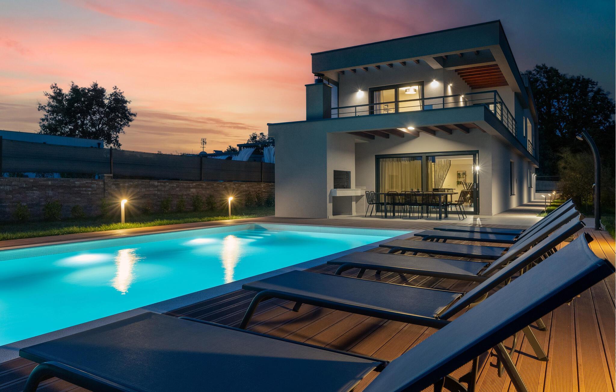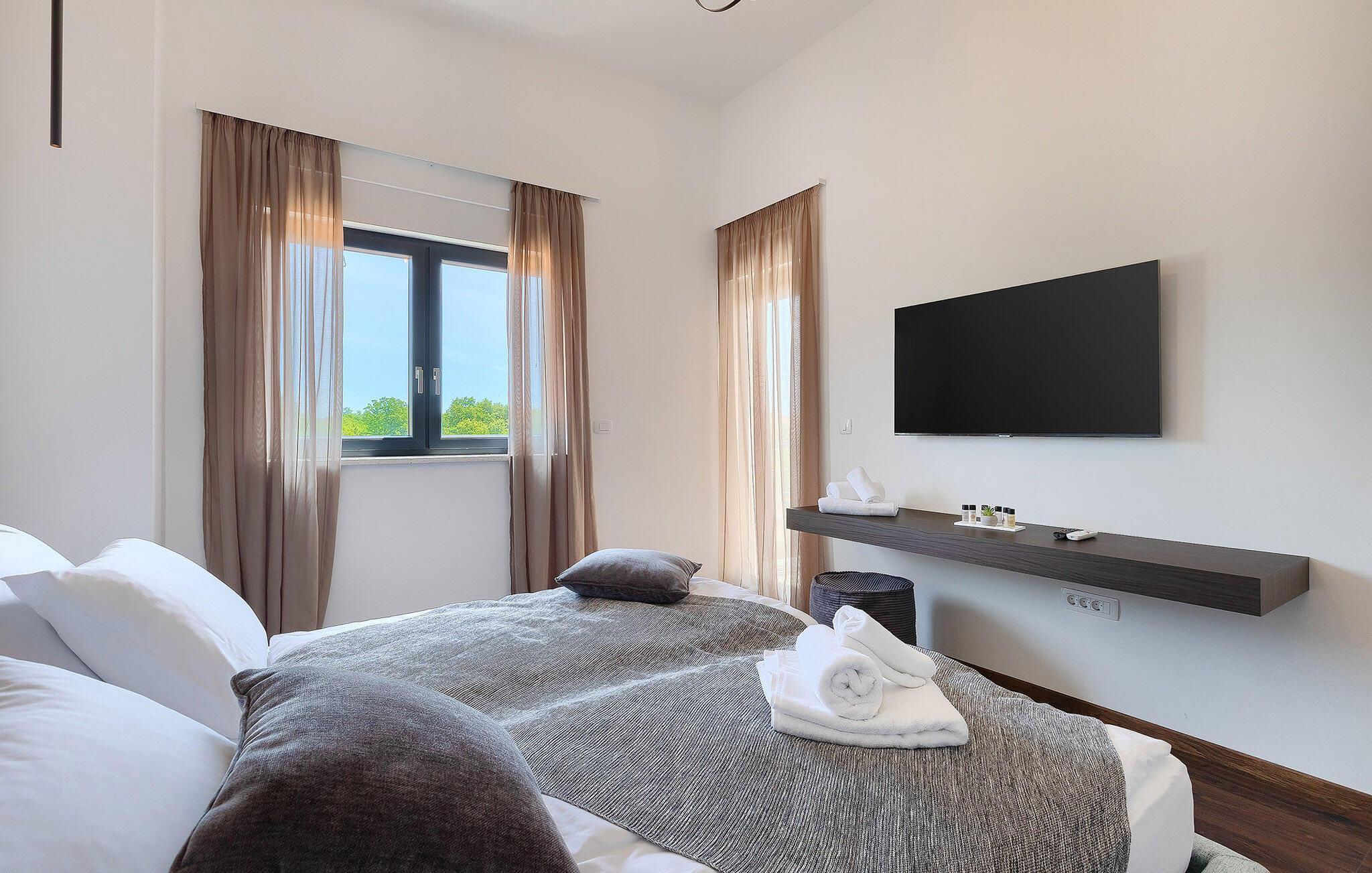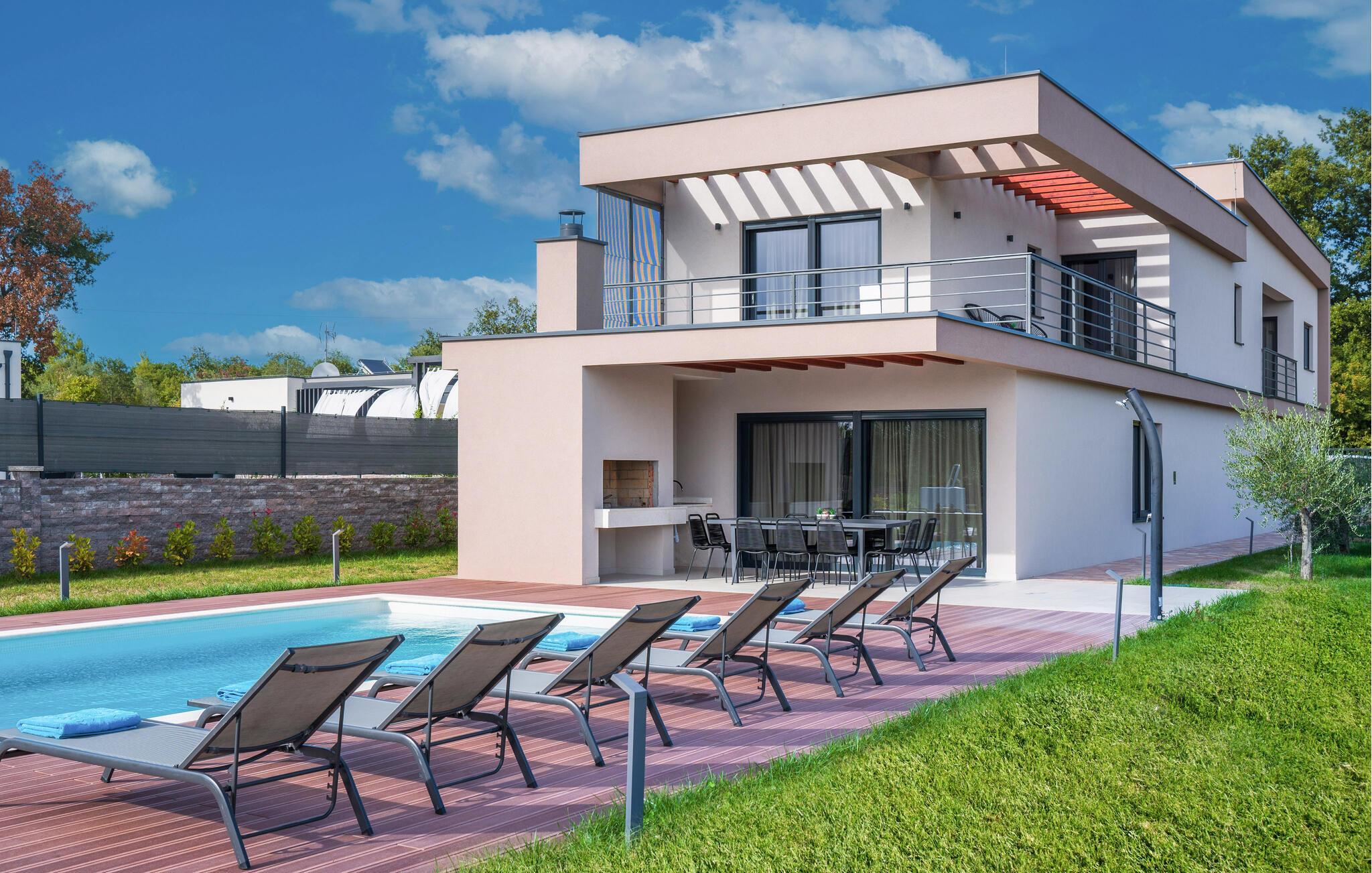 Den smukke familie Villa Artsi ligger i middelalderbyen Svetvincenat. Den fuldt indhegnede villa tilbyder dig en intim ferie med familie, venner og kæledyr. Foran villaen er der en imponerende opvarmet pool på 50 m2. Nyd solbadning på liggestolene eller tilbring uforglemmelige sammenkomster ved poolen i det overdækkede område ved et bord med ti siddepladser. Tilbered traditionelle istriske retter på grillen til hele familien. Hav det sjovt udendørs med dine kære med bordfodbold og bordtennis. De yngste gæster vil være glade for at tilbringe tid på legepladsen, der er udstyret med en rutsjebane. Det indre af villaen er moderne i indretning. I villaens stueetage er der et åbent område med en rummelig stue, et fuldt udstyret køkken, hvor hele familien kan deltage i tilberedningen af måltider, og en spisestue med ti siddepladser, hvor I kan tilbringe tid sammen. Et separat toilet og det første soveværelse med dobbeltsenge og eget badeværelse er placeret i stueetagen af villaen. De resterende fire soveværelser med dobbeltsenge og private badeværelser er placeret på første sal. Alle værelser har tv og klimaanlæg, ideelt til en fredelig søvn og ønsket hvile. Soveværelserne har udgang til villaens terrasse, hvor du kan nyde morgenkaffe eller en forfriskende drink, mens du beundrer den smukke udsigt over den uberørte natur. Vælg denne smukke villa, ideel til en familieferie med venner og kæledyr i landlige omgivelser omgivet af grønne områder og den istriske atmosfære. Overgiv dig til charmen fra de lokale beboere i landsbyen Štokovci og nyd en unik ferie i det indre af Istrien. Villa Artsi ligger nær middelalderbyen Svetvincenat i landsbyen Štokovci i den sydlige del af det centrale Istrien. Svetvincenat vil glæde dig med renæssancepladsen "Placa" med Morosini-Grimani-slottet, symbolet på selve stedet. En vigtig del af Svetvincenats kulturarv er de bevarede rester af murfresker i kirken St. Vincent nær byens kirkegård og i kirken St. Catherine. Denne særlige by tiltrækker besøgende med interessante og varierede lokale begivenheder; den mest fremragende er Middelalderfestivalen, hvor du kan prøve dig i middelalderlege. Du vil blive imponeret over den lokale befolknings gæstfrihed, det rige traditionelle istriske køkken og den ekstra jomfru olivenolie. Udforsk skønheden i denne region på adskillige cykel- og vandrestier. Besøg de vigtigste turistcentre i Istrien: Rovinj, Porec, Labin, Pula. I Rovinj kan du se den barokke kirke St. Euphemia, mens du i Porec kan besøge den byzantinske Euphrasian Basilica, der er optaget på UNESCOs verdenskulturarvsliste. Gå ikke glip af at besøge den største by i Istrien, Pula, hvor du kan se Pula Arena, Augustus-templet, Den Gyldne Port og mange andre kulturelle og historiske monumenter. Udforsk endelig Brijuni-øgruppen med den berømte Brijuni Nationalpark. Temperaturen i den opvarmede swimmingpool er afhængig af eksterne faktorer, herunder vejrforhold, og som sådan kan temperaturen på vandet ikke garanteres.