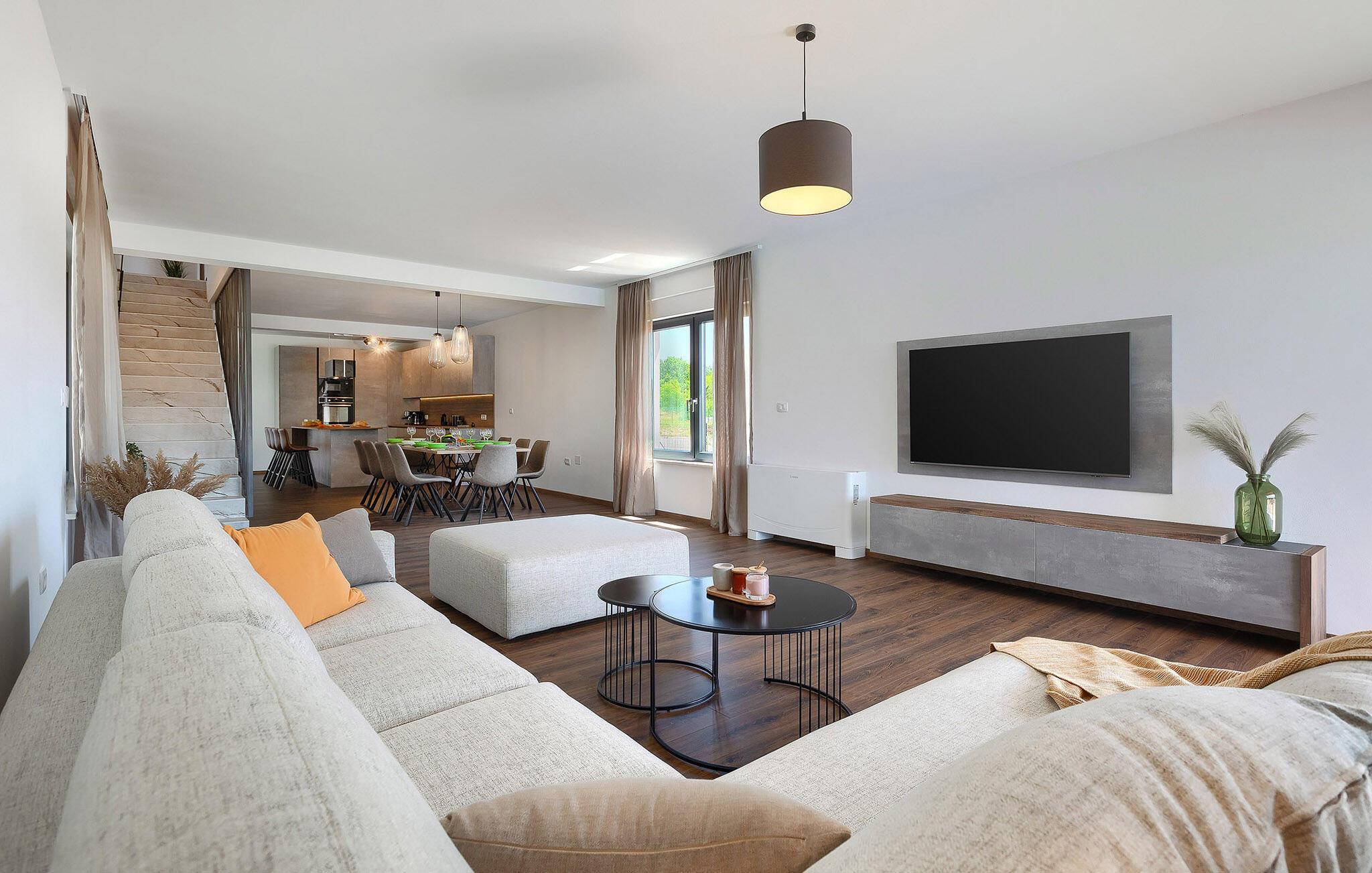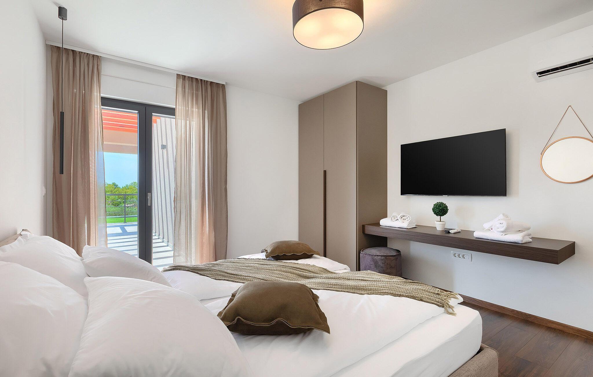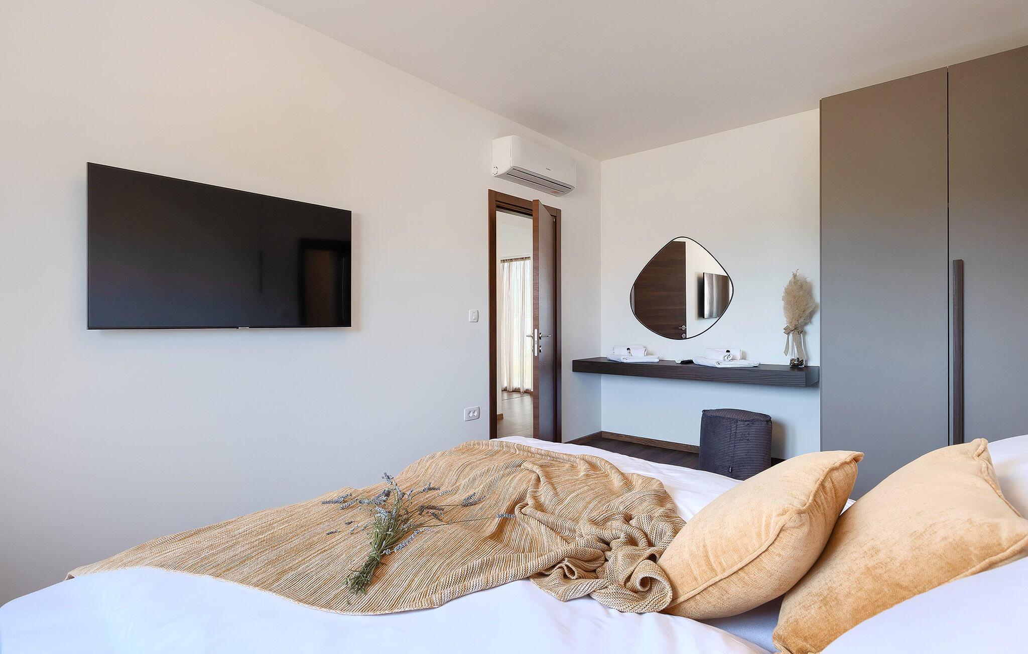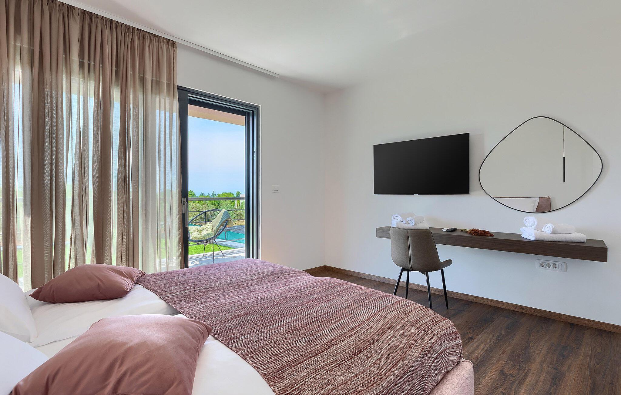 Den smukke familie Villa Artsi ligger i middelalderbyen Svetvincenat. Den fuldt indhegnede villa tilbyder dig en intim ferie med familie, venner og kæledyr. Foran villaen er der en imponerende opvarmet pool på 50 m2. Nyd solbadning på liggestolene eller tilbring uforglemmelige sammenkomster ved poolen i det overdækkede område ved et bord med ti siddepladser. Tilbered traditionelle istriske retter på grillen til hele familien. Hav det sjovt udendørs med dine kære med bordfodbold og bordtennis. De yngste gæster vil være glade for at tilbringe tid på legepladsen, der er udstyret med en rutsjebane. Det indre af villaen er moderne i indretning. I villaens stueetage er der et åbent område med en rummelig stue, et fuldt udstyret køkken, hvor hele familien kan deltage i tilberedningen af måltider, og en spisestue med ti siddepladser, hvor I kan tilbringe tid sammen. Et separat toilet og det første soveværelse med dobbeltsenge og eget badeværelse er placeret i stueetagen af villaen. De resterende fire soveværelser med dobbeltsenge og private badeværelser er placeret på første sal. Alle værelser har tv og klimaanlæg, ideelt til en fredelig søvn og ønsket hvile. Soveværelserne har udgang til villaens terrasse, hvor du kan nyde morgenkaffe eller en forfriskende drink, mens du beundrer den smukke udsigt over den uberørte natur. Vælg denne smukke villa, ideel til en familieferie med venner og kæledyr i landlige omgivelser omgivet af grønne områder og den istriske atmosfære. Overgiv dig til charmen fra de lokale beboere i landsbyen Štokovci og nyd en unik ferie i det indre af Istrien. Villa Artsi ligger nær middelalderbyen Svetvincenat i landsbyen Štokovci i den sydlige del af det centrale Istrien. Svetvincenat vil glæde dig med renæssancepladsen "Placa" med Morosini-Grimani-slottet, symbolet på selve stedet. En vigtig del af Svetvincenats kulturarv er de bevarede rester af murfresker i kirken St. Vincent nær byens kirkegård og i kirken St. Catherine. Denne særlige by tiltrækker besøgende med interessante og varierede lokale begivenheder; den mest fremragende er Middelalderfestivalen, hvor du kan prøve dig i middelalderlege. Du vil blive imponeret over den lokale befolknings gæstfrihed, det rige traditionelle istriske køkken og den ekstra jomfru olivenolie. Udforsk skønheden i denne region på adskillige cykel- og vandrestier. Besøg de vigtigste turistcentre i Istrien: Rovinj, Porec, Labin, Pula. I Rovinj kan du se den barokke kirke St. Euphemia, mens du i Porec kan besøge den byzantinske Euphrasian Basilica, der er optaget på UNESCOs verdenskulturarvsliste. Gå ikke glip af at besøge den største by i Istrien, Pula, hvor du kan se Pula Arena, Augustus-templet, Den Gyldne Port og mange andre kulturelle og historiske monumenter. Udforsk endelig Brijuni-øgruppen med den berømte Brijuni Nationalpark. Temperaturen i den opvarmede swimmingpool er afhængig af eksterne faktorer, herunder vejrforhold, og som sådan kan temperaturen på vandet ikke garanteres.