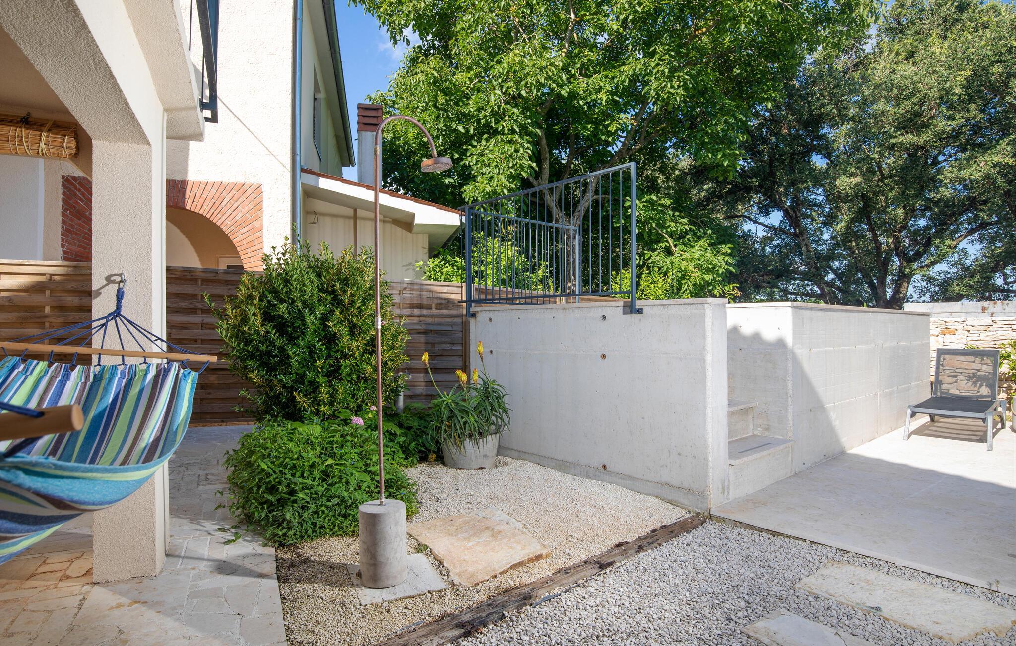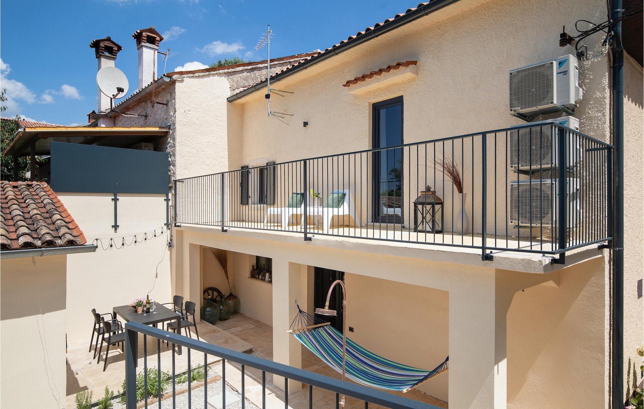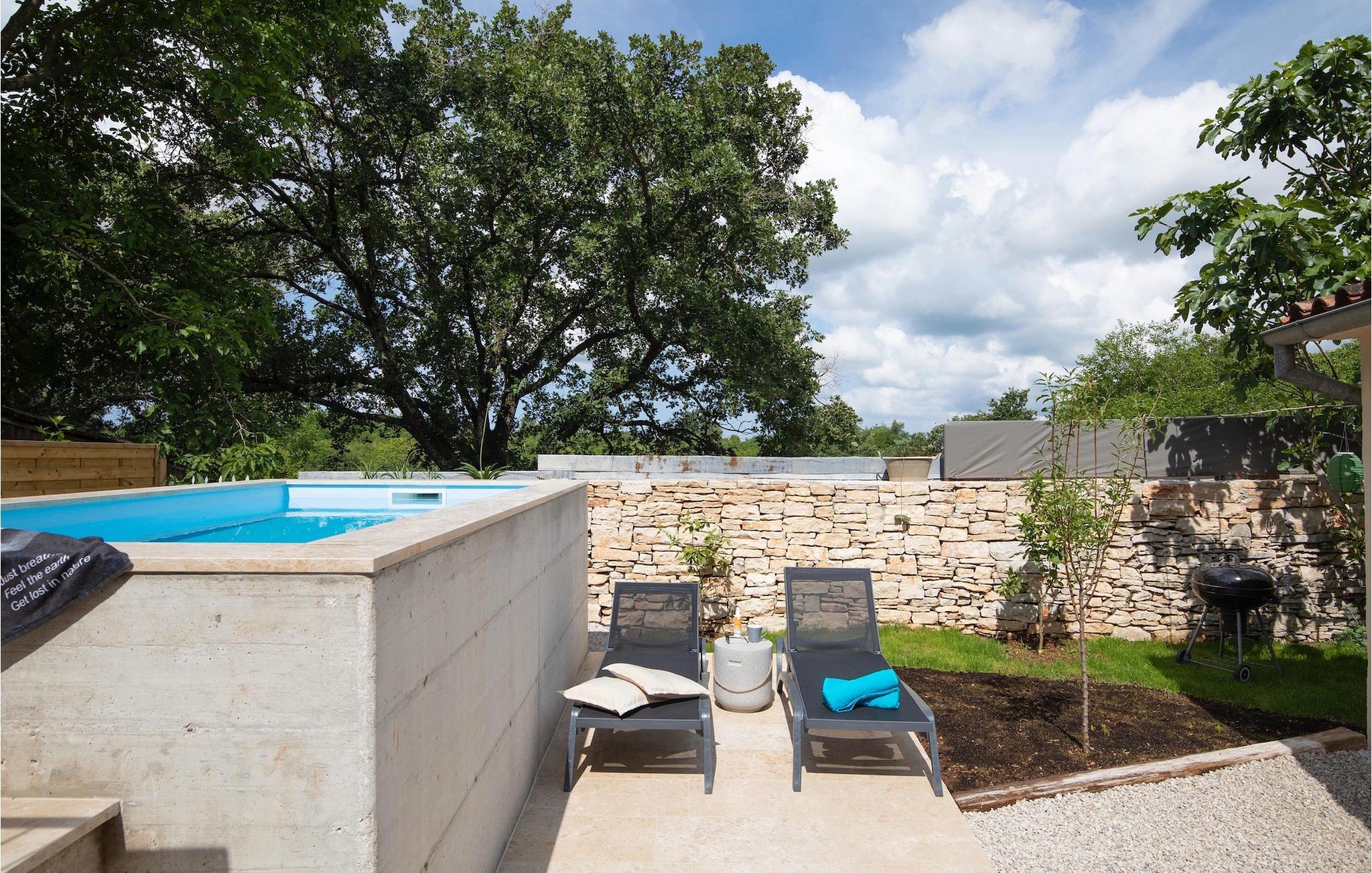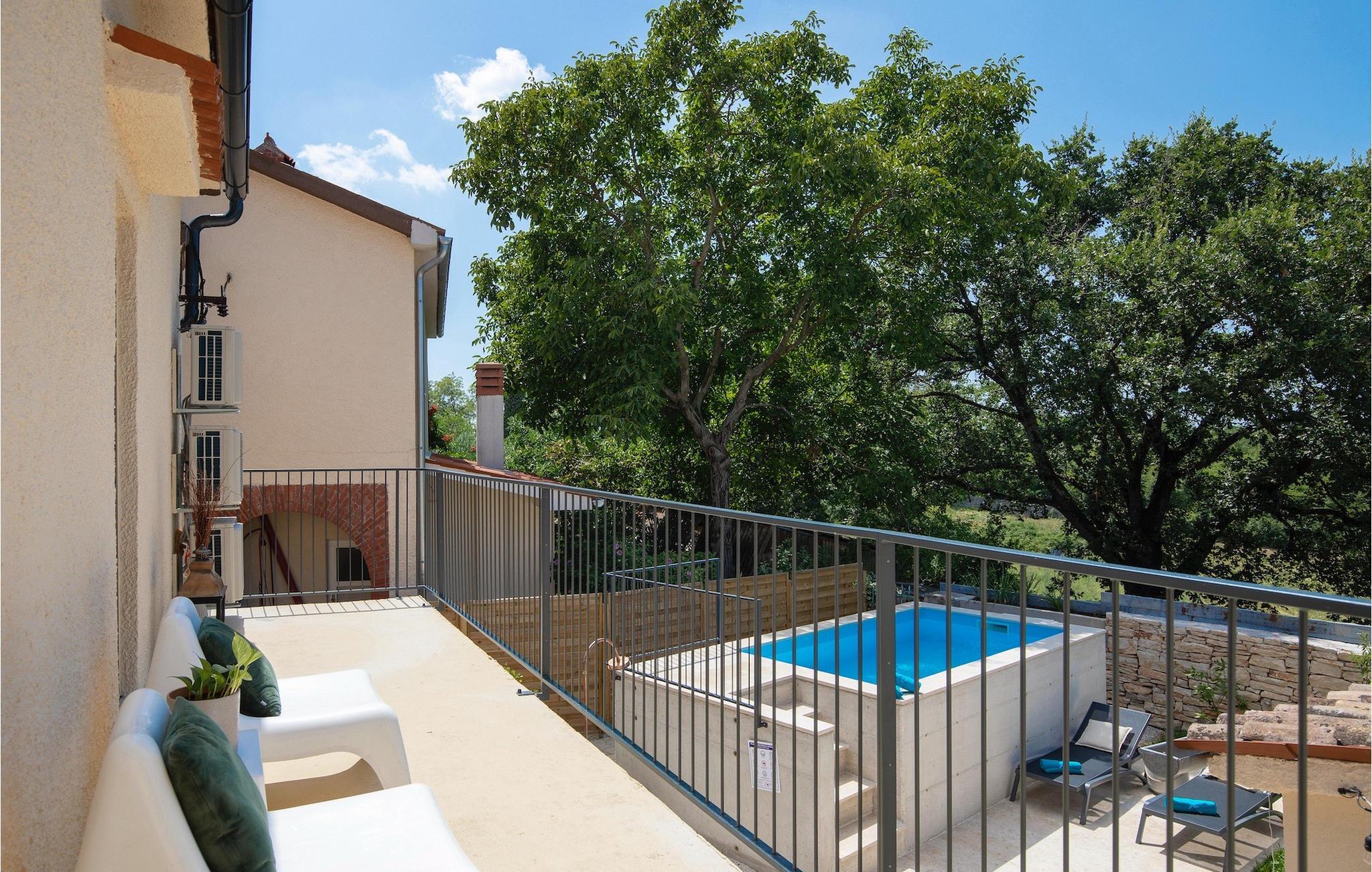 Villa Giorgio Jursici er en charmerende villa beliggende i det centrale Istrien. Trænger du til en ferie i et miljø af uberørt natur, så er Villa Giorgio Jursici noget for dig. Foran villaen er der en skøn 6 m2 pool. Køl af i poolen i sommervarmen eller slap af på liggestolene ved poolen og nyd den istriske sols stråler. Tag en lur i en hængekøje i det overdækkede område foran villaen. Tilbered traditionelle istriske retter på grillen til familie og venner. Tilbring uforglemmelige sammenkomster med tilberedte måltider ved bordet med 4 pladser foran villaen. I stueetagen af villaen er der et åbent rum med et veludstyret køkken og en spisestue med 6 sæder og det første badeværelse. På første sal er der et hyggeligt soveværelse med dobbeltseng og aircondition, der emmer af den istriske atmosfære. Udover soveværelset er der også en stue på denne etage, hvor du kan slappe af med en interessant film, og et badeværelse. Tilbring dine morgener på terrassen på første sal, mens du nyder en kop kaffe. Gå ikke glip af en afslappende ferie i Villa Giorgio Jursici og forkæl dig selv med charmen i den traditionelle istriske by Jursici. Villa Giorgio Juršici ligger i landsbyen Juršici i det centrale Istrien. I denne charmerende landsby vil du blive henrykt over den lokale befolkning og deres hjemmelavede produkter. Smag traditionel istrisk olivenolie og andre delikatesser. Tag et kig på kirken St. Frans af Assisi fra det 19. århundrede og besøg den traditionelle messe for det istriske æsel. Svetvincena vil fortrylle dig med renæssancepladsen "Placa" med Morosini-Grimani-slottet, symbolet på selve stedet. En vigtig del af Svetvincenas kulturarv er de bevarede rester af murfresker i kirken St. Vincent nær byens kirkegård og i kirken St. Catherine. Denne specielle by tiltrækker besøgende med interessante og varierede lokale begivenheder, hvoraf den mest fremtrædende er middelalderfestivalen, hvor du kan prøve dig i middelalderlege. Placeringen af villaen er et ideelt udgangspunkt for at udforske Istrien. Besøg de vigtigste turistcentre i Istrien: Rovinj, Porec, Labin, Pula. I Rovinj kan du se den barokke kirke St. Euphemia, mens du i Porec kan besøge den byzantinske Euphrasian Basilica, der er optaget på UNESCOs verdenskulturarvsliste. Gå ikke glip af at besøge den største istriske by Pula, hvor du kan se Pula Arena, Augustus-templet, Den Gyldne Port og mange andre kulturelle og historiske monumenter. Udforsk endelig Brijuni-øgruppen med den berømte Brijuni Nationalpark.