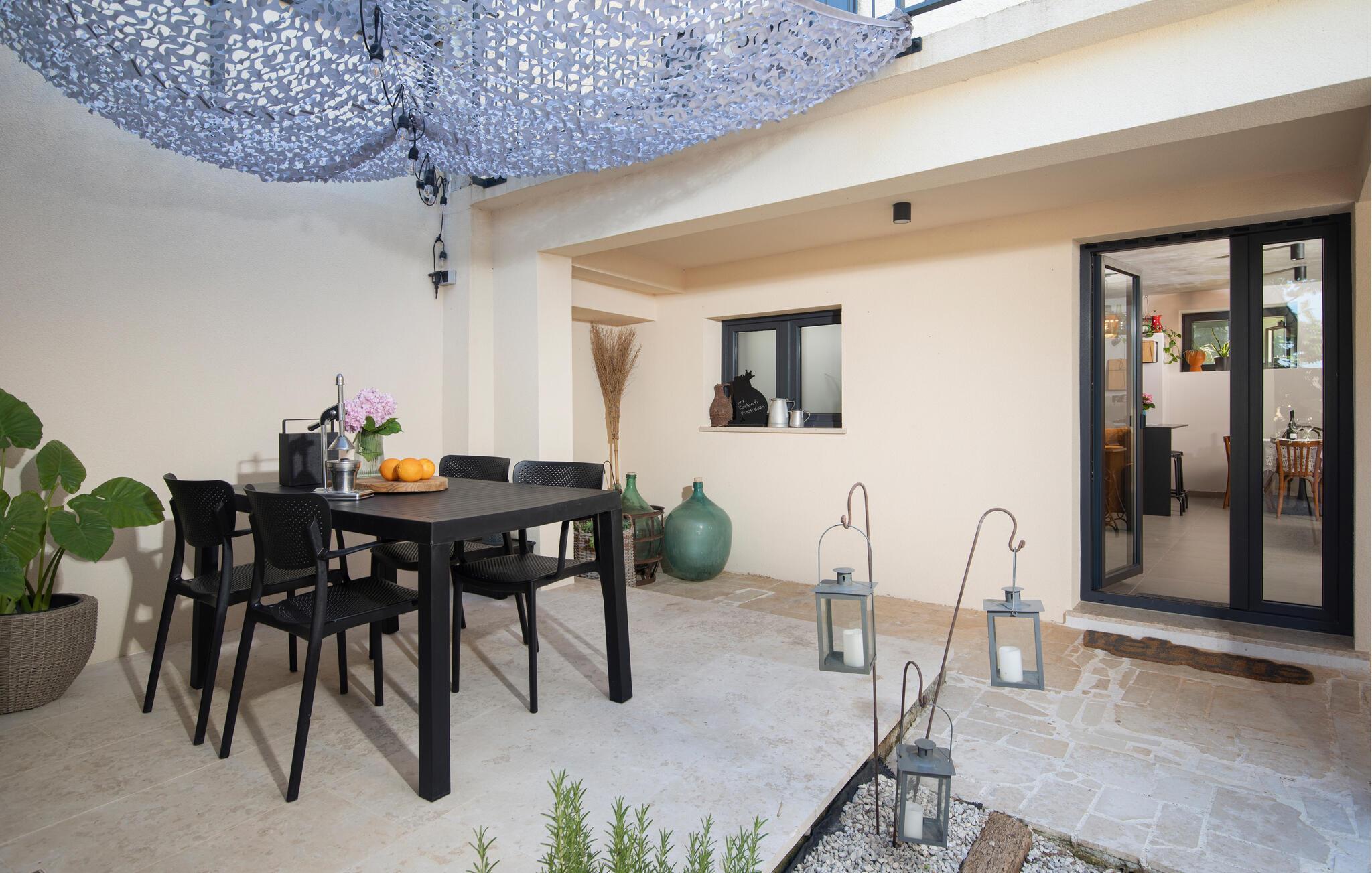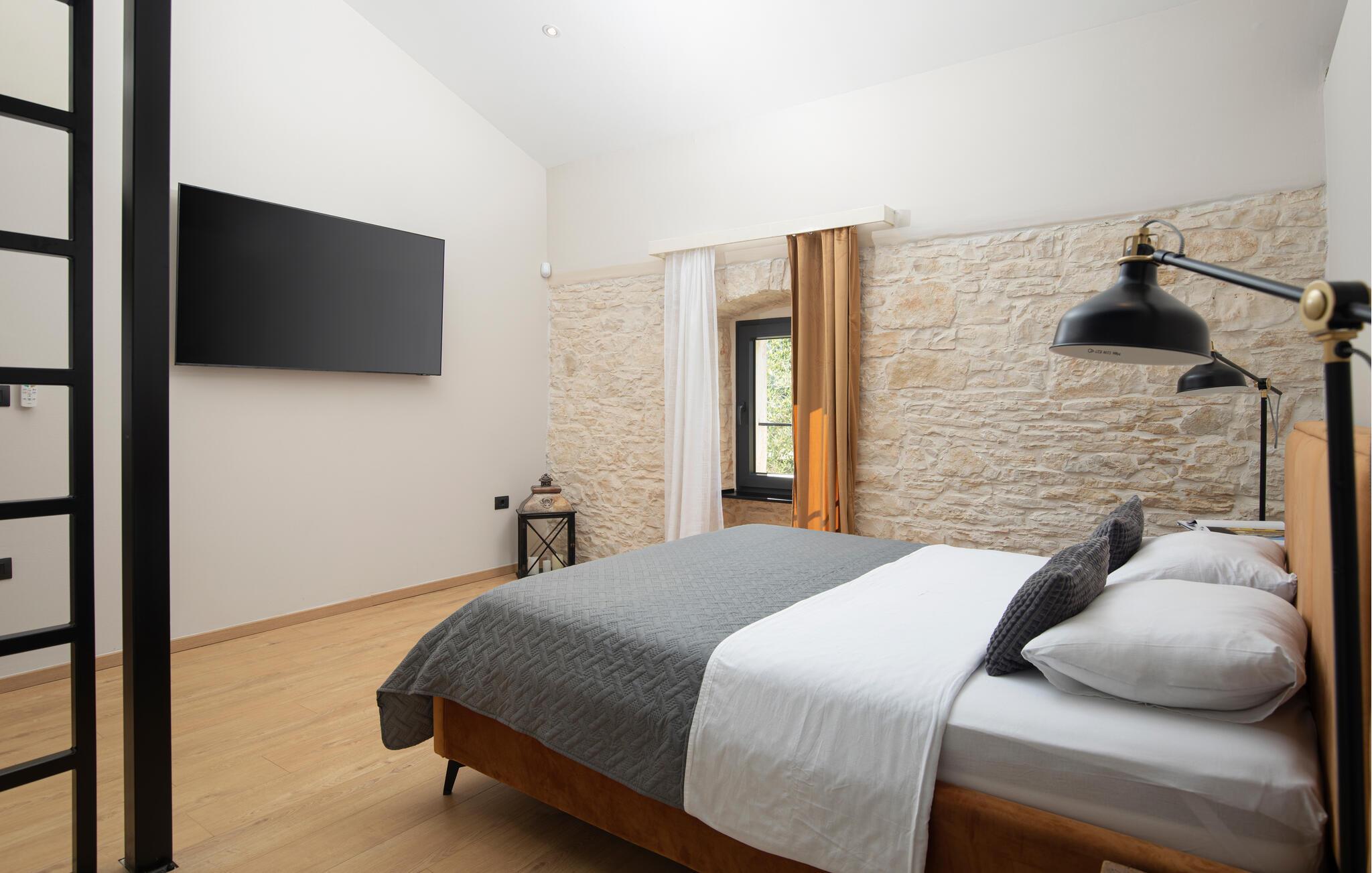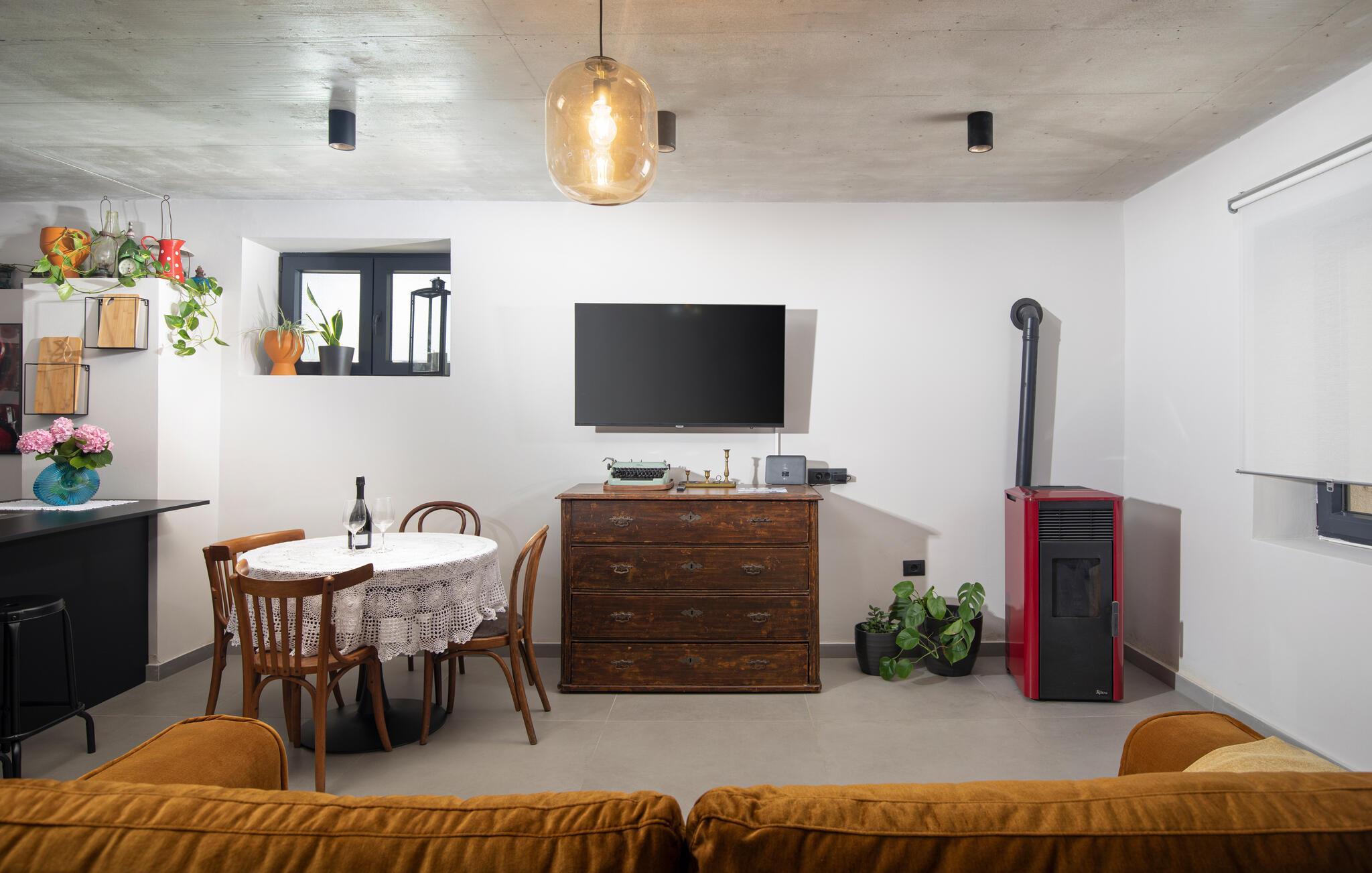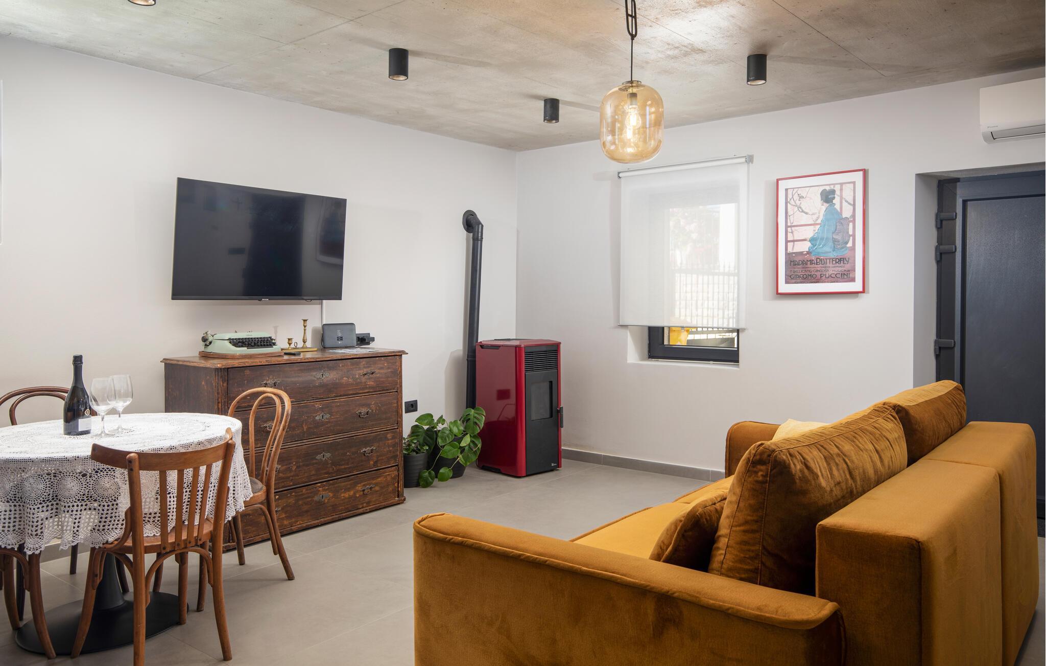 Villa Giorgio Jursici er en charmerende villa beliggende i det centrale Istrien. Trænger du til en ferie i et miljø af uberørt natur, så er Villa Giorgio Jursici noget for dig. Foran villaen er der en skøn 6 m2 pool. Køl af i poolen i sommervarmen eller slap af på liggestolene ved poolen og nyd den istriske sols stråler. Tag en lur i en hængekøje i det overdækkede område foran villaen. Tilbered traditionelle istriske retter på grillen til familie og venner. Tilbring uforglemmelige sammenkomster med tilberedte måltider ved bordet med 4 pladser foran villaen. I stueetagen af villaen er der et åbent rum med et veludstyret køkken og en spisestue med 6 sæder og det første badeværelse. På første sal er der et hyggeligt soveværelse med dobbeltseng og aircondition, der emmer af den istriske atmosfære. Udover soveværelset er der også en stue på denne etage, hvor du kan slappe af med en interessant film, og et badeværelse. Tilbring dine morgener på terrassen på første sal, mens du nyder en kop kaffe. Gå ikke glip af en afslappende ferie i Villa Giorgio Jursici og forkæl dig selv med charmen i den traditionelle istriske by Jursici. Villa Giorgio Juršici ligger i landsbyen Juršici i det centrale Istrien. I denne charmerende landsby vil du blive henrykt over den lokale befolkning og deres hjemmelavede produkter. Smag traditionel istrisk olivenolie og andre delikatesser. Tag et kig på kirken St. Frans af Assisi fra det 19. århundrede og besøg den traditionelle messe for det istriske æsel. Svetvincena vil fortrylle dig med renæssancepladsen "Placa" med Morosini-Grimani-slottet, symbolet på selve stedet. En vigtig del af Svetvincenas kulturarv er de bevarede rester af murfresker i kirken St. Vincent nær byens kirkegård og i kirken St. Catherine. Denne specielle by tiltrækker besøgende med interessante og varierede lokale begivenheder, hvoraf den mest fremtrædende er middelalderfestivalen, hvor du kan prøve dig i middelalderlege. Placeringen af villaen er et ideelt udgangspunkt for at udforske Istrien. Besøg de vigtigste turistcentre i Istrien: Rovinj, Porec, Labin, Pula. I Rovinj kan du se den barokke kirke St. Euphemia, mens du i Porec kan besøge den byzantinske Euphrasian Basilica, der er optaget på UNESCOs verdenskulturarvsliste. Gå ikke glip af at besøge den største istriske by Pula, hvor du kan se Pula Arena, Augustus-templet, Den Gyldne Port og mange andre kulturelle og historiske monumenter. Udforsk endelig Brijuni-øgruppen med den berømte Brijuni Nationalpark.