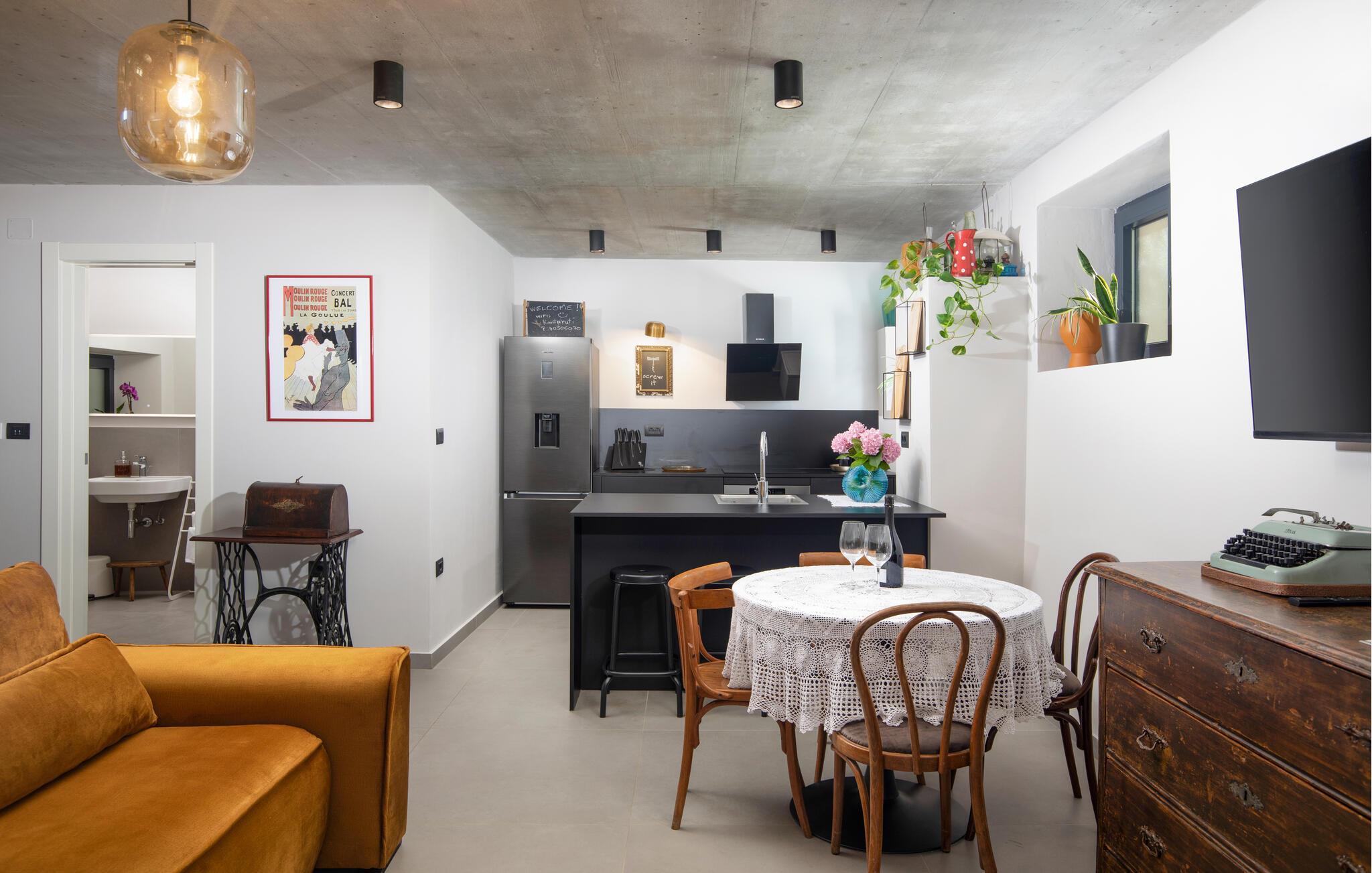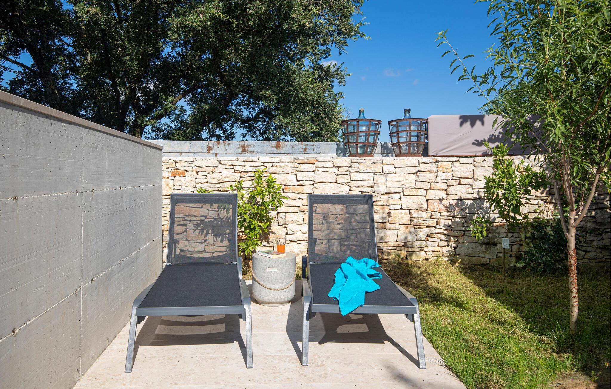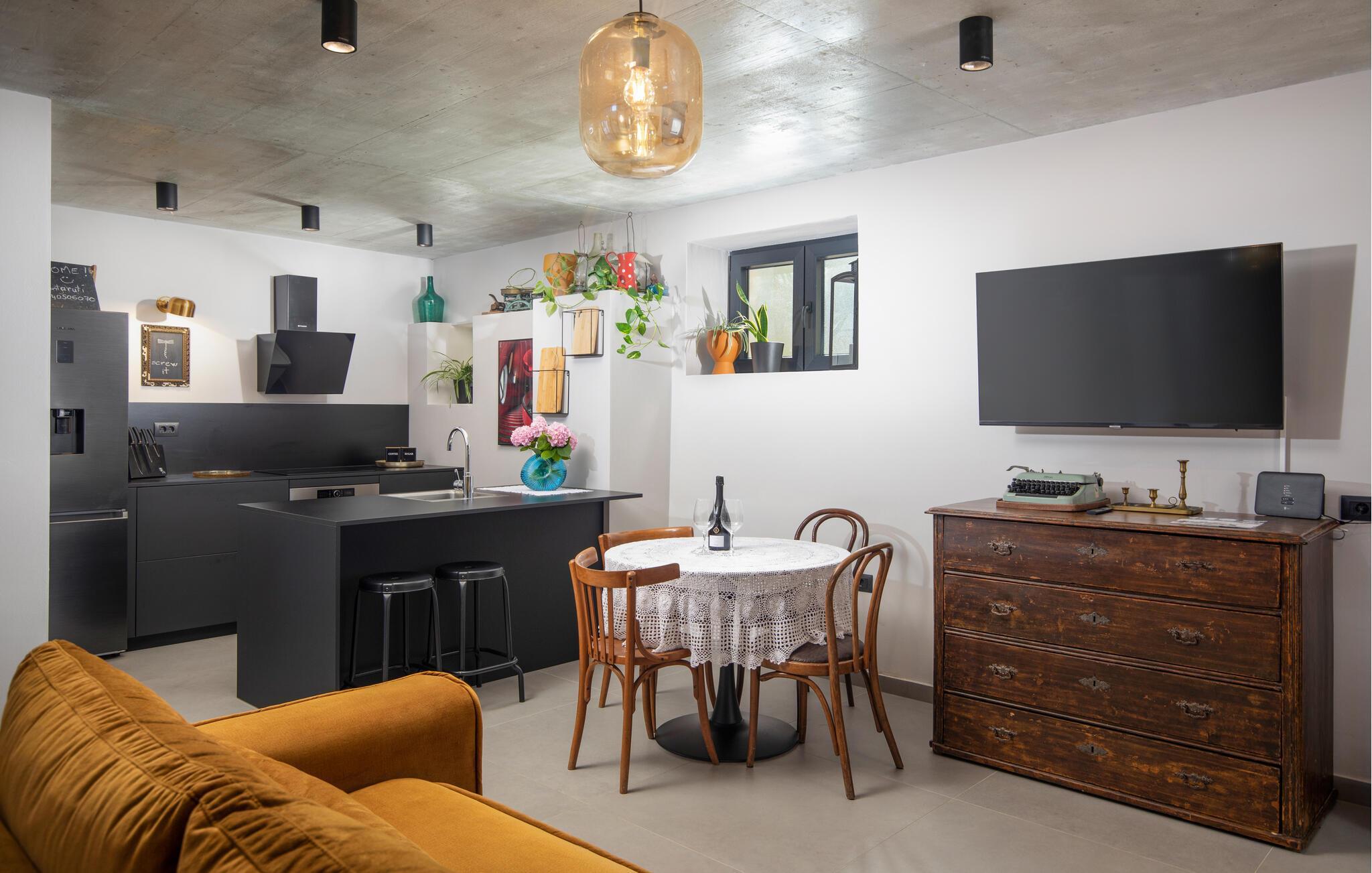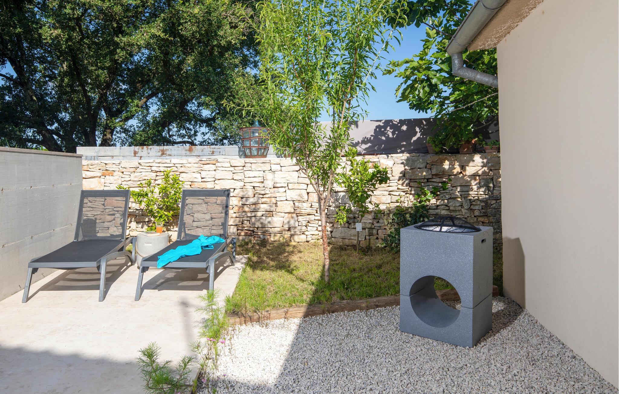 Villa Giorgio Jursici er en charmerende villa beliggende i det centrale Istrien. Trænger du til en ferie i et miljø af uberørt natur, så er Villa Giorgio Jursici noget for dig. Foran villaen er der en skøn 6 m2 pool. Køl af i poolen i sommervarmen eller slap af på liggestolene ved poolen og nyd den istriske sols stråler. Tag en lur i en hængekøje i det overdækkede område foran villaen. Tilbered traditionelle istriske retter på grillen til familie og venner. Tilbring uforglemmelige sammenkomster med tilberedte måltider ved bordet med 4 pladser foran villaen. I stueetagen af villaen er der et åbent rum med et veludstyret køkken og en spisestue med 6 sæder og det første badeværelse. På første sal er der et hyggeligt soveværelse med dobbeltseng og aircondition, der emmer af den istriske atmosfære. Udover soveværelset er der også en stue på denne etage, hvor du kan slappe af med en interessant film, og et badeværelse. Tilbring dine morgener på terrassen på første sal, mens du nyder en kop kaffe. Gå ikke glip af en afslappende ferie i Villa Giorgio Jursici og forkæl dig selv med charmen i den traditionelle istriske by Jursici. Villa Giorgio Juršici ligger i landsbyen Juršici i det centrale Istrien. I denne charmerende landsby vil du blive henrykt over den lokale befolkning og deres hjemmelavede produkter. Smag traditionel istrisk olivenolie og andre delikatesser. Tag et kig på kirken St. Frans af Assisi fra det 19. århundrede og besøg den traditionelle messe for det istriske æsel. Svetvincena vil fortrylle dig med renæssancepladsen "Placa" med Morosini-Grimani-slottet, symbolet på selve stedet. En vigtig del af Svetvincenas kulturarv er de bevarede rester af murfresker i kirken St. Vincent nær byens kirkegård og i kirken St. Catherine. Denne specielle by tiltrækker besøgende med interessante og varierede lokale begivenheder, hvoraf den mest fremtrædende er middelalderfestivalen, hvor du kan prøve dig i middelalderlege. Placeringen af villaen er et ideelt udgangspunkt for at udforske Istrien. Besøg de vigtigste turistcentre i Istrien: Rovinj, Porec, Labin, Pula. I Rovinj kan du se den barokke kirke St. Euphemia, mens du i Porec kan besøge den byzantinske Euphrasian Basilica, der er optaget på UNESCOs verdenskulturarvsliste. Gå ikke glip af at besøge den største istriske by Pula, hvor du kan se Pula Arena, Augustus-templet, Den Gyldne Port og mange andre kulturelle og historiske monumenter. Udforsk endelig Brijuni-øgruppen med den berømte Brijuni Nationalpark.