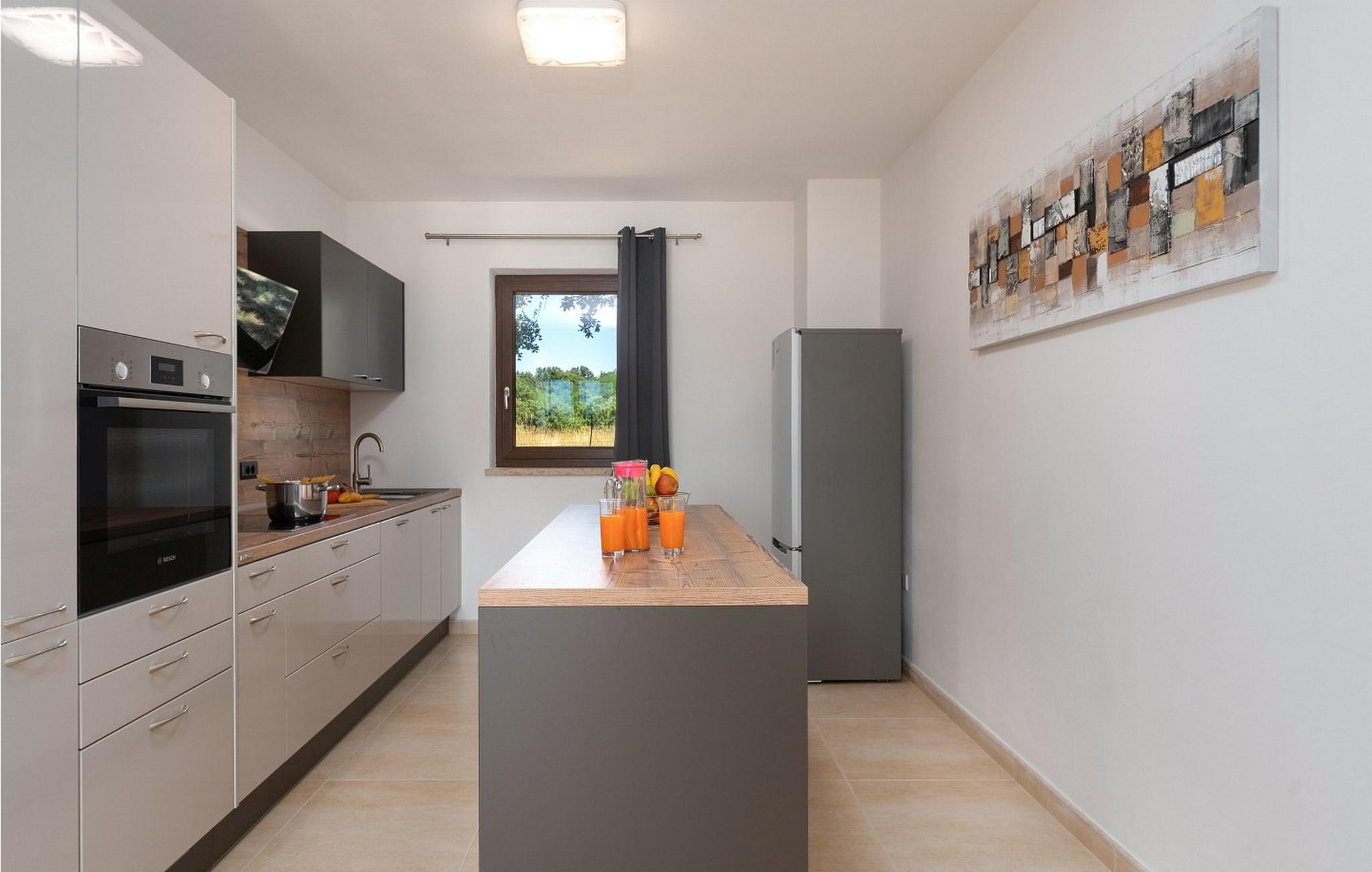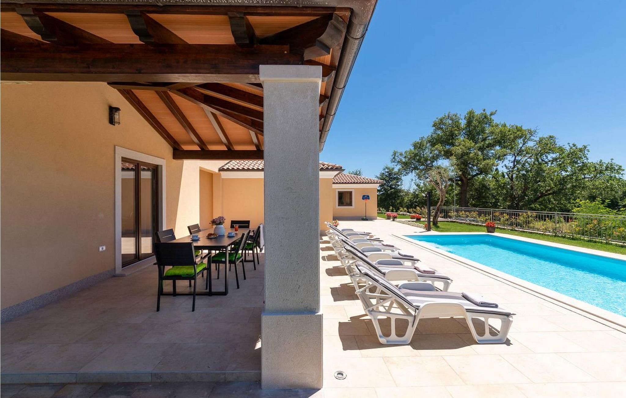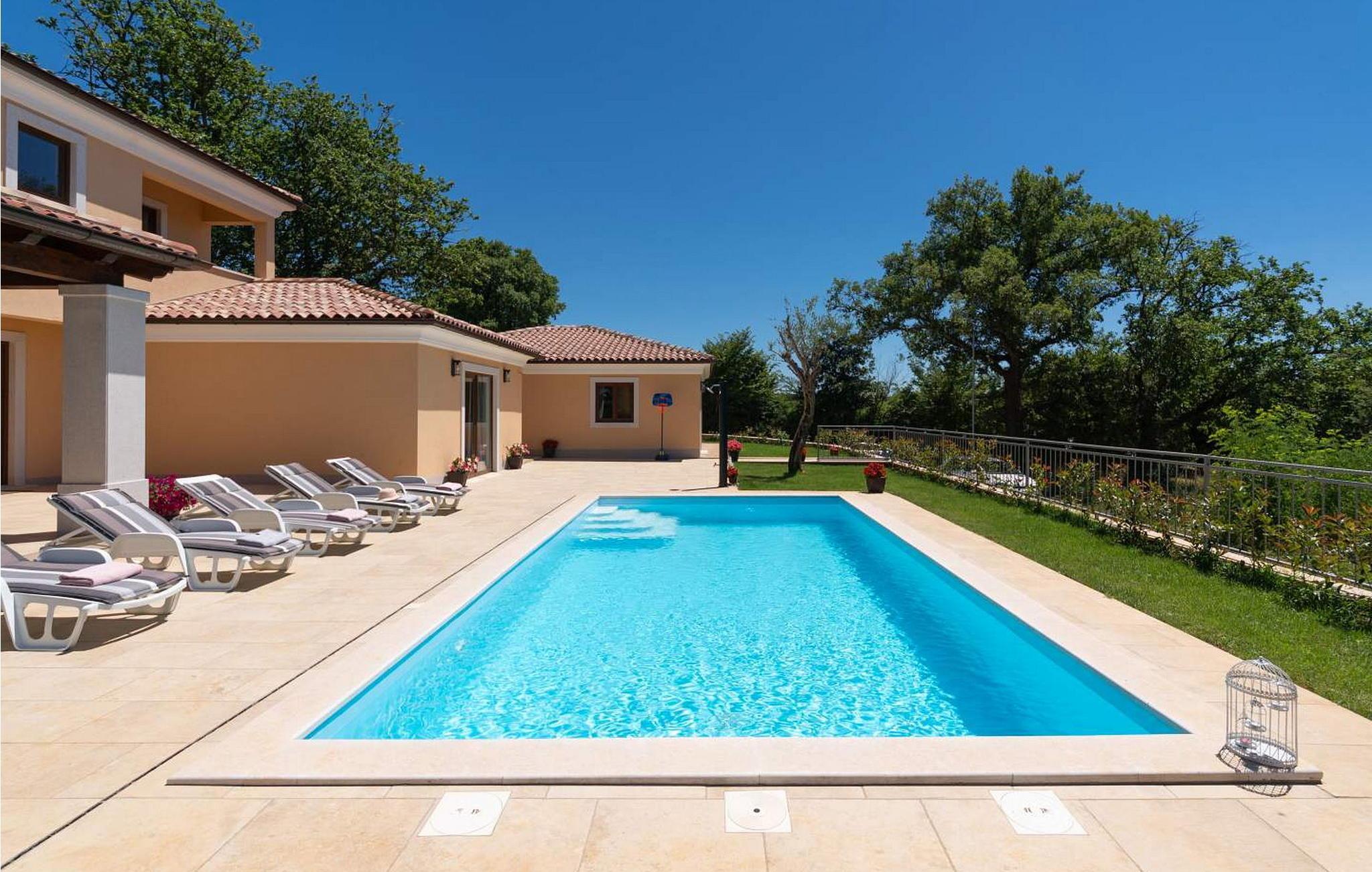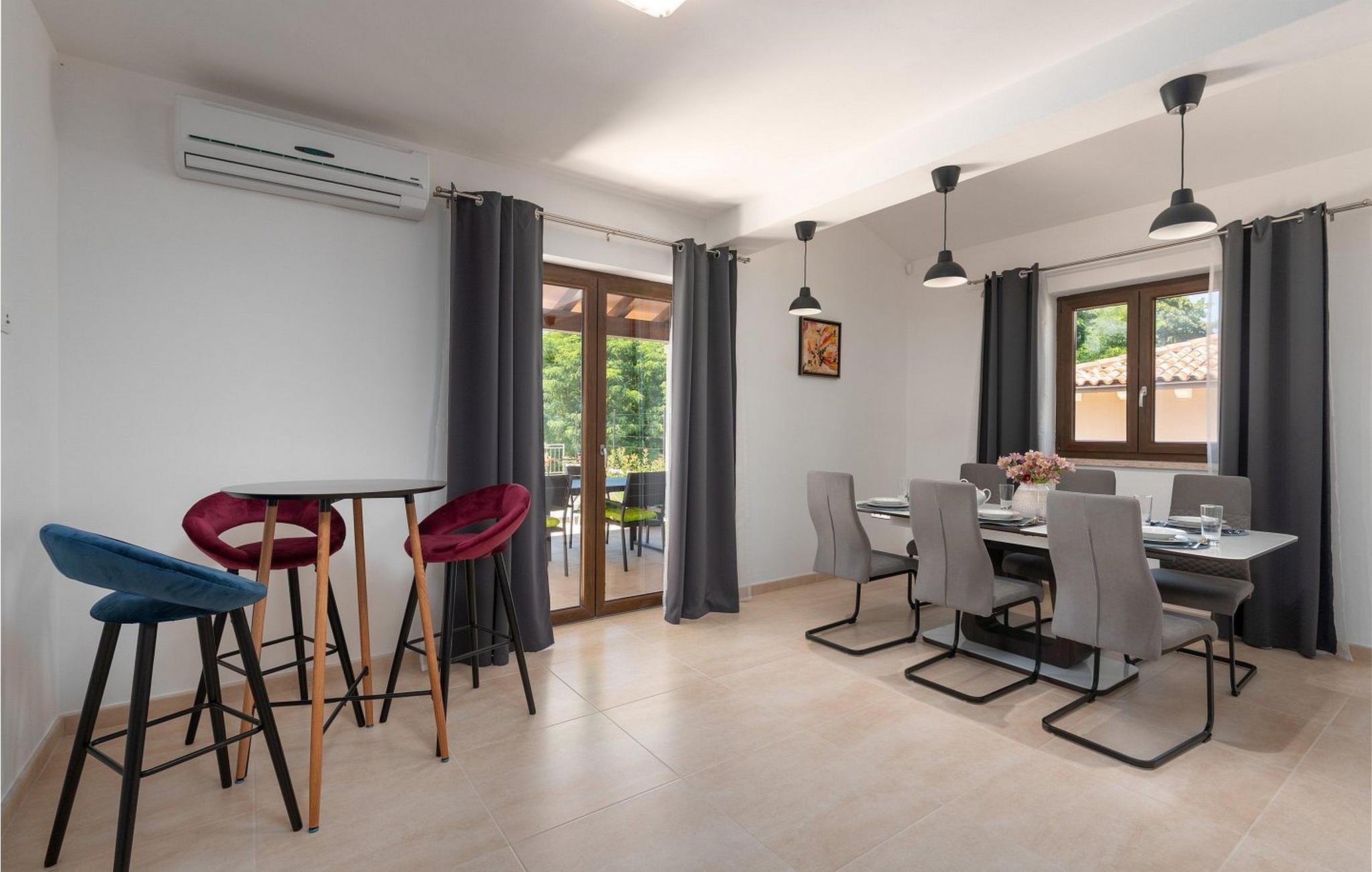 Velkommen til Villa Re, en nybygget oase i det centrale Istrien, kun en kort køretur fra den charmerende by Rovinj. Beliggende på en rummelig indhegnet grund på 800 m², har denne villa en velholdt græsplæne, en funklende pool til forfriskende dukkert og en overdækket terrasse, hvor du kan nyde dine måltider ved spisebordet. Sommerkøkkenet er perfekt til at tilberede lækre festmåltider og der er to parkeringspladser til rådighed. I den charmerende landsby Svetvincenat finder du caféer, et pizzeria og et supermarked til dine daglige behov, mens den nærmeste strand kun ligger 17 km væk. Rovinj, med sin maleriske gamle bydel og betagende kystudsigt, er et must-see under dit ophold. Villa Re er det ideelle tilflugtssted for en uforglemmelig og afslappende ferie.