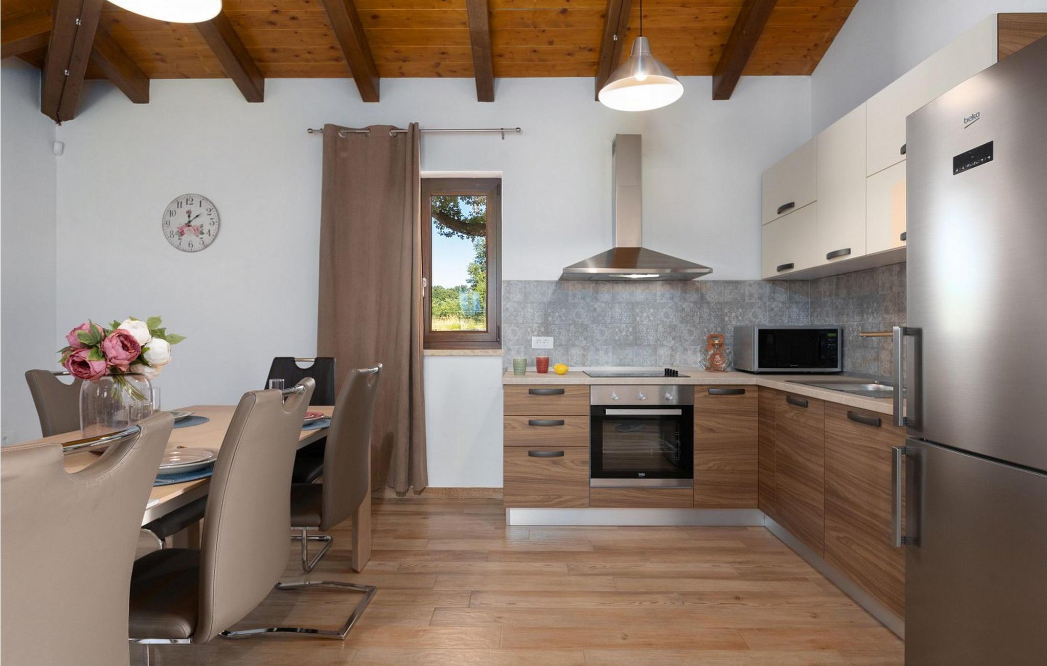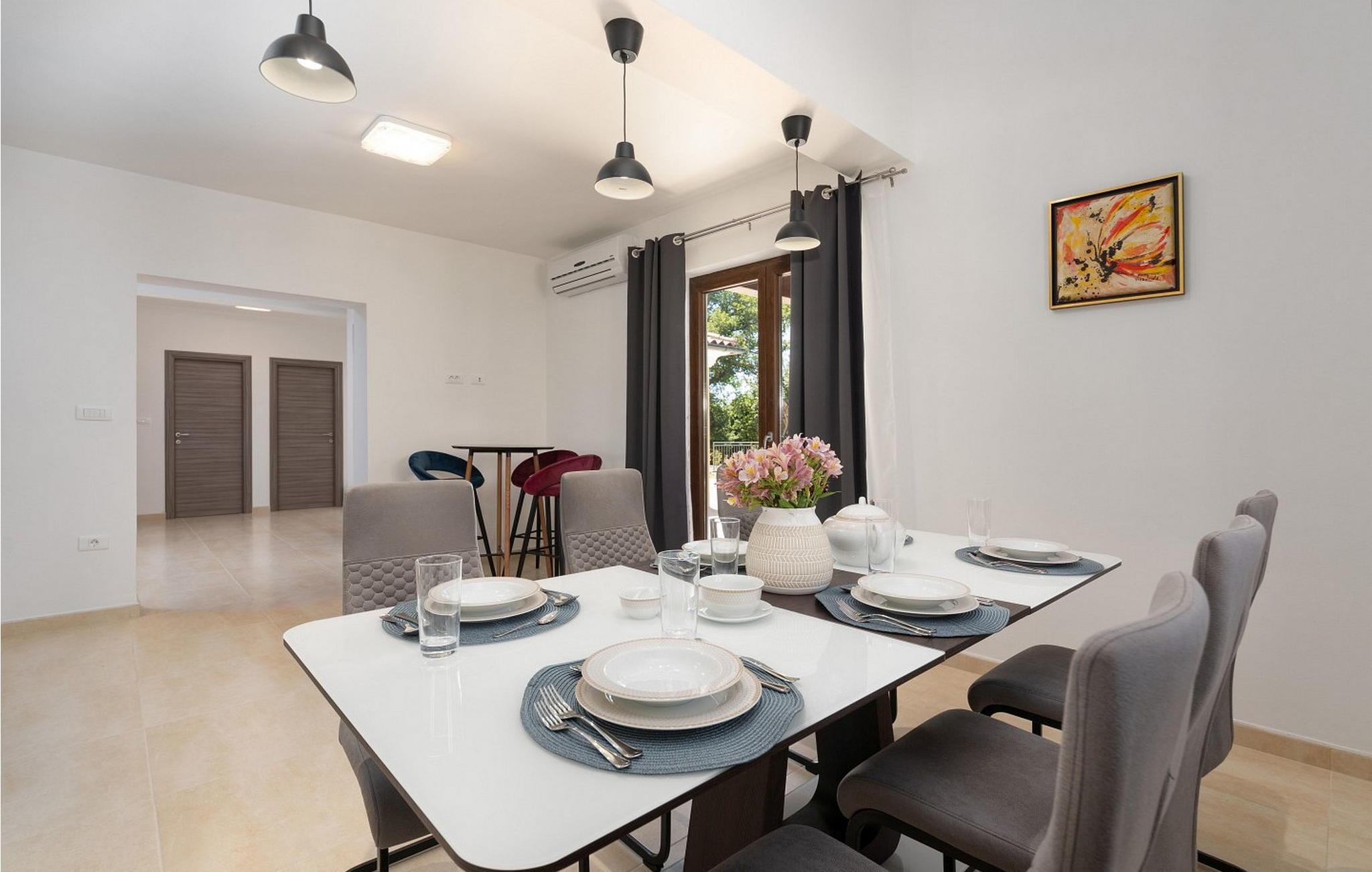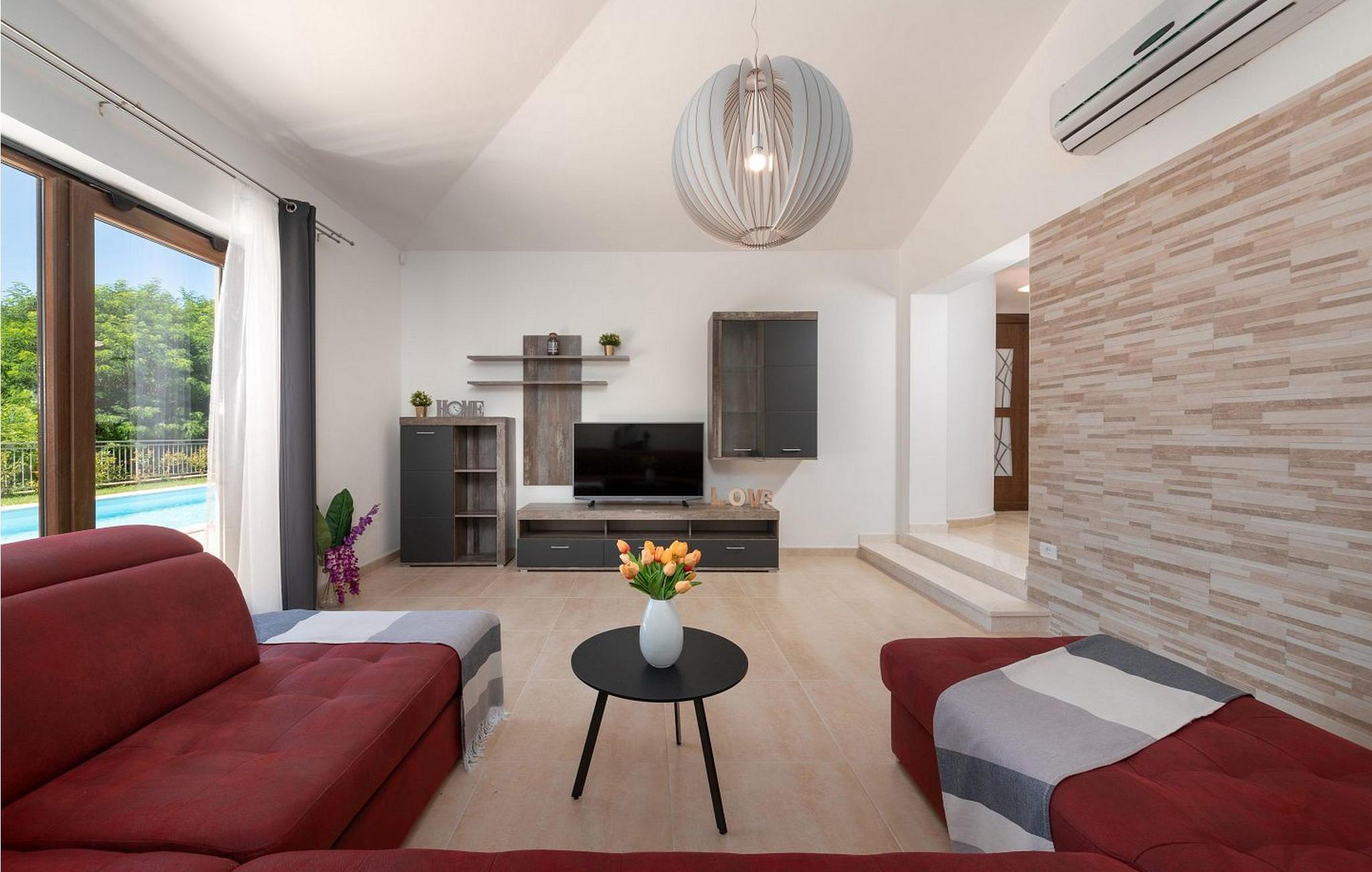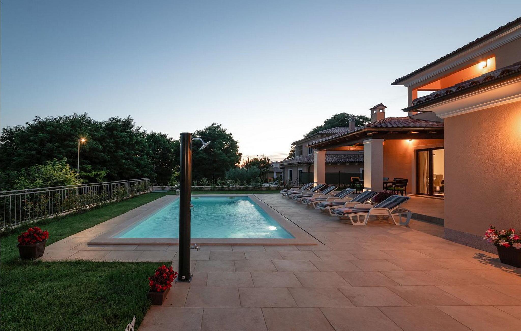 Velkommen til Villa Re, en nybygget oase i det centrale Istrien, kun en kort køretur fra den charmerende by Rovinj. Beliggende på en rummelig indhegnet grund på 800 m², har denne villa en velholdt græsplæne, en funklende pool til forfriskende dukkert og en overdækket terrasse, hvor du kan nyde dine måltider ved spisebordet. Sommerkøkkenet er perfekt til at tilberede lækre festmåltider og der er to parkeringspladser til rådighed. I den charmerende landsby Svetvincenat finder du caféer, et pizzeria og et supermarked til dine daglige behov, mens den nærmeste strand kun ligger 17 km væk. Rovinj, med sin maleriske gamle bydel og betagende kystudsigt, er et must-see under dit ophold. Villa Re er det ideelle tilflugtssted for en uforglemmelig og afslappende ferie.