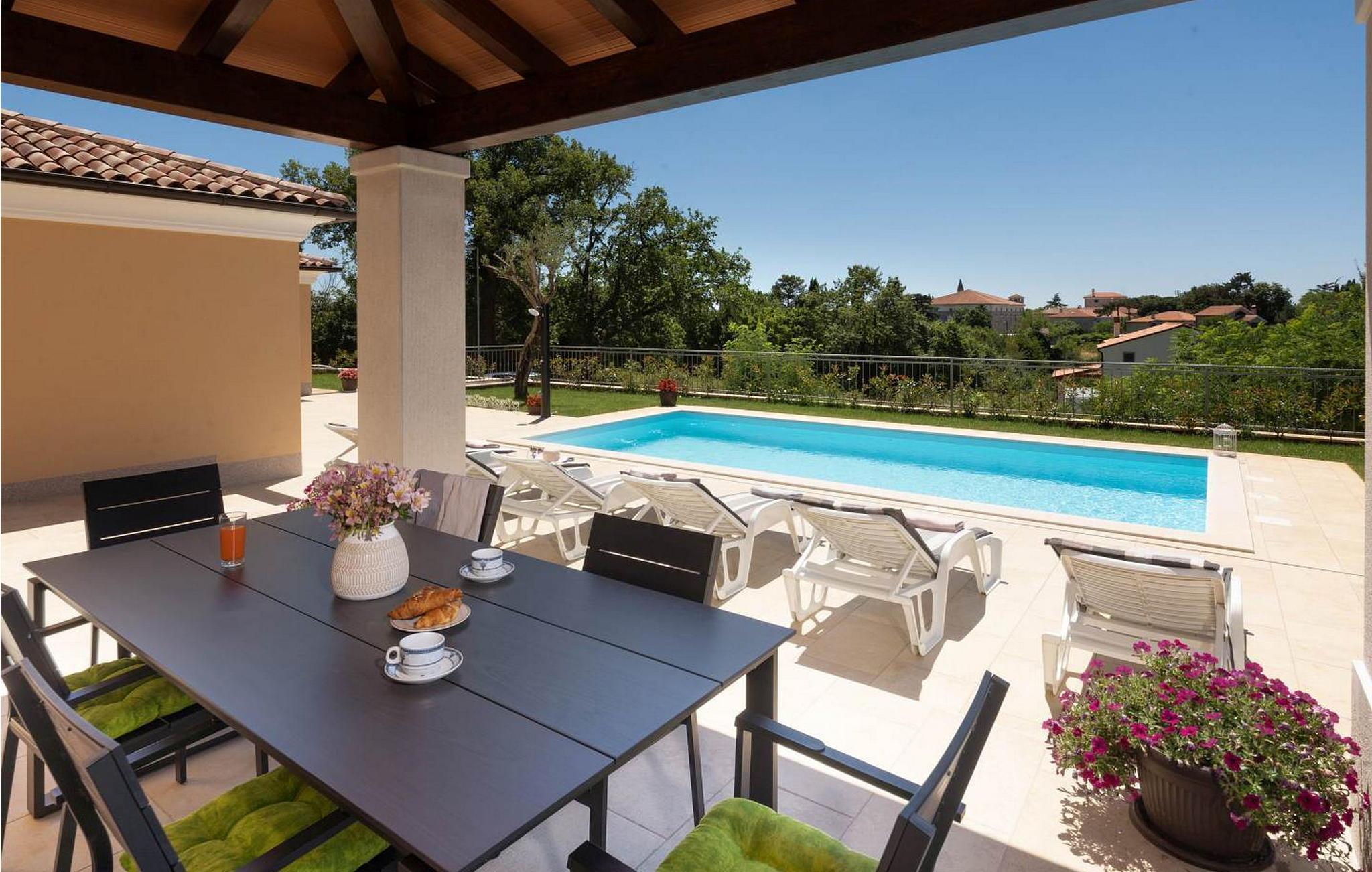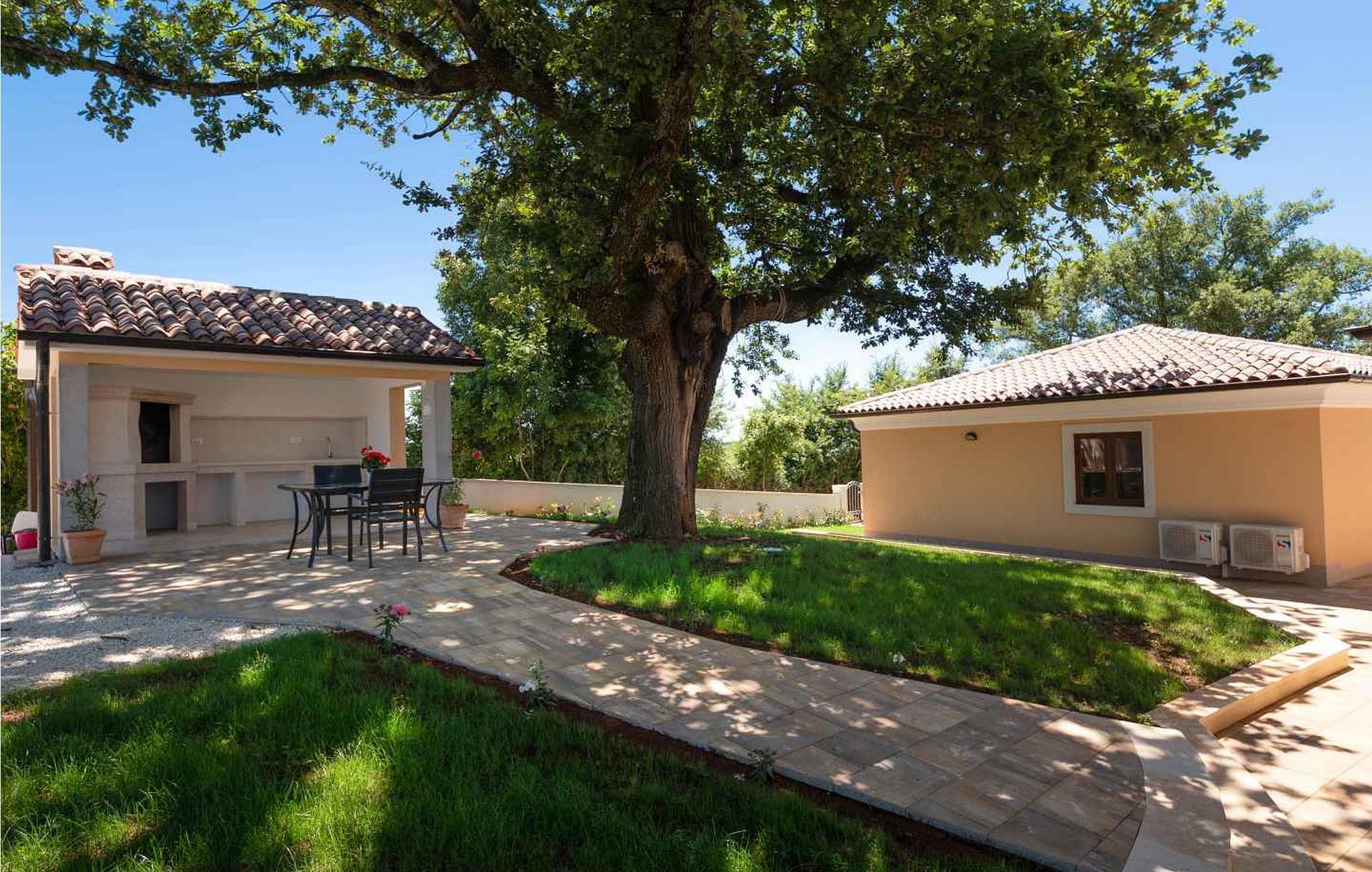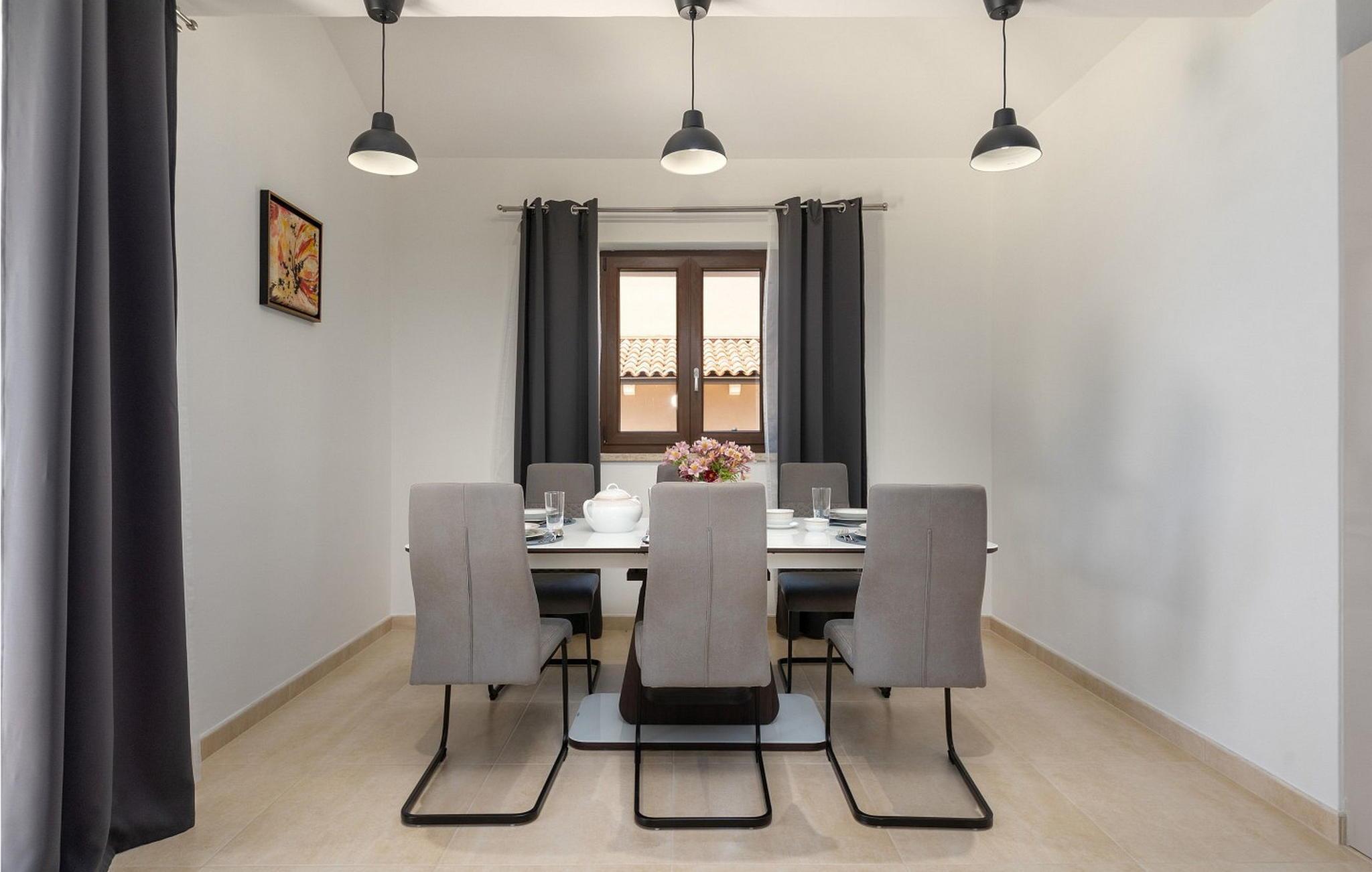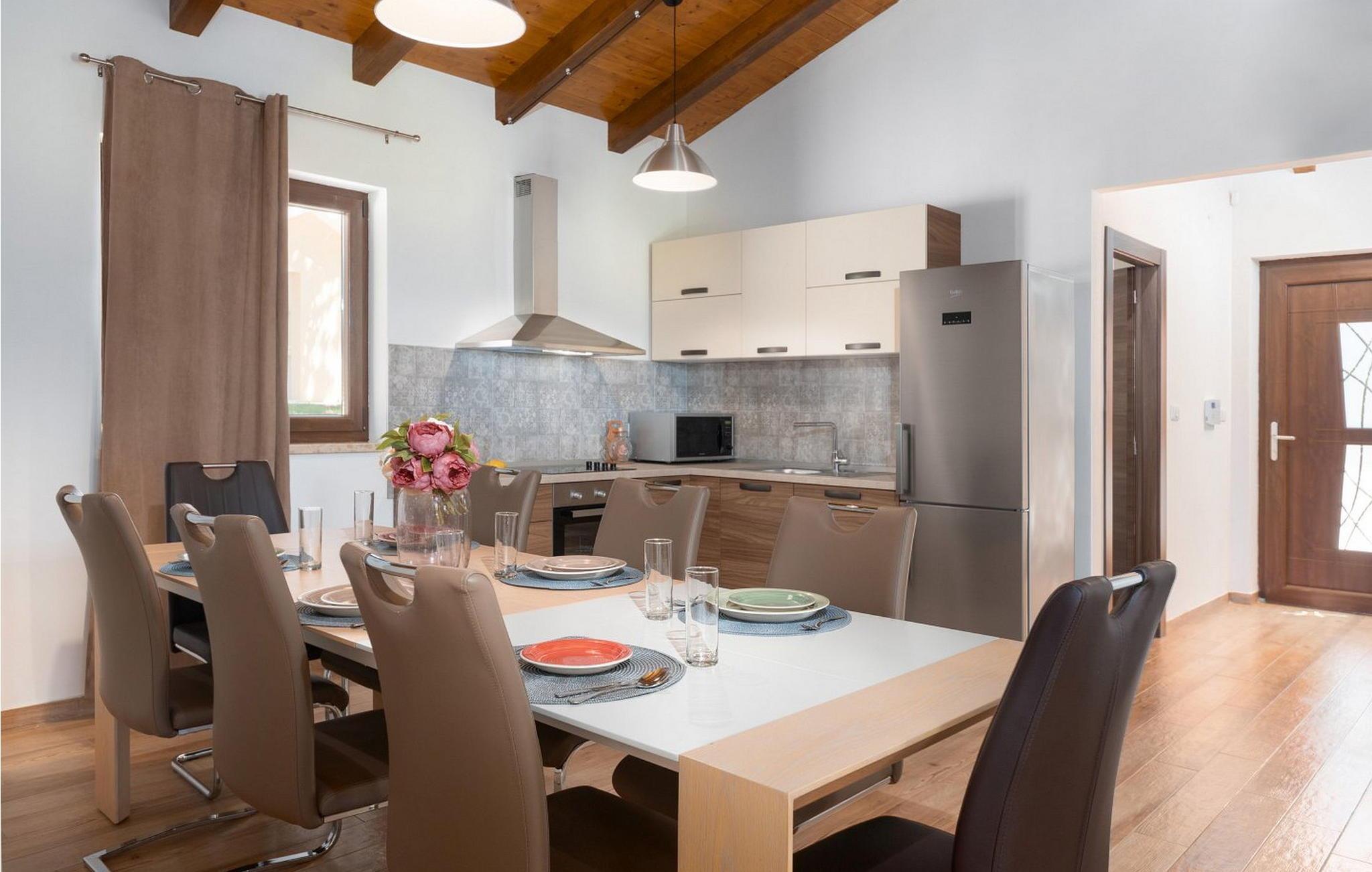 Velkommen til Villa Re, en nybygget oase i det centrale Istrien, kun en kort køretur fra den charmerende by Rovinj. Beliggende på en rummelig indhegnet grund på 800 m², har denne villa en velholdt græsplæne, en funklende pool til forfriskende dukkert og en overdækket terrasse, hvor du kan nyde dine måltider ved spisebordet. Sommerkøkkenet er perfekt til at tilberede lækre festmåltider og der er to parkeringspladser til rådighed. I den charmerende landsby Svetvincenat finder du caféer, et pizzeria og et supermarked til dine daglige behov, mens den nærmeste strand kun ligger 17 km væk. Rovinj, med sin maleriske gamle bydel og betagende kystudsigt, er et must-see under dit ophold. Villa Re er det ideelle tilflugtssted for en uforglemmelig og afslappende ferie.
