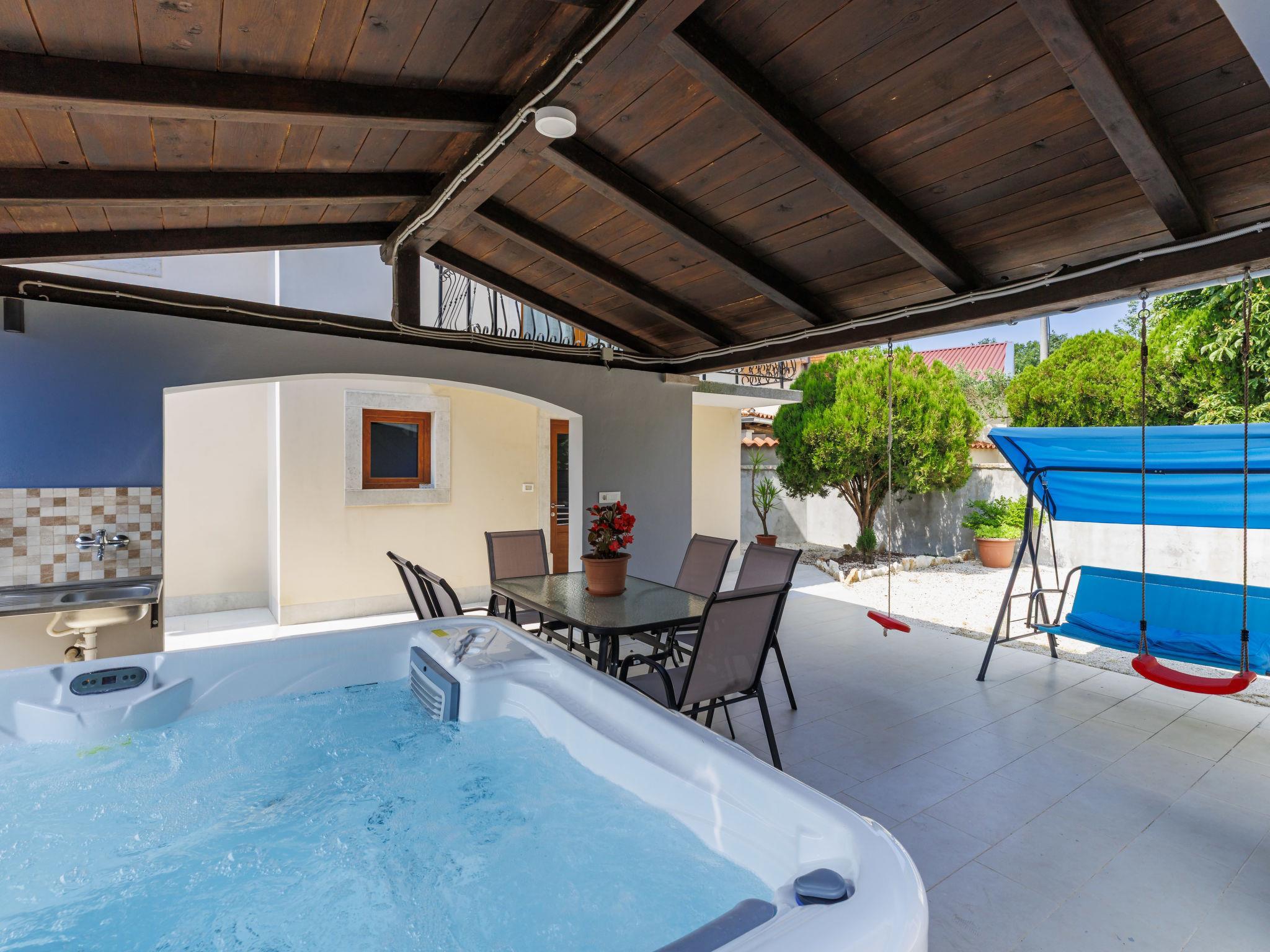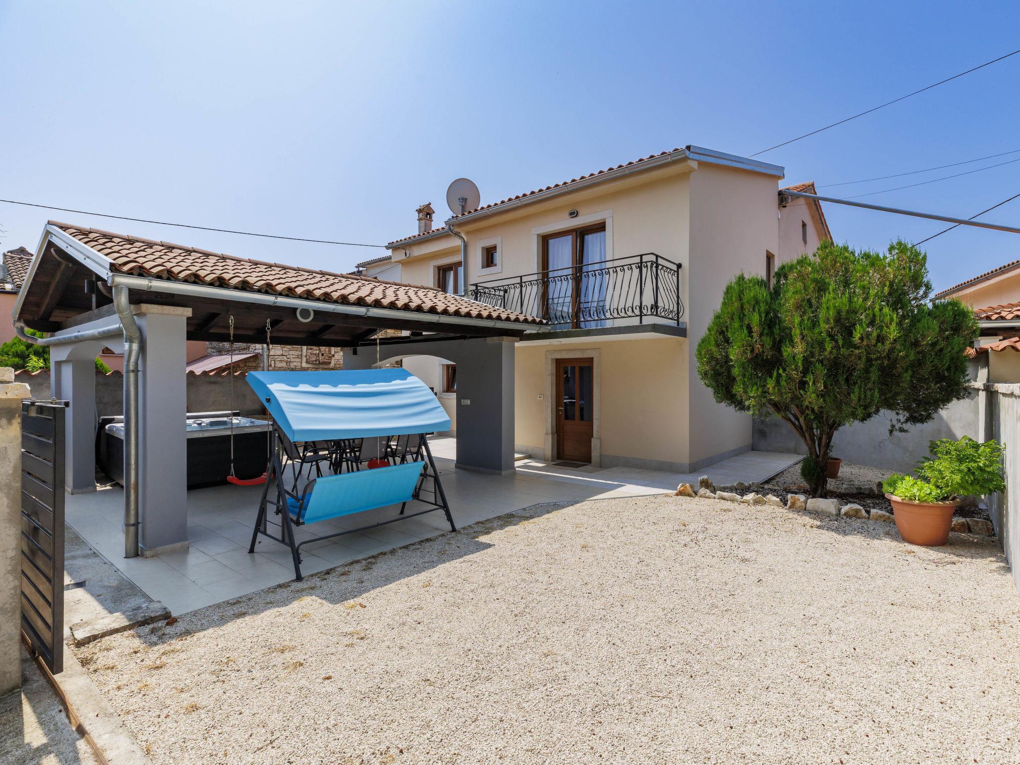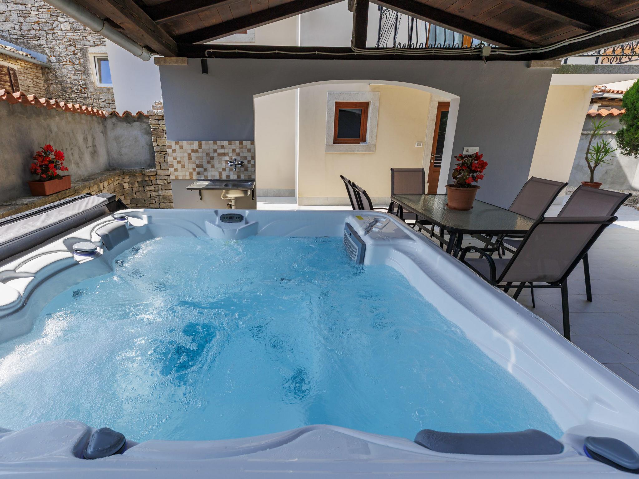 Semi-detached house "Mauro", 2 storeys. In the hamlet Bricanci 1 km from the centre of Svetvincenat, in a quiet, sunny position, 15 km from the sea. Private: property 70 m2 (fenced), small garden with flowers. Hot tub, terrace (15 m2), garden furniture, barbecue, pool maintenance by the owner/gardener. In the house: internet access, washing machine. Parking at the house on the premises. Shop 1 km, restaurant 50 m, bus stop 1 km, pebble beach 15 km, rocky beach 15 km. Walking paths from the house 200 m, cycle lane 250 m.