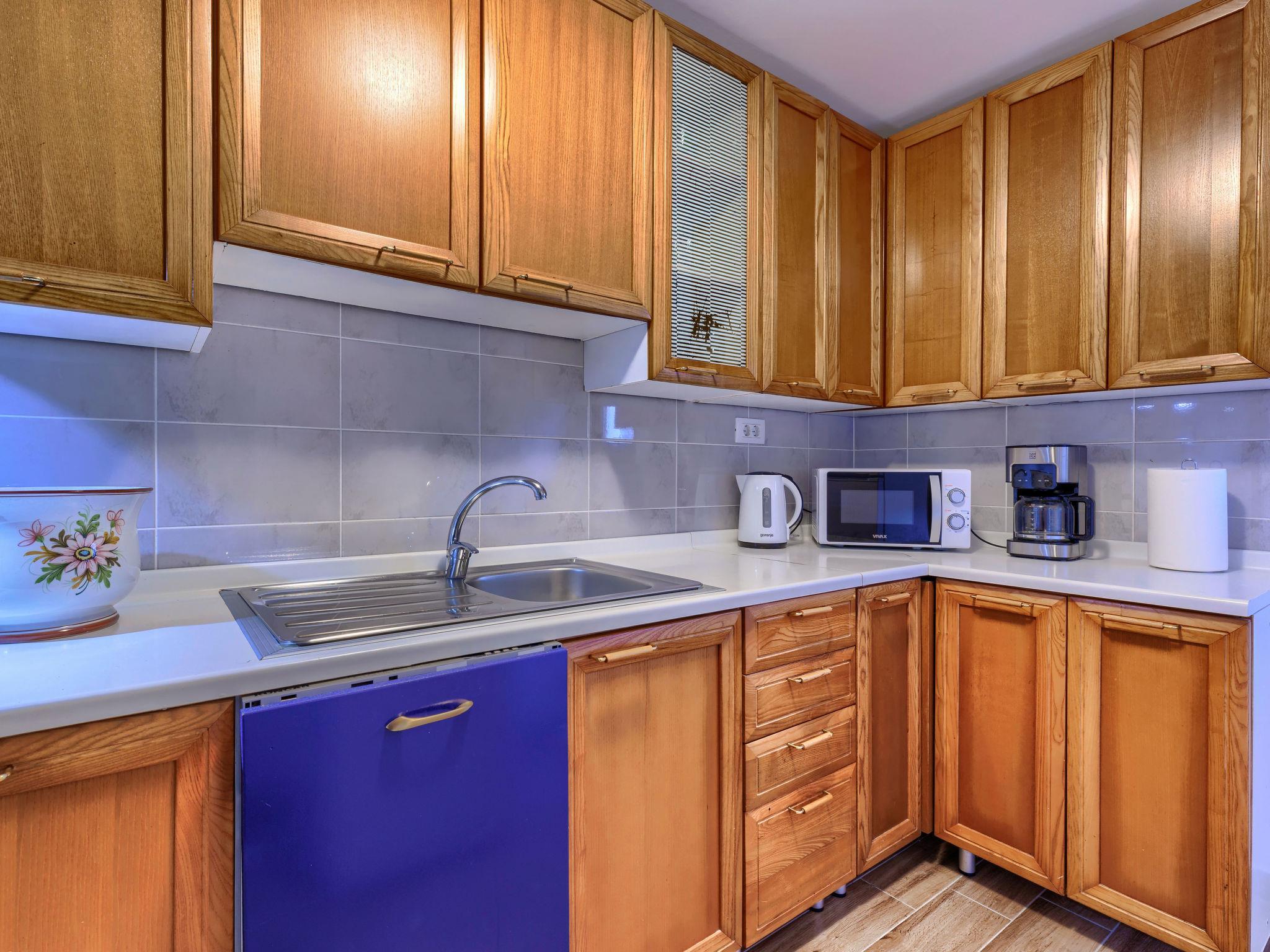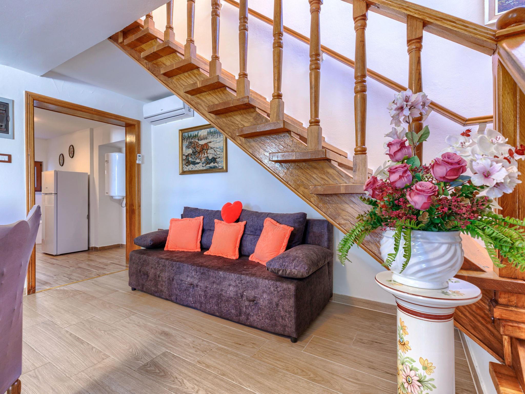 3-room semi-detached house 70 m2 on 2 levels. Living/dining room with 1 sofabed (140 cm, length 200 cm), satellite TV (flat screen), air conditioning. Exit to the terrace. Open kitchen (oven, dishwasher, 4 ceramic glass hob hotplates, kettle, microwave, freezer, electric coffee machine). Shower/WC. Upper floor: entrance hall with air conditioning. 1 room with 1 french bed (180 cm, length 200 cm), shower/WC. Exit to the balcony. 1 room with 1 french bed (180 cm, length 200 cm). Balcony 5 m2. Facilities: Internet (WiFi, free). Maximum 2 pets/ dogs allowed.