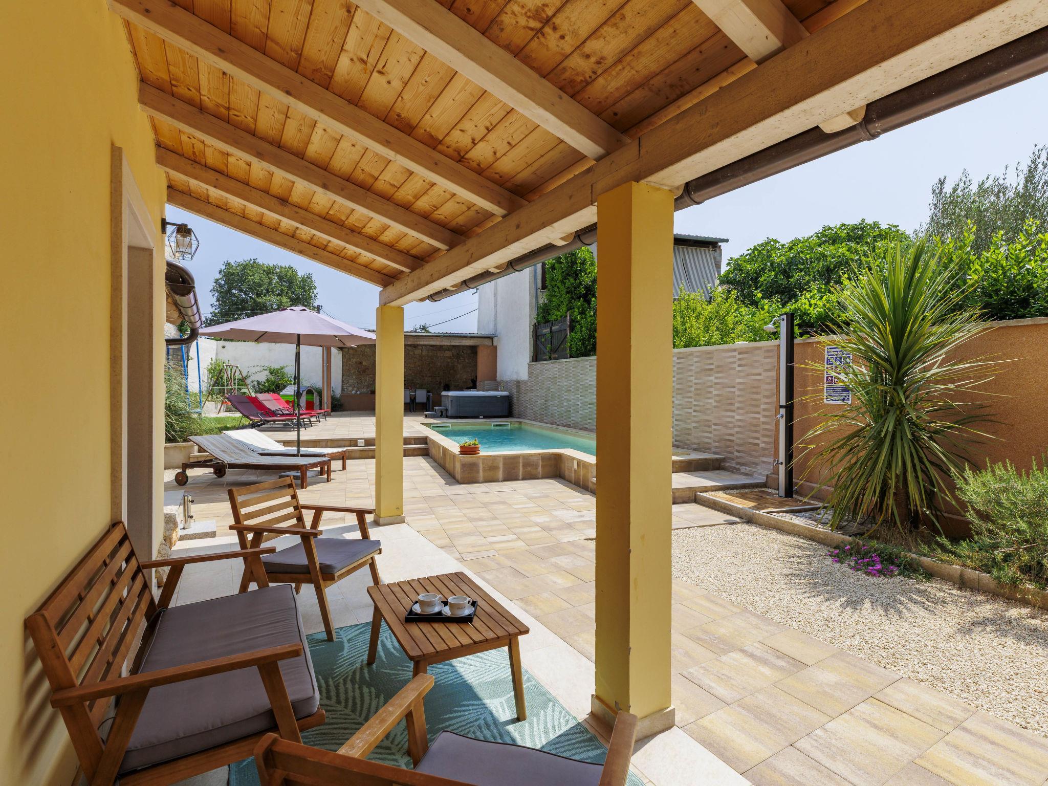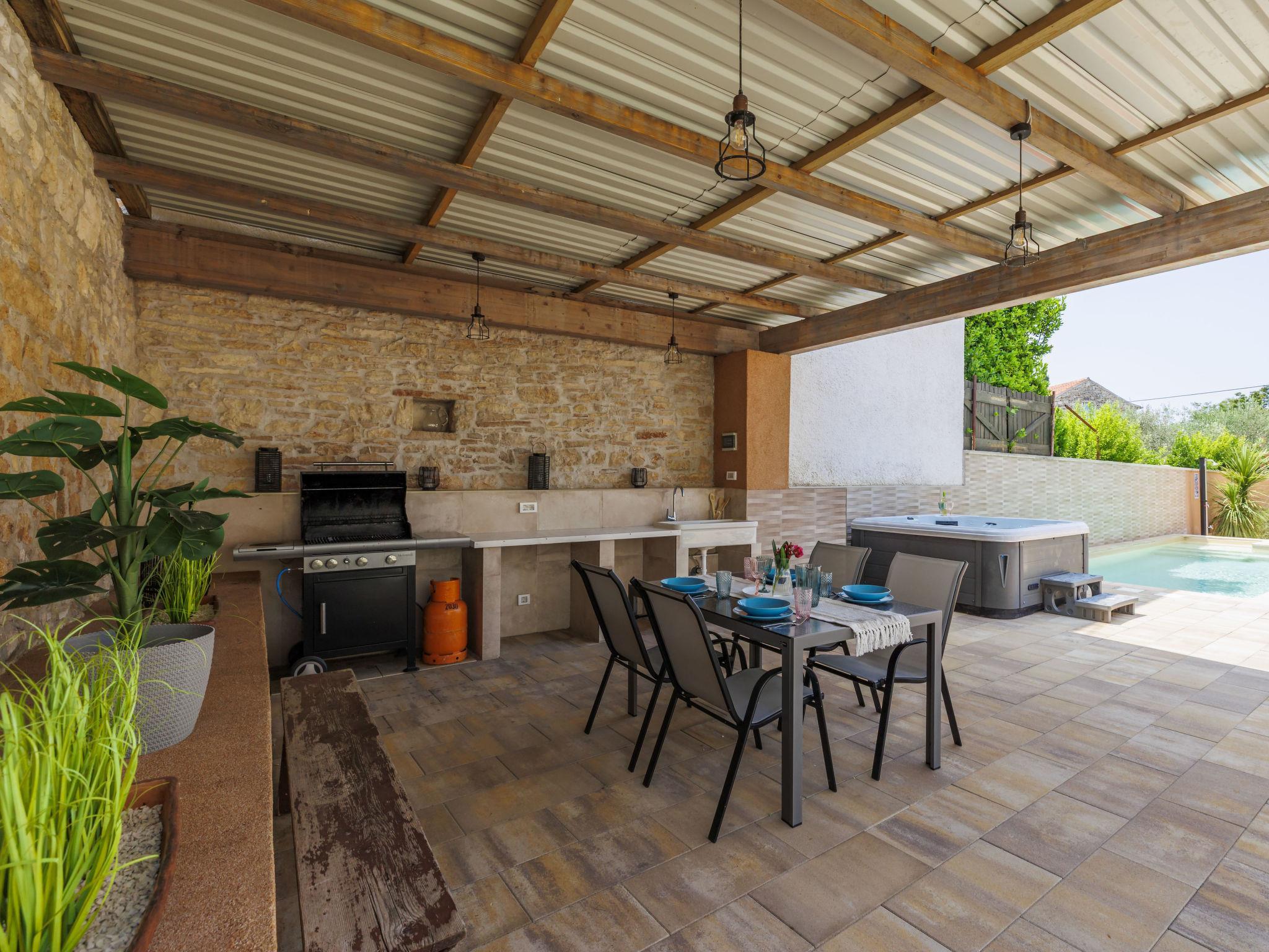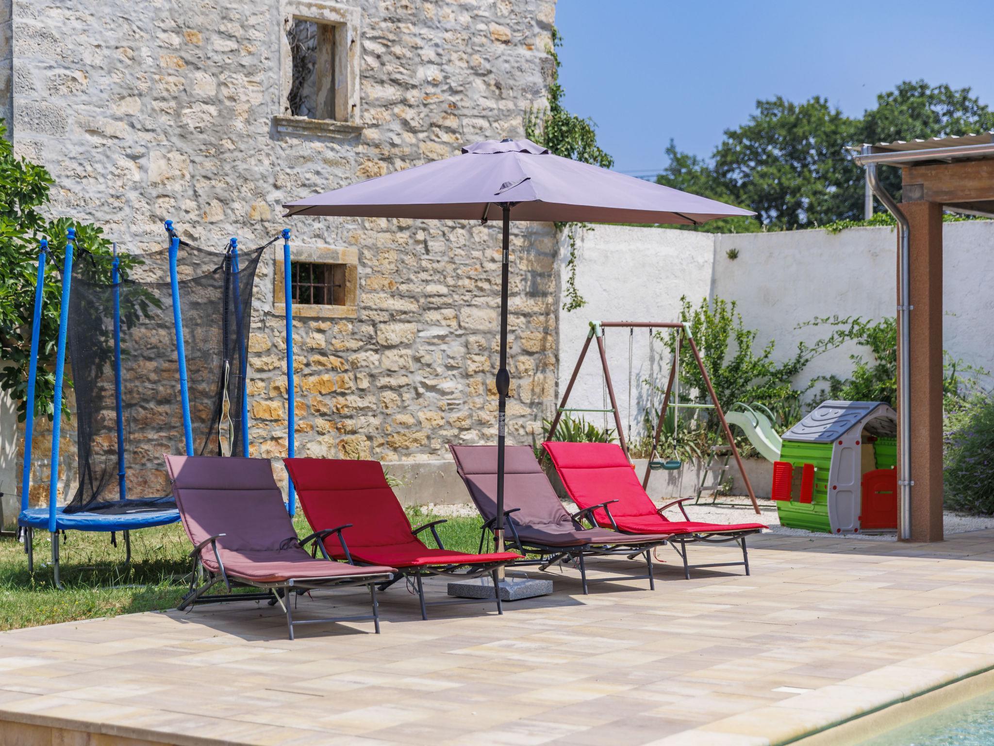 Škicini 9 km from Svetvincenat: Cosy single-family house "Bella", 2 storeys, renovated in 2020. In a sunny position, 10 km from the sea, 10 km from the beach. Private: property 500 m2 (fenced), swimming pool angular (7 x 4 m, depth 140 cm, seasonal availability: 15.Apr. - 01.Nov.) with internal staircase. Outdoor shower, hot tub, table tennis, terrace (25 m2), garden furniture, barbecue (swing). In the house: internet access, trampoline. Parking at the house on the premises. Shop 1 km, supermarket 6 km, restaurant 700 m, café 1 km, bus stop 1 km, pebble beach 10 km, rocky beach 10 km. Object suitable for 4 adults + 2 children. Please note: airfield close by 14 km from the property. Swimming pool heated (extra). It is necessary to announce 7 days in advance if the pool heating is required.