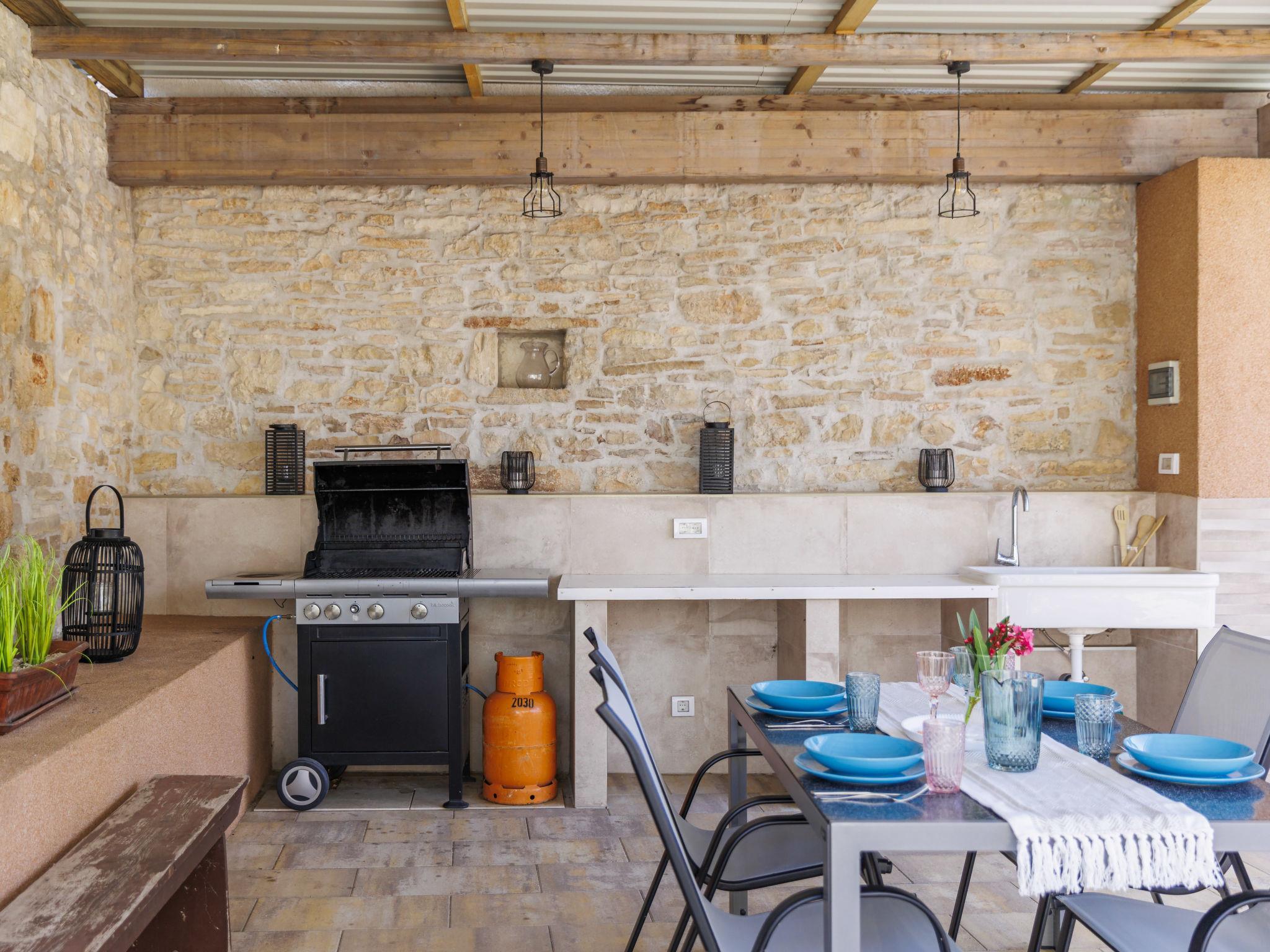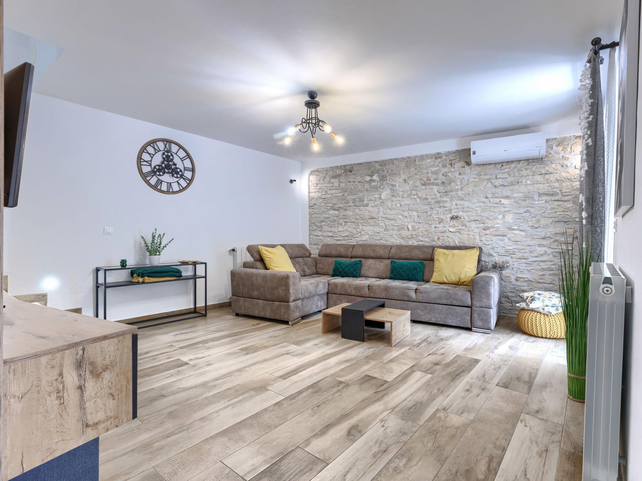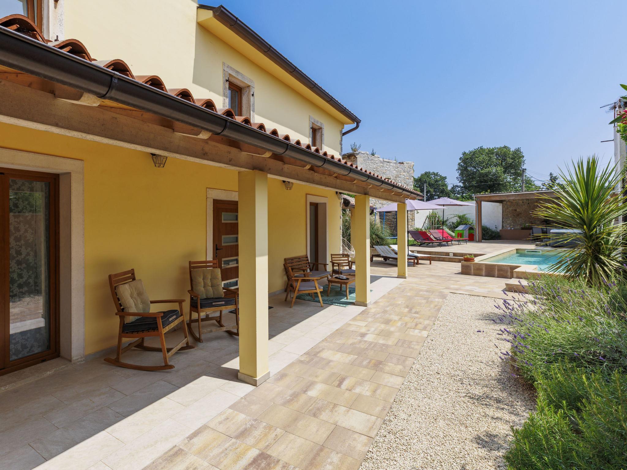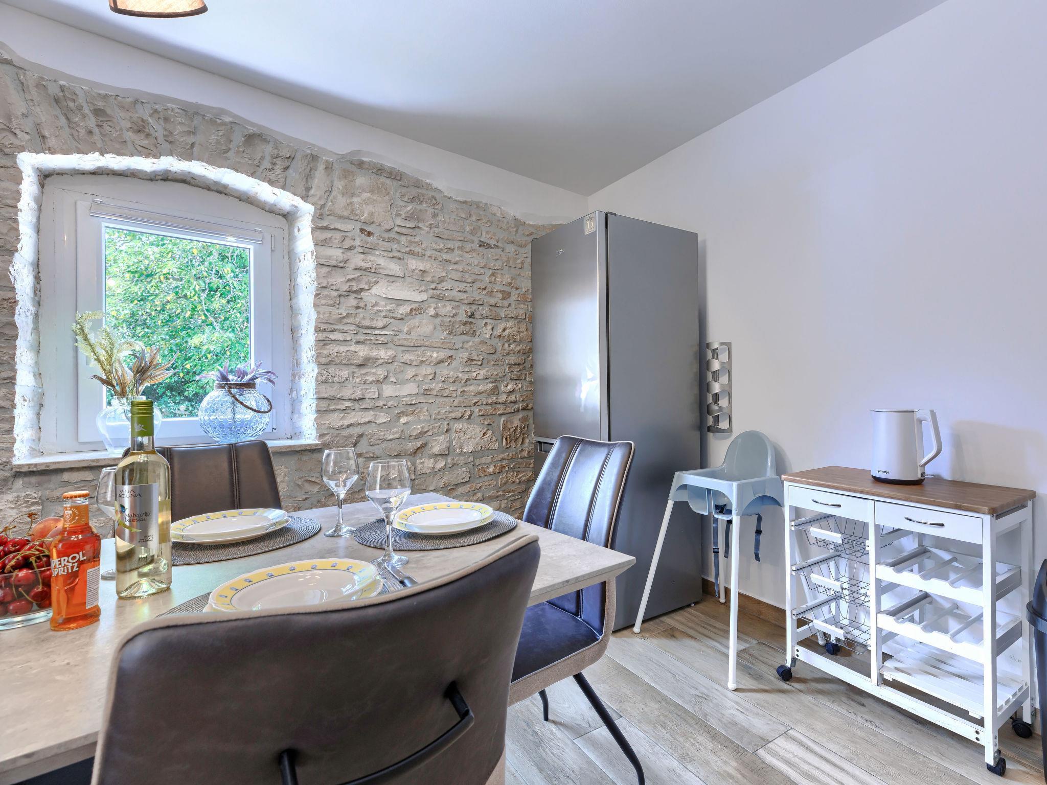 Škicini 9 km from Svetvincenat: Cosy single-family house "Bella", 2 storeys, renovated in 2020. In a sunny position, 10 km from the sea, 10 km from the beach. Private: property 500 m2 (fenced), swimming pool angular (7 x 4 m, depth 140 cm, seasonal availability: 15.Apr. - 01.Nov.) with internal staircase. Outdoor shower, hot tub, table tennis, terrace (25 m2), garden furniture, barbecue (swing). In the house: internet access, trampoline. Parking at the house on the premises. Shop 1 km, supermarket 6 km, restaurant 700 m, café 1 km, bus stop 1 km, pebble beach 10 km, rocky beach 10 km. Object suitable for 4 adults + 2 children. Please note: airfield close by 14 km from the property. Swimming pool heated (extra). It is necessary to announce 7 days in advance if the pool heating is required.