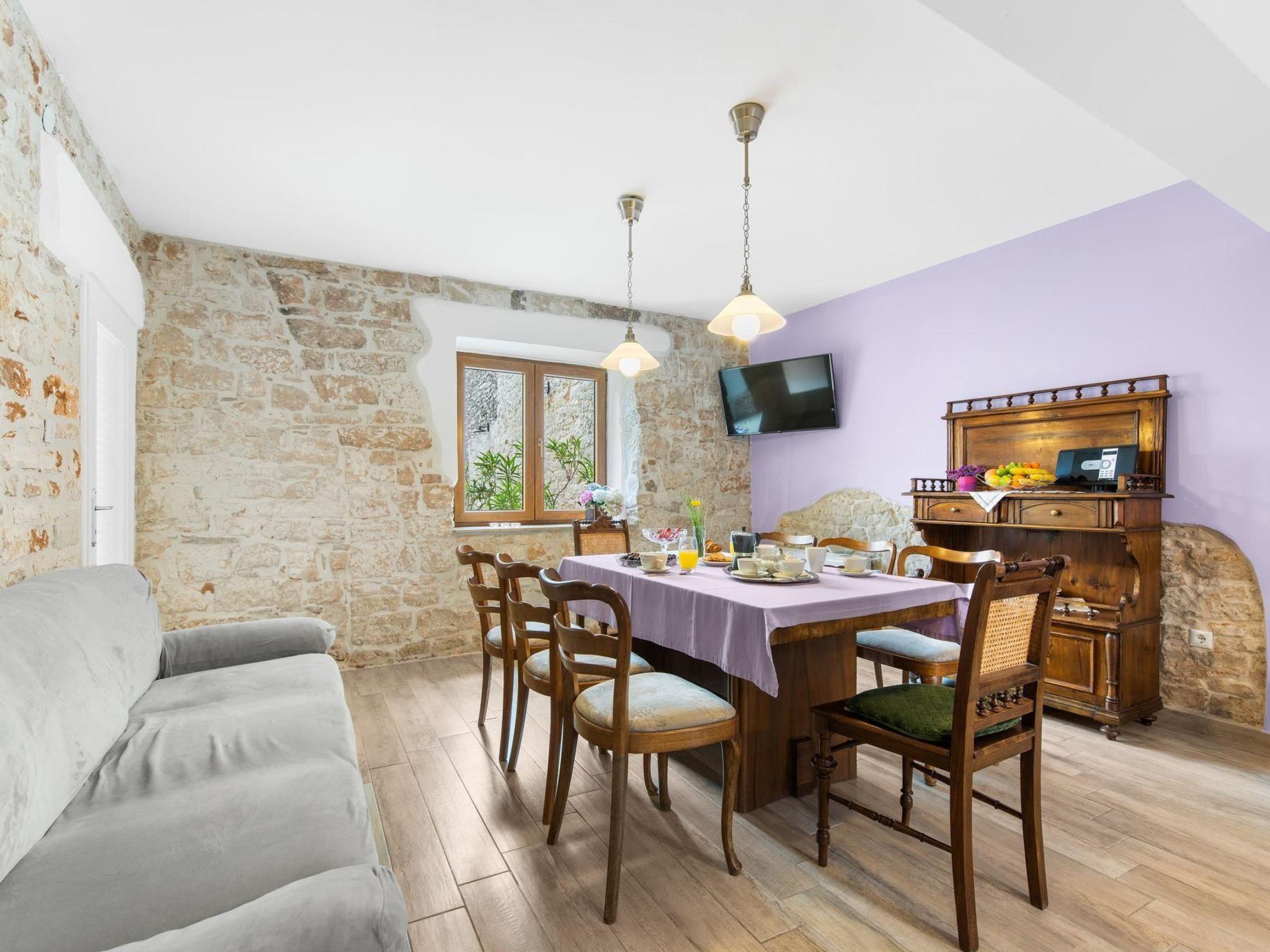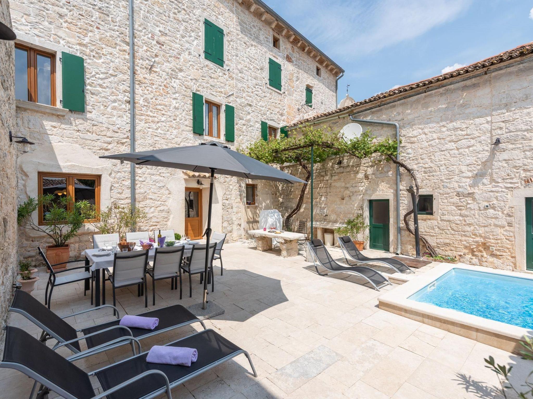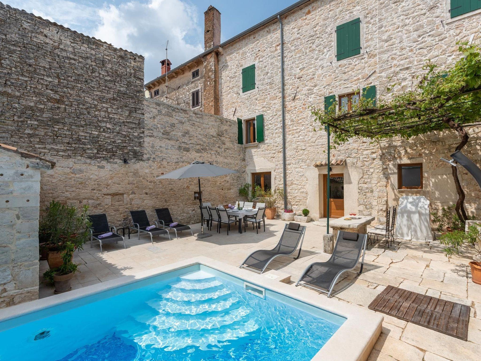 Traditional Istrian house located on the main square of the renaissance little town St. Vincenat.St. Vincenat (Svetvincenat) is fascinating town located in the south of the central Istria, fast growing Croatian region. Due to the attractive historical locations in the open air, it is known as a host of many interesting events, local fairs, performances... like etno-jazz festival, festival of dances and non-verbal theater..This house has a direct view to the square and grand medieval Grimani Castle.