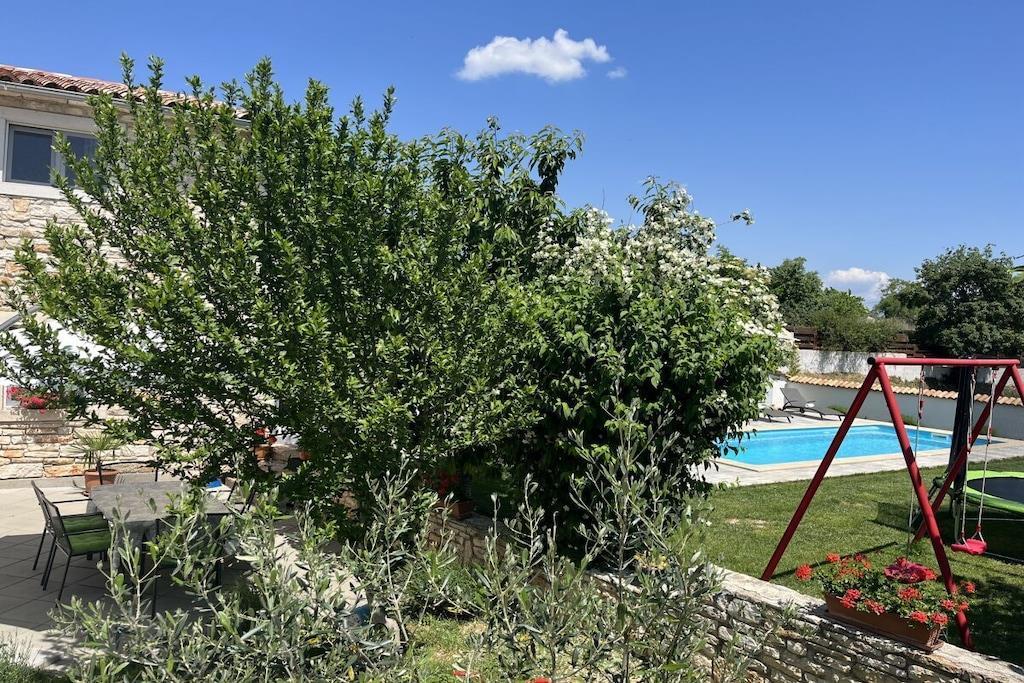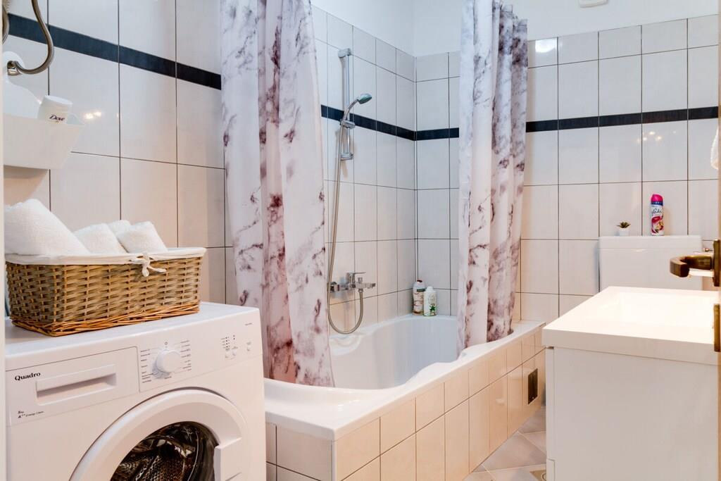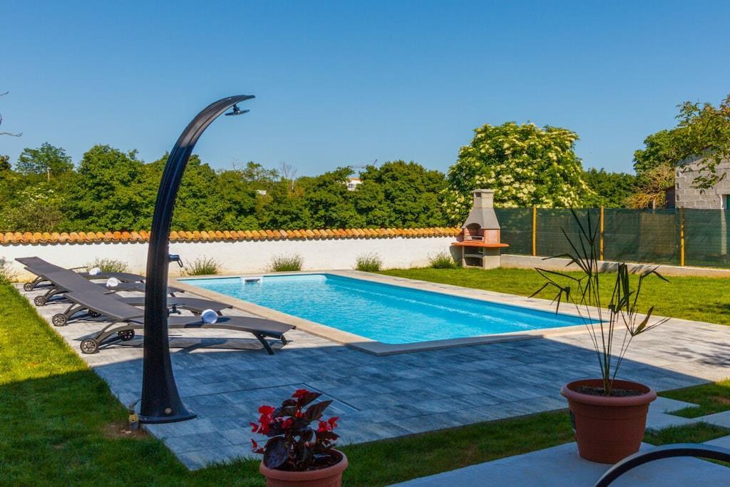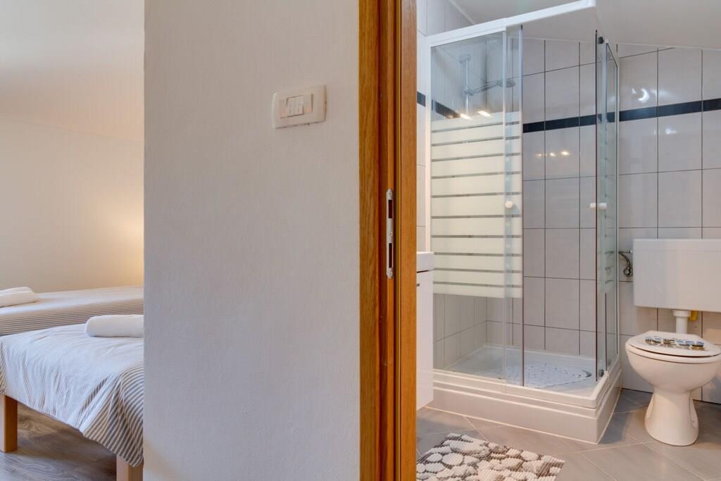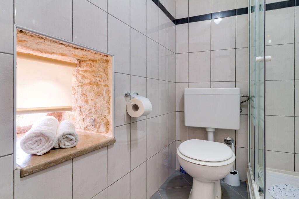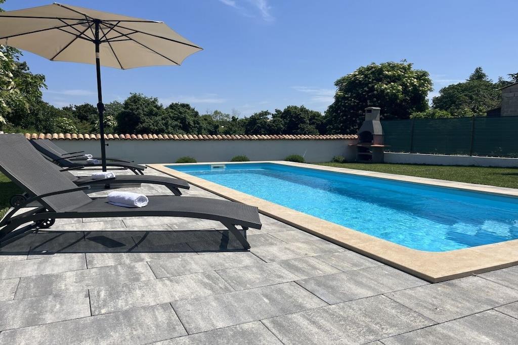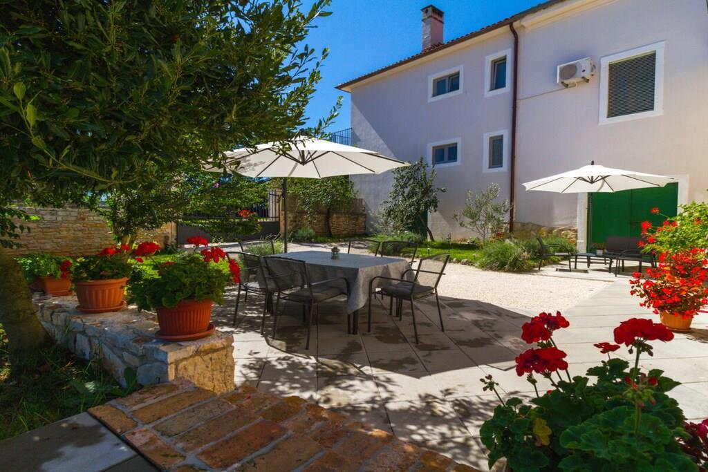 Das Haus mit einer Fläche von 110m² und mit 2 Etagen. Wenn Sie in das Haus eintreten, befindet sich auf der linken Seite ein Wohnzimmer mit einem Sofa, großem SAT-TV und Klimaanlage. Auf der rechten Seite ist eine schöne und komfortable Küche mit einem Tisch und Stühlen für Mahlzeiten. Die Küche ist komplett ausgestattet. Über eine runde Holztreppe gelangt man in den ersten Stock des Hauses, wo sich ein Schlafzimmer mit einem Doppelbett und einem Badezimmer mit Dusche und ein Schlafzimmer mit zwei Einzelbetten und einem Badezimmer mit Dusche befinden. Im Haus gibt es eine WiFi-Internetverbindung und vor dem Haus einen Parkplatz für ein Auto. Im Garten gibt es ein Volleyballnetz und einen Tisch mit Stühlen, um die Sommertage zu genießen. Das Schwimmbad hat eine Fläche von 26 m².