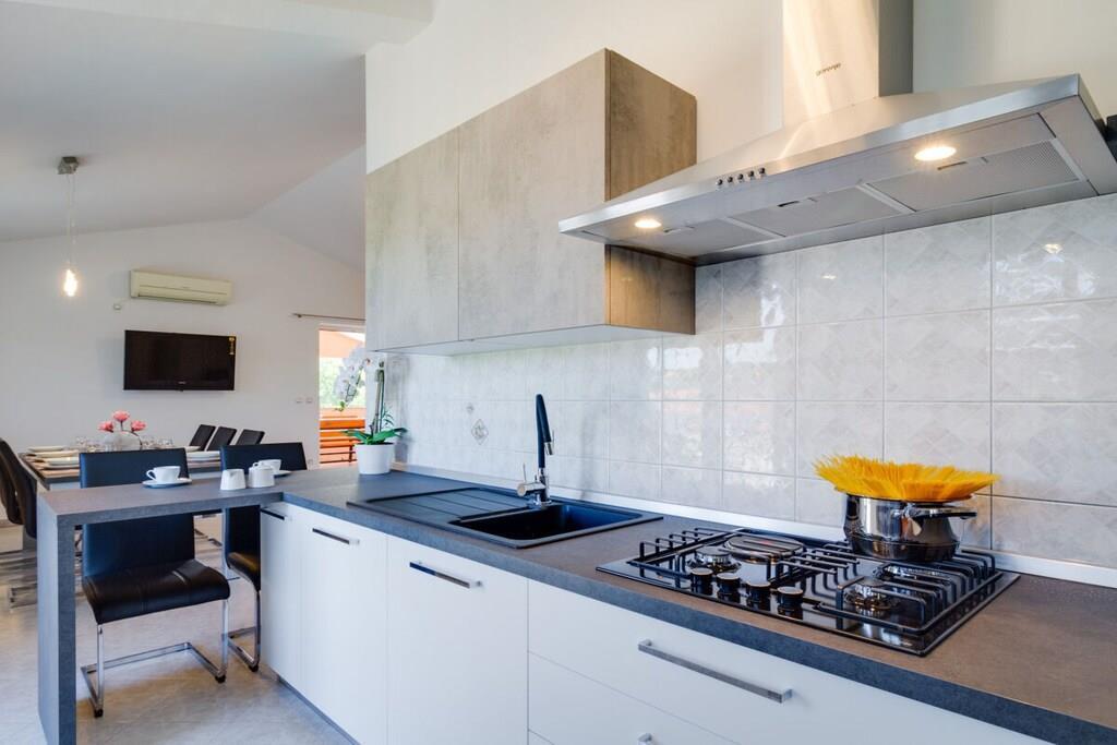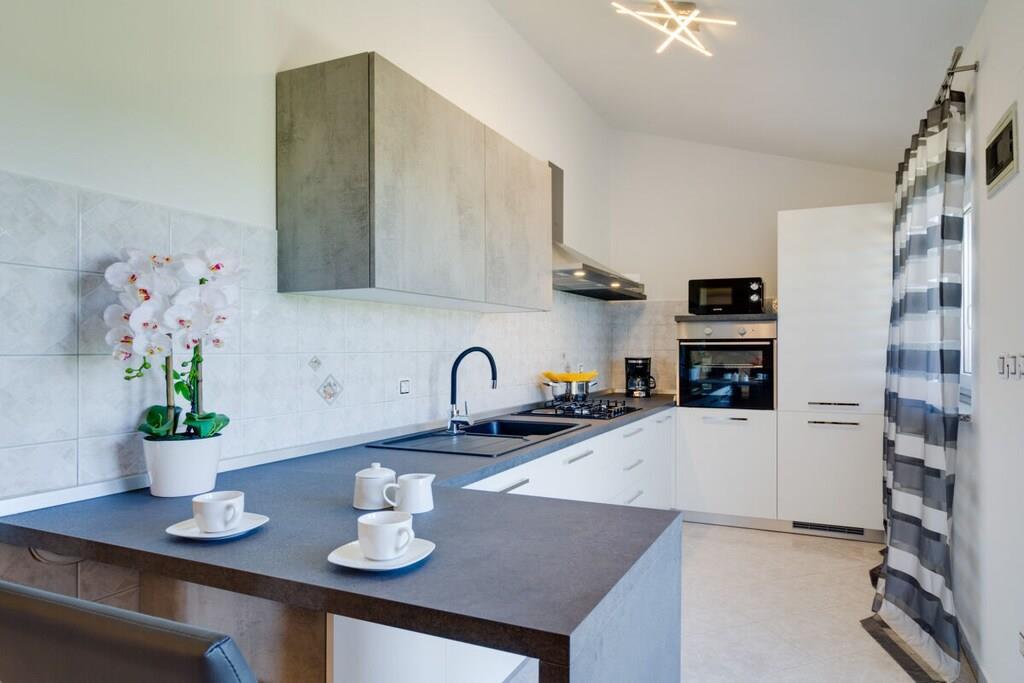 Diese schöne Villa mit einem großen und komfortablen Swimmingpool von 32m² befindet sich in der Mitte von Istrien in einem Ort Bokordici in der Nähe von Svetvincenat. Die Villa hat eine Fläche von 75m² und einen großen Garten mit einem Pool, Parkplatz ca. 900 m² alles zusammen. In dem Haus sind zwei Schlafzimmer. Das Wohnzimmer ist geräumig und es hat eine schöne und bequeme Sofa in ein Doppelbett für 2 Personen umwandelbar, gibt es auch ein Esszimmer und schöne neue Küche. Vom Wohnbereich ist ein Ausgang zu einer schönen Terrasse mit Tisch und Stühlen. Hinter der Villa, wo Sie durch eine geräumige Terrasse gehen können, ist ein schönes großes Schwimmbad mit einer Oberfläche von 32 m²und 6 Liegestühlen. Es gibt auch einen Parkplatz für Ihr Auto vor dem Haus.
