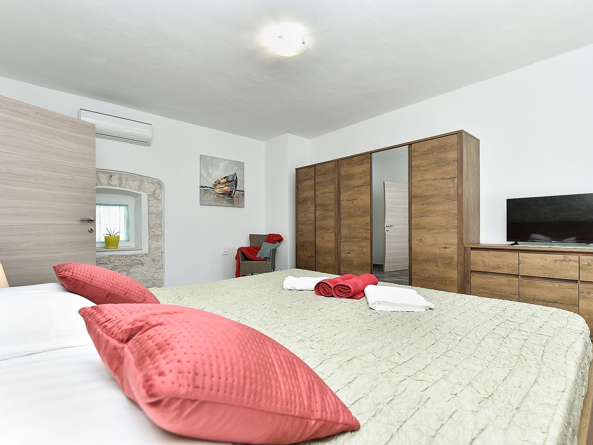 Haus bietet Platz für 5 Gäste. Die Betten sind in Schlafzimmern, die es 2 gibt, innerhalb einer Gesamtfläche von 65m2, angeordnet. Die Gäste haben eine eigene Terrasse zur Verfügung, auf der sie in warmen Sommernächten genießen können. Für vollen Genuss und Entspannung gibt es einen privaten Grill für Gäste dieser Unterkunft. Während ihres Aufenthalts können Gäste das gemeinsam zur Nutzung stehende Schwimmbad benutzen. In der Unterkunftseinheit besteht die Möglichkeit des Mitbringens von Haustieren gegen Aufpreis. In der gebuchten Unterkunftseinheit zahlt man am Ort ein Depositum ( der Preis ist an der Internetseite angeführt ). IM PREIS INBEGRIFFEN: Kurtaxe, Endreinigung, Klimatisierung, Pool, Parkplatz, Internet, Kinderbett, Bügeleisen, Föhn. VERBINDLICHE ZUSÄTZLICHE KOSTEN: Kaution (200,00 € Einmalzahlung). UNVERBINDLICHE ZUSÄTZLICHE KOSTEN: Haustiere (10,00 € pro Nacht). Die Verfügbarkeit zusätzlicher Dienstleistungen in Ihrem reservierten Termin und die Preise derselben (falls nicht aufgeführt) müssen im Voraus überprüft werden. Zusätzliche Dienstleistungen die in der Zahlungsaufforderung nicht aufgeführt sind werden direkt beim Vermieter bezahlt, angenommen der Gast nutzt auch diese.