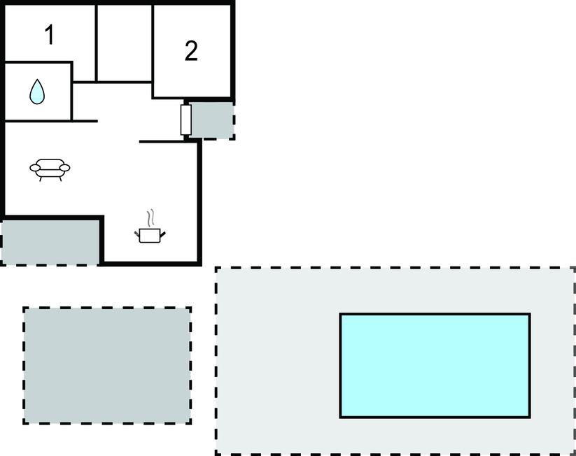 Den hyggelige opholdsstue i denne smukke villa i stueetagen kombinerer stue, spiseplads og fuldt udstyret køkken. Ud over et fælles badeværelse har gæsterne to soveværelser, der lover afslappende nætter, et med en dobbeltseng og et med to enkeltsenge.