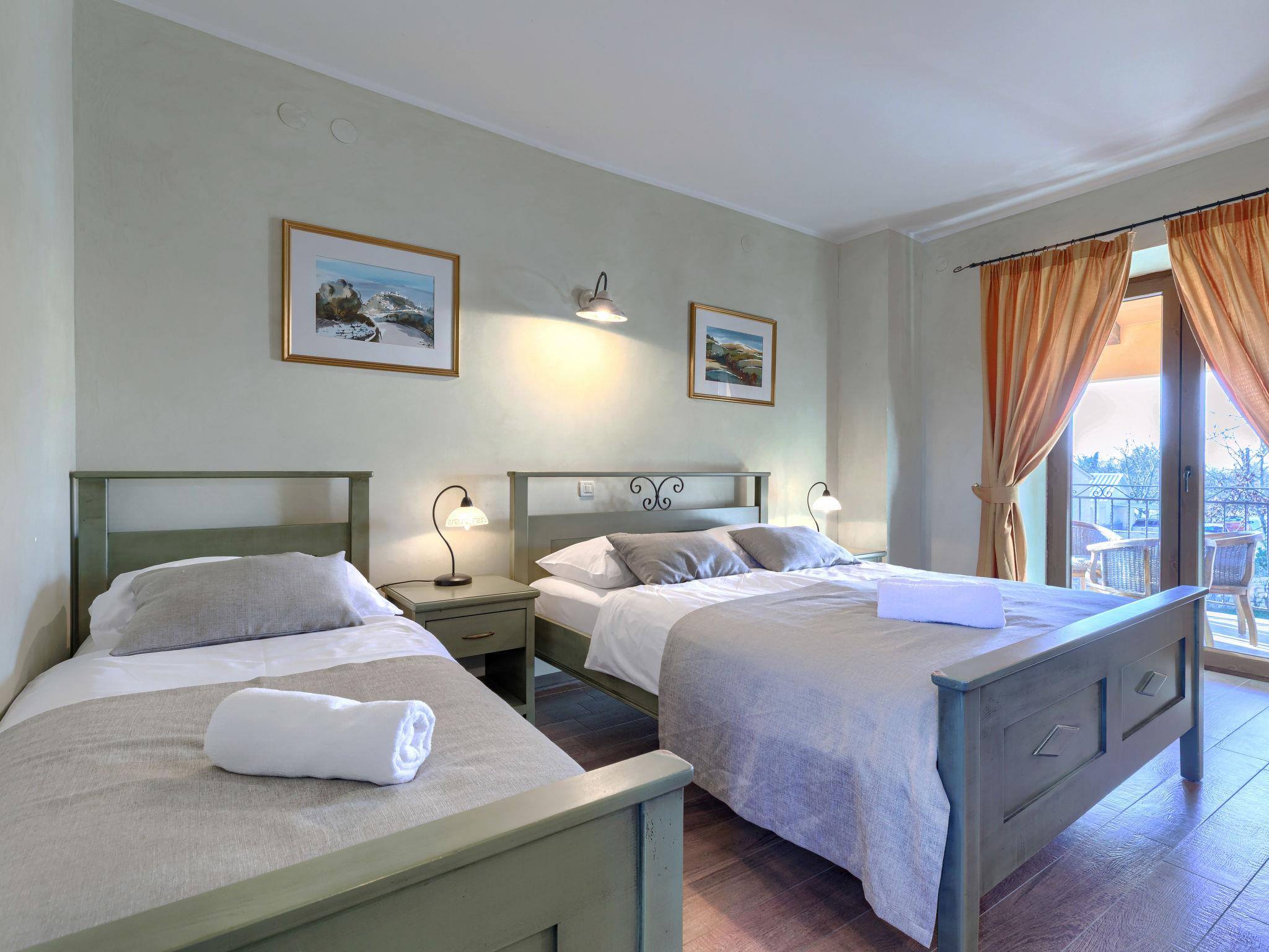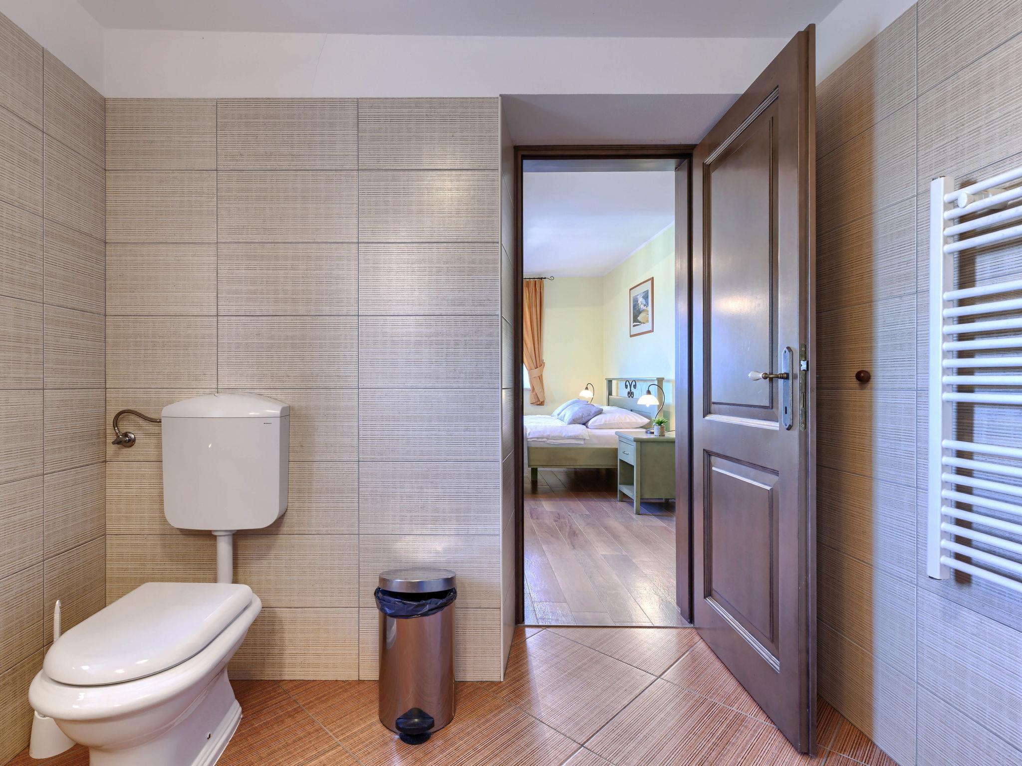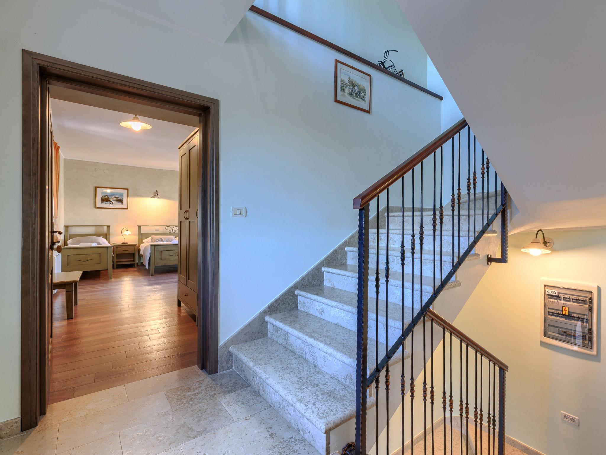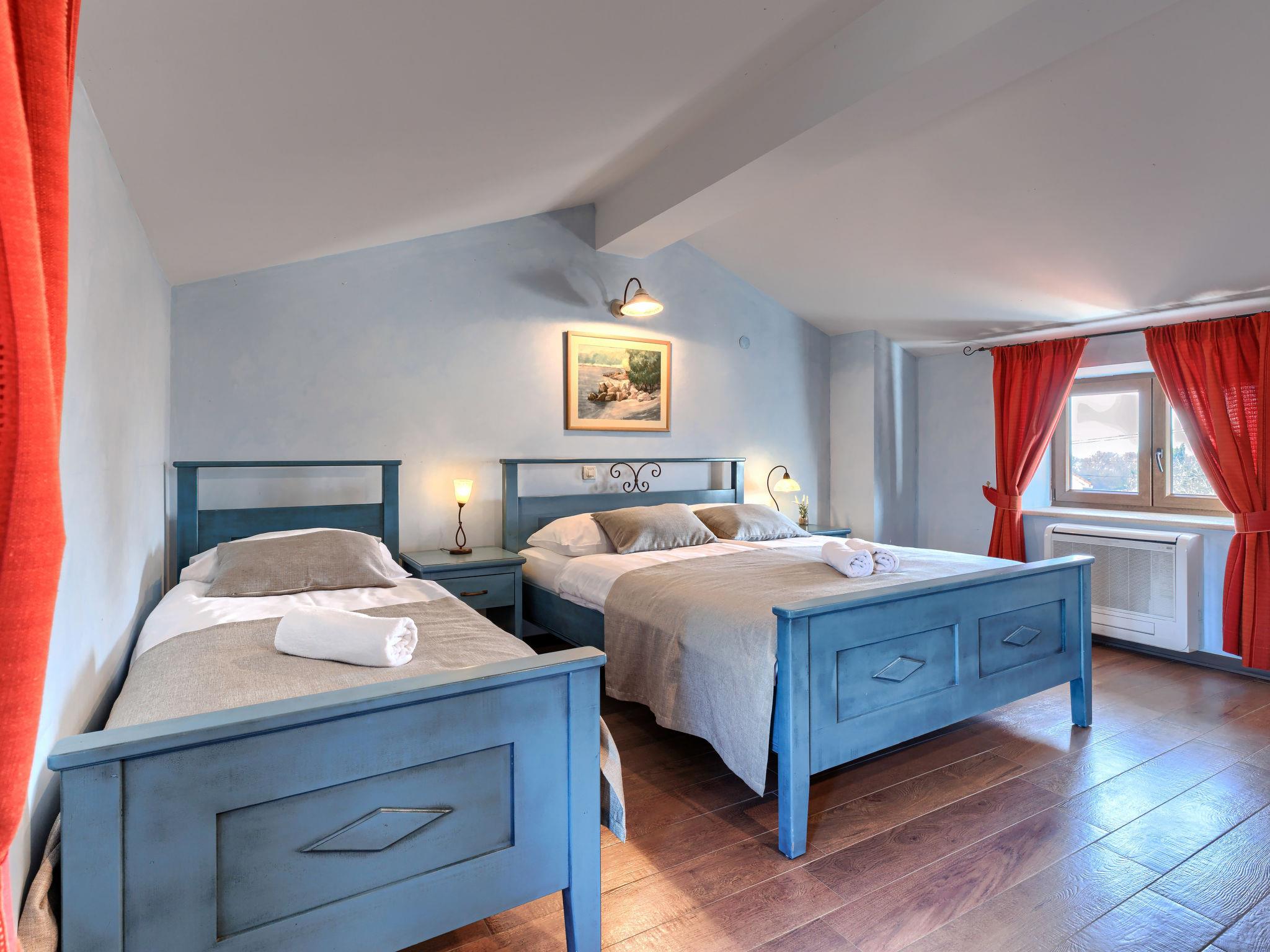 Single-family house "Villa Christina", 3 storeys. 5 km from the centre of Tinjan, 19 km from the centre of Porec, in a quiet, sunny position, 19 km from the sea. Private: property 400 m2 (fenced), swimming pool (24 m2, depth 135 cm, seasonal availability: 01.Apr. - 01.Nov.) with internal staircase. Unconventional pool shape. Outdoor shower, hot tub, table tennis, terrace (20 m2), garden furniture, barbecue, pool maintenance by the owner/gardener. In the house: internet access, sauna, trampoline, washing machine, tumble dryer, bicycles available. Parking (for 2 cars) at the house on the premises, single garage. Shop 2.1 km, supermarket 12 km, restaurant 2 km, bus stop 300 m, sandy beach 20 km pebble beach 20 km, rocky beach 20 km, concrete beach 20 km. Walking paths from the house 200 m, cycle lane 250 m, children's playground 20 m. The owner does not accept any youth groups. Private: tavern with kitchen, terrace furniture and fireplace.