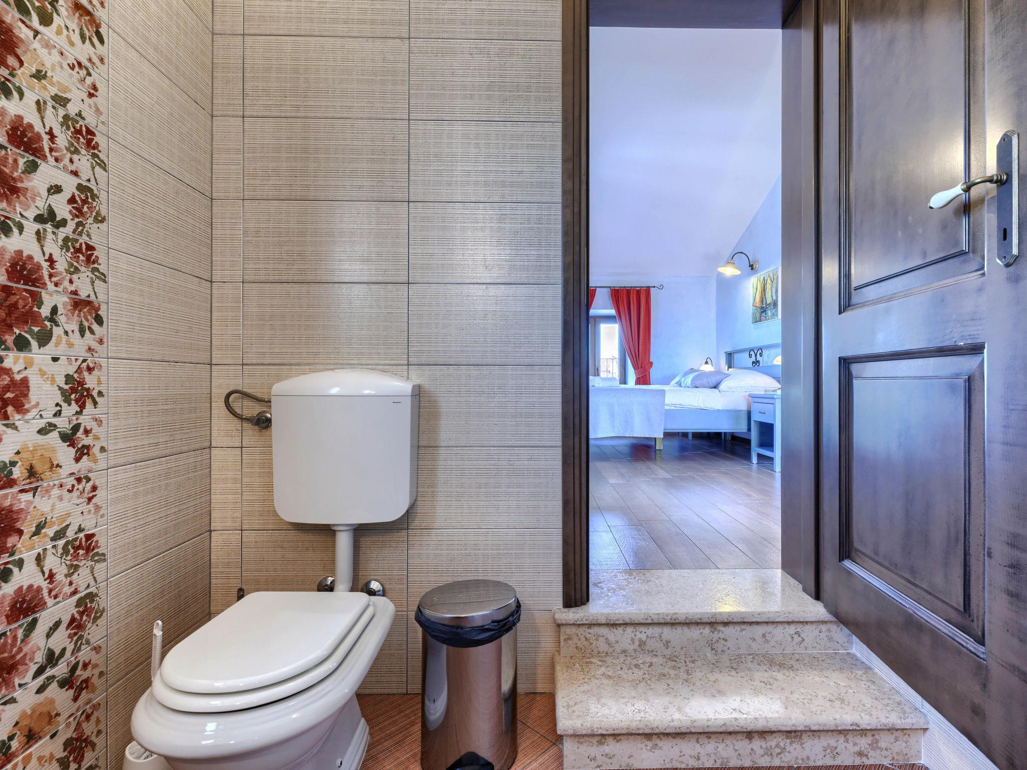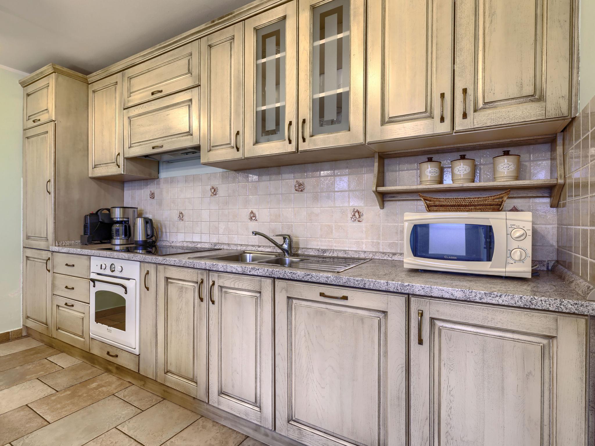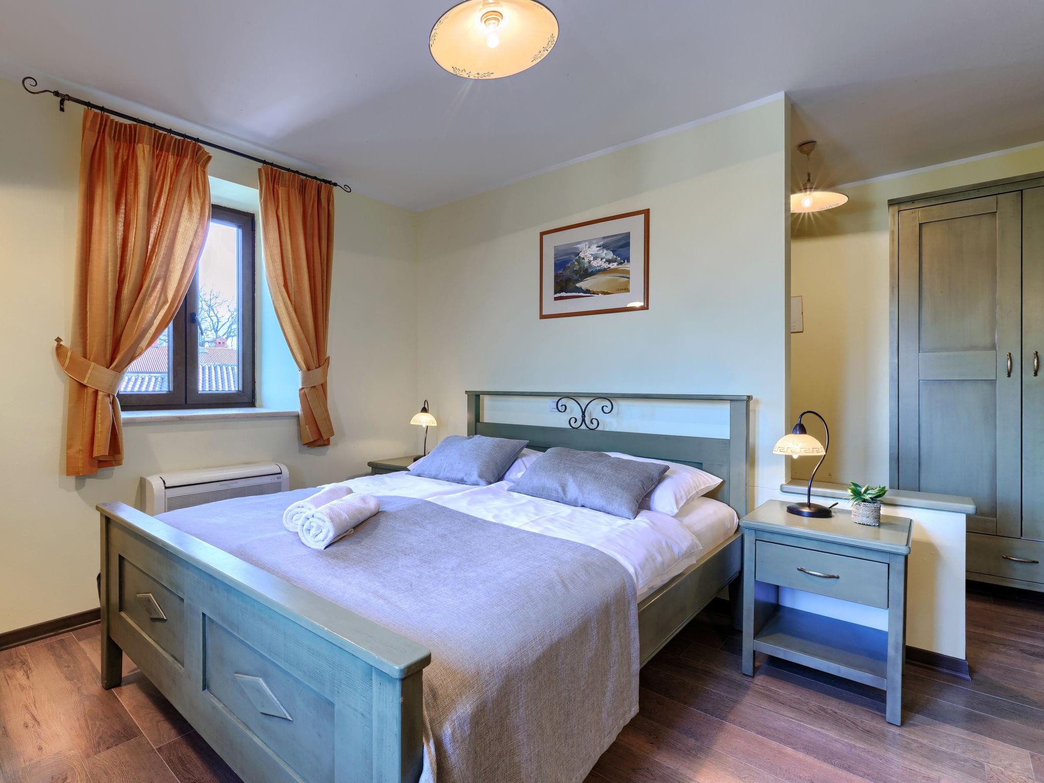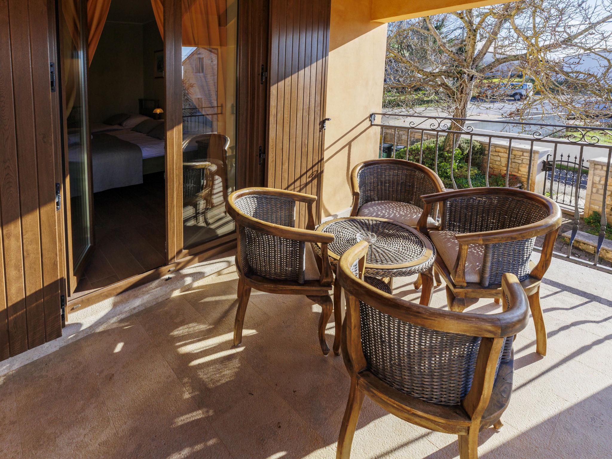 Single-family house "Villa Christina", 3 storeys. 5 km from the centre of Tinjan, 19 km from the centre of Porec, in a quiet, sunny position, 19 km from the sea. Private: property 400 m2 (fenced), swimming pool (24 m2, depth 135 cm, seasonal availability: 01.Apr. - 01.Nov.) with internal staircase. Unconventional pool shape. Outdoor shower, hot tub, table tennis, terrace (20 m2), garden furniture, barbecue, pool maintenance by the owner/gardener. In the house: internet access, sauna, trampoline, washing machine, tumble dryer, bicycles available. Parking (for 2 cars) at the house on the premises, single garage. Shop 2.1 km, supermarket 12 km, restaurant 2 km, bus stop 300 m, sandy beach 20 km pebble beach 20 km, rocky beach 20 km, concrete beach 20 km. Walking paths from the house 200 m, cycle lane 250 m, children's playground 20 m. The owner does not accept any youth groups. Private: tavern with kitchen, terrace furniture and fireplace.