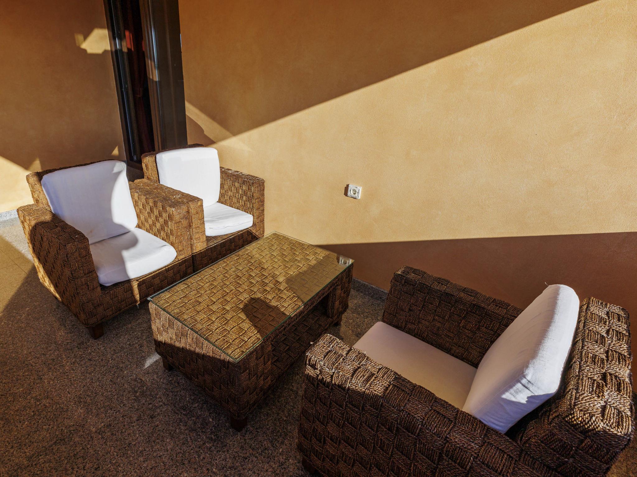 5-room house 240 m2 on 3 levels. Comfortable furnishings: living/dining room 100 m2 with satellite TV and air conditioning. Exit to the terrace. Open kitchen (4 hot plates, oven, dishwasher, kettle, microwave, freezer, electric coffee machine). 2 sep. WC's. Upper floor: 1 room with 1 bed (90 cm, length 200 cm), 1 french bed (160 cm, length 200 cm), shower/WC, satellite TV and air conditioning. Exit to the balcony. 1 room with 1 french bed (160 cm, length 200 cm), shower/WC, satellite TV and air conditioning. Top floor: 1 room with 1 bed (90 cm, length 200 cm), 1 french bed (160 cm, length 200 cm), shower/WC, satellite TV and air conditioning. Exit to the balcony. 1 room with 1 french bed (160 cm, length 200 cm), satellite TV and air conditioning. Forced-air heating. 2 balconies 10 m2, terrace 20 m2 partly roofed. Terrace furniture, deck chairs (10). View of the swimming pool. Facilities: children's high chair, baby cot, hair dryer. Internet (WiFi, free). Parking (2 cars). Please note: non-smoking house. Maximum 2 pets/ dogs allowed.