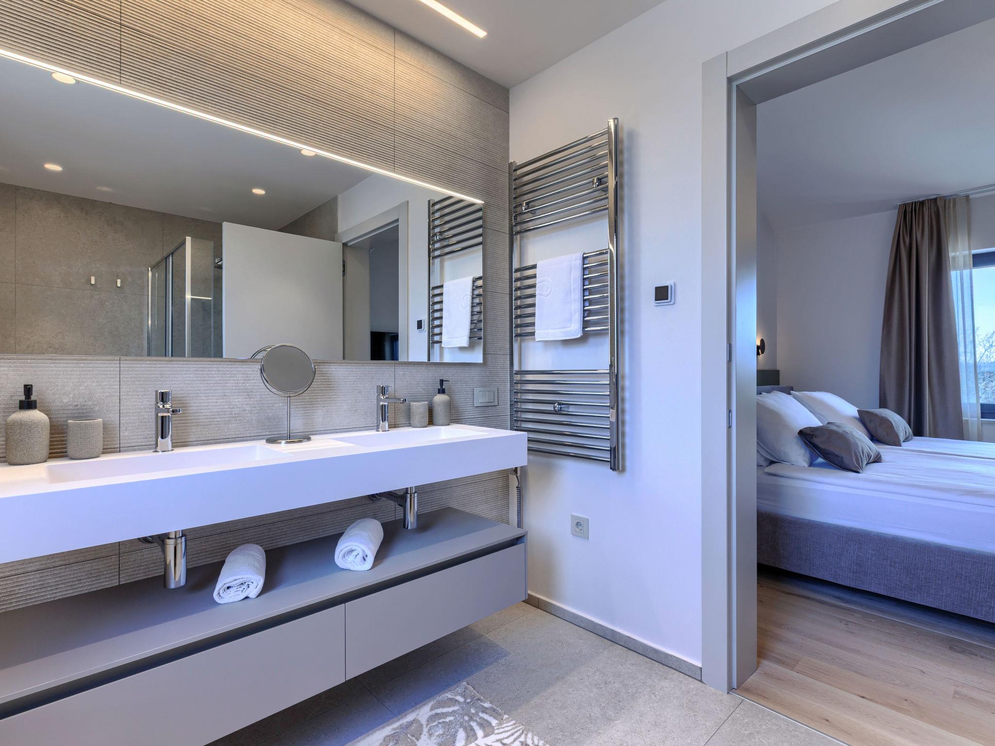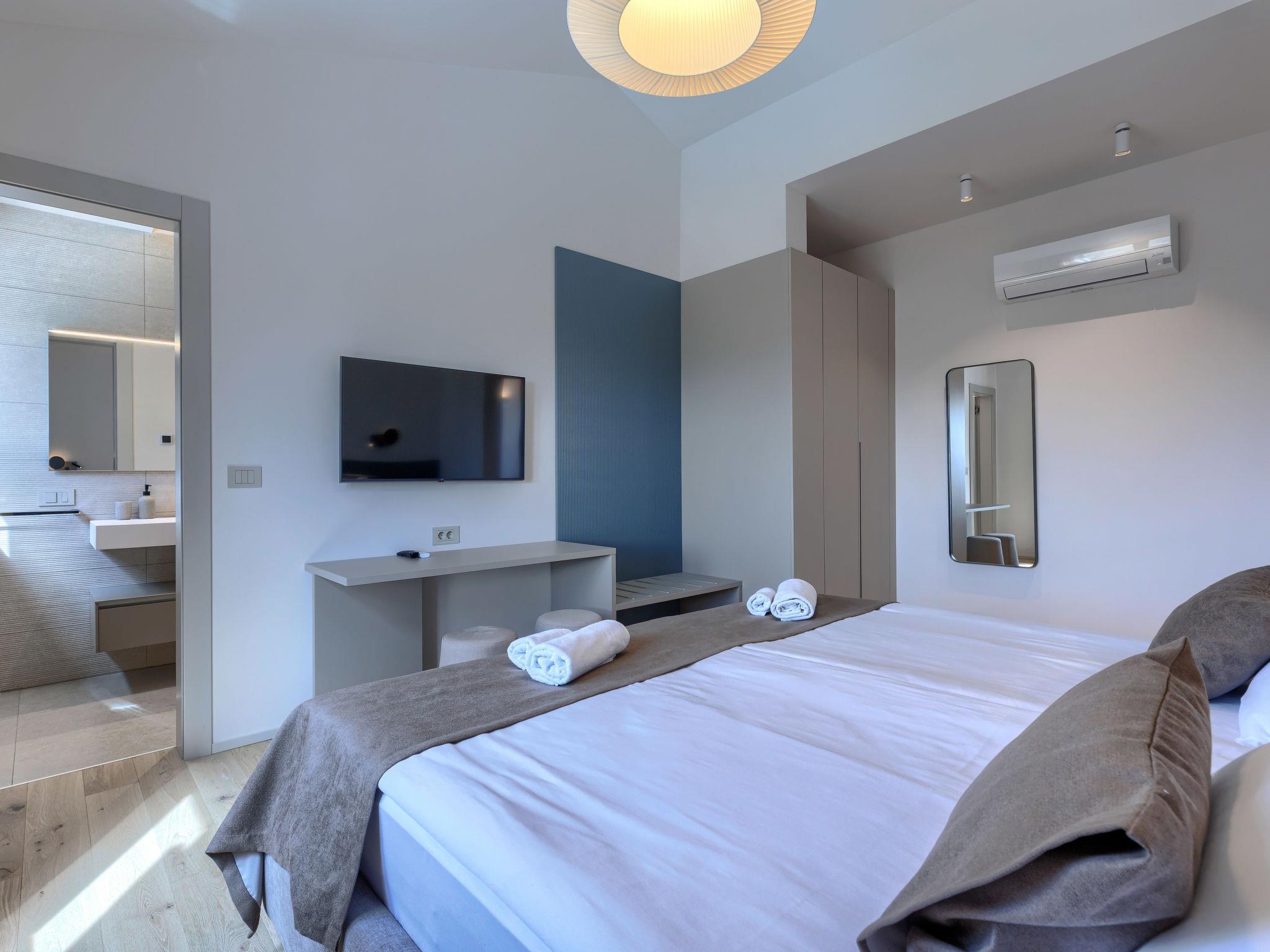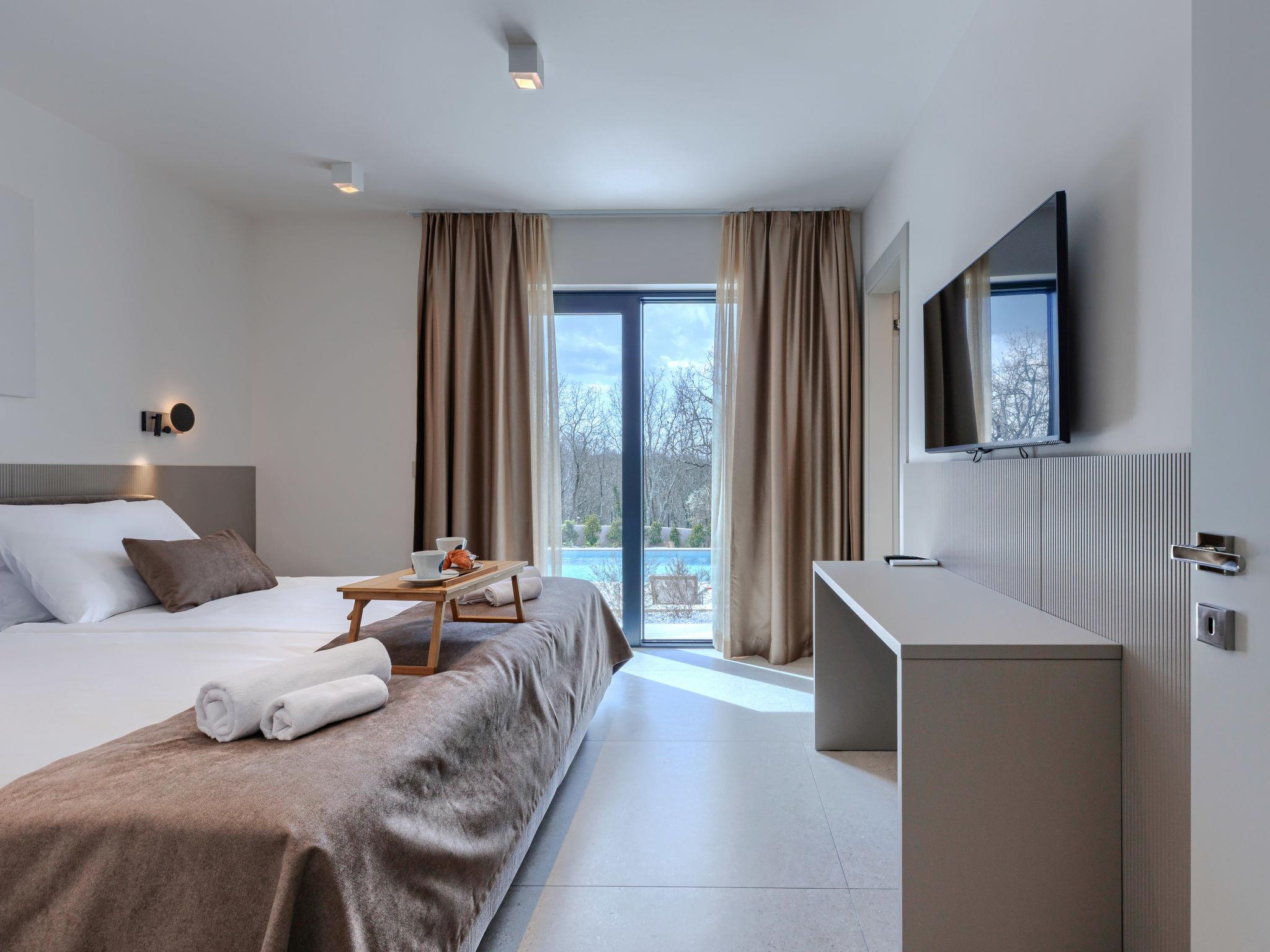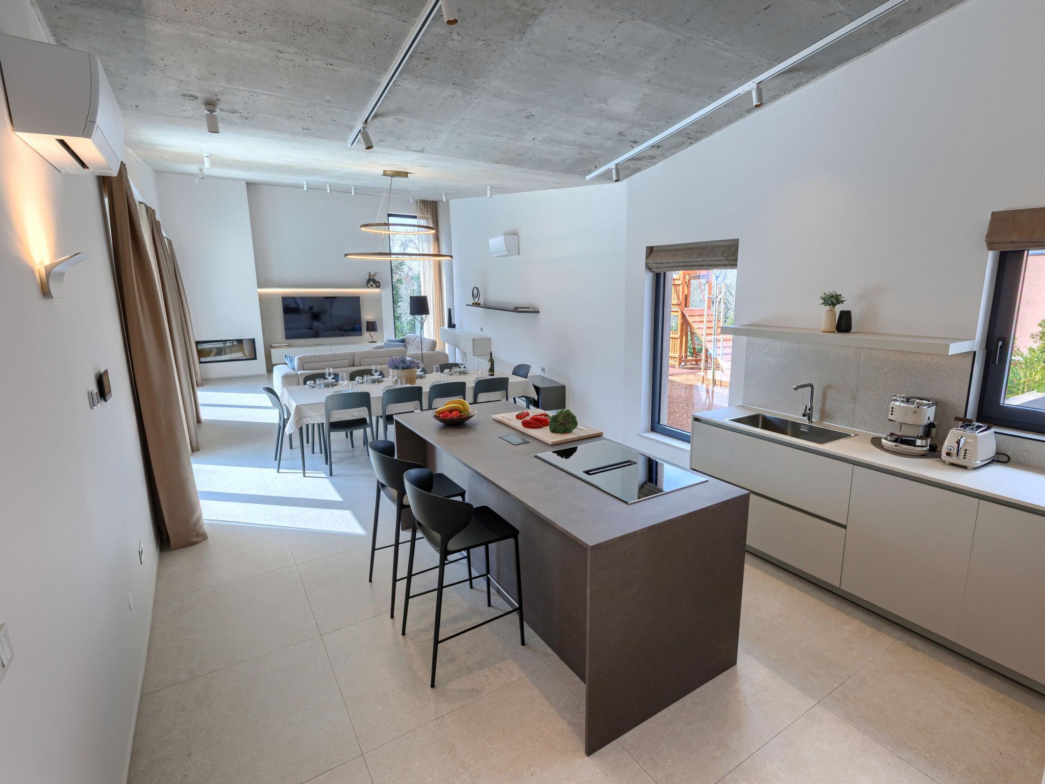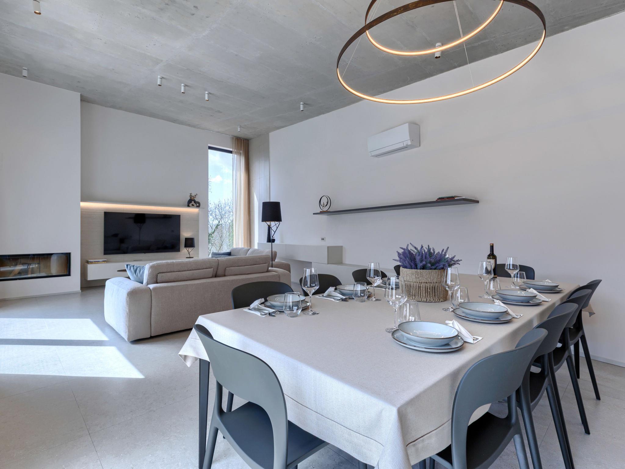 Beautiful, luxurious single-family house "La Mari", 2 storeys, built in 2026. In the hamlet Banki 4 km from the centre of Tinjan, 12 km from the centre of Porec, in a sunny position, 12 km from the sea. Private: property 1'399 m2 with lawn and wildlife garden, swimming pool angular (10 x 5 m, depth 145 cm, seasonal availability: 01.Apr. - 30.Sep.) with internal staircase. Outdoor shower, hot tub, terrace (20 m2), garden furniture, barbecue, children's playground (slide, swing), pool maintenance by the owner/gardener. In the house: internet access, sauna, washing machine. Parking (for 4 cars) at the house on the premises. E-charging station. Shop 4 km, supermarket 11 km, restaurant 4 km, bus stop 4 km, pebble beach 12 km, rocky beach 12 km. Nearby attractions: Aquapark 18 km, Adrenalin park Kringa 7 km. The owner does not accept any youth groups.