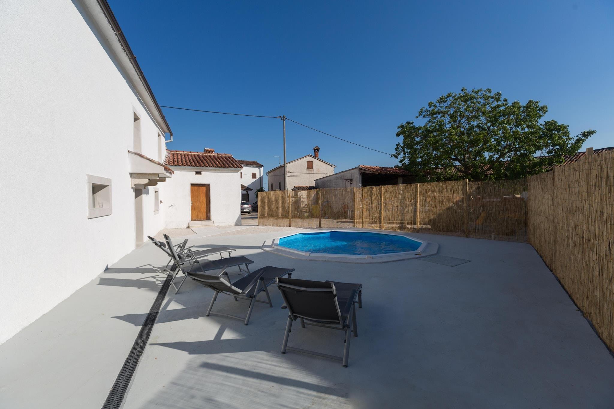 Layout og indendørs komfort Denne rummelige villa i Tinjans Kringa-region har plads til op til 8 gæster. Stueetagen har en hyggelig stue med en dobbelt sovesofa og et fuldt udstyret køkken med moderne apparater. Et soveværelse har aircondition, og badeværelset har bruser og vaskemaskine. Ovenpå har to ekstra soveværelser hver en-suite badeværelser og aircondition, hvilket sikrer privatliv og komfort. Udendørs faciliteter og afslapning Nyd den private swimmingpool, liggestole og en skyggefuld terrasse med havemøbler. Den indhegnede terrasse og parasollen byder på fredelige steder at slappe af, mens grillopsætningen inviterer til udendørs spisning. Gratis WiFi og parkering på stedet tilføjer bekvemmelighed, og kæledyr er også velkomne. Beliggenhed og nærliggende attraktioner Kun 10 m fra Kringas centrum er villaen ideelt placeret til at udforske Istrien. Havet og stranden ligger 15 km væk, og der er mulighed for vandsport i nærheden. Pula Lufthavn ligger 60 km væk, og charmerende byer som Pazin, Porec og Rovinj er inden for rækkevidde for dagsture og kulturelle udflugter.