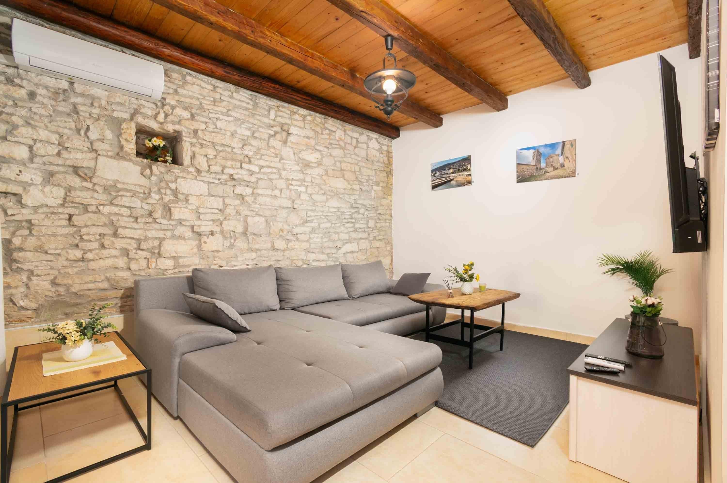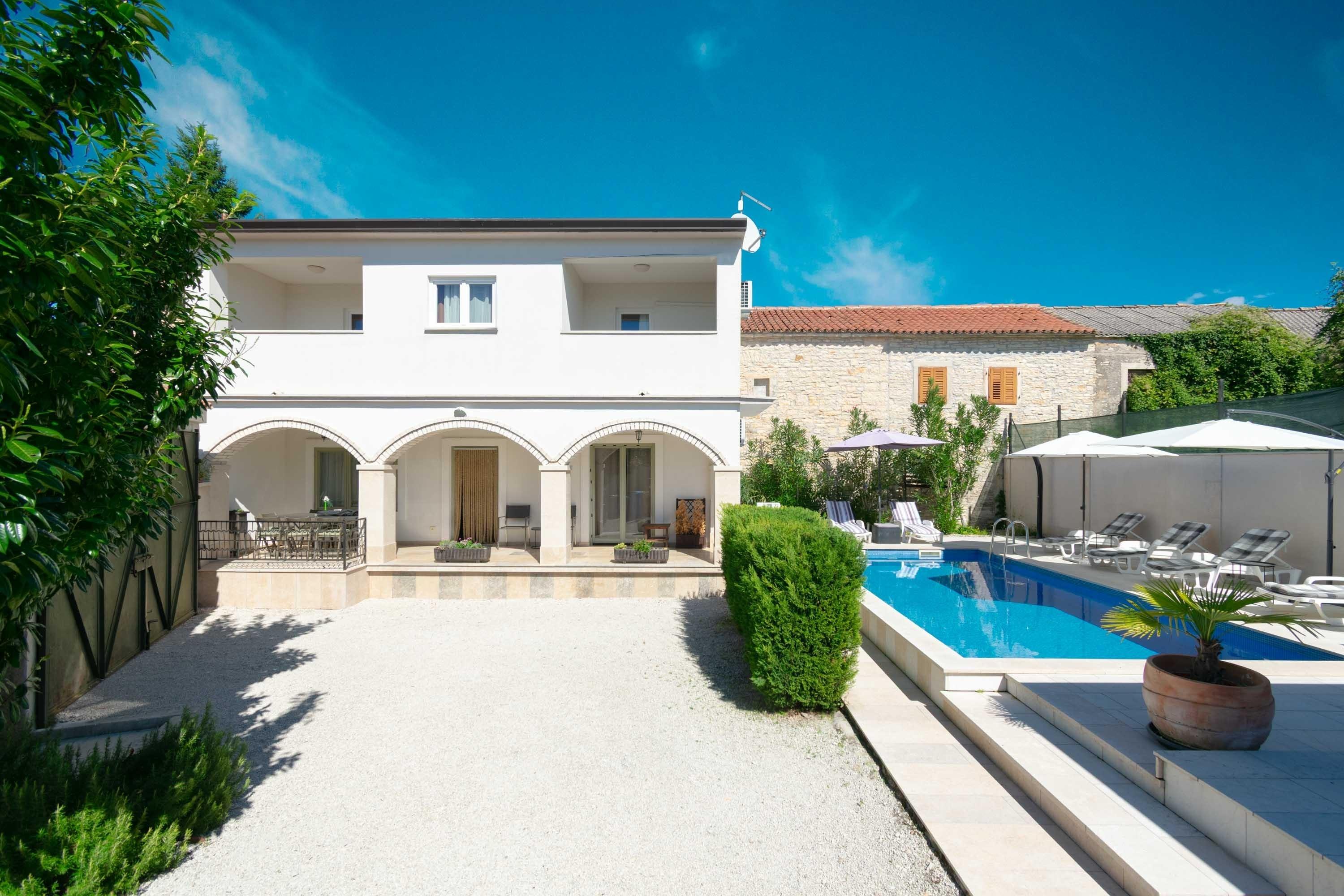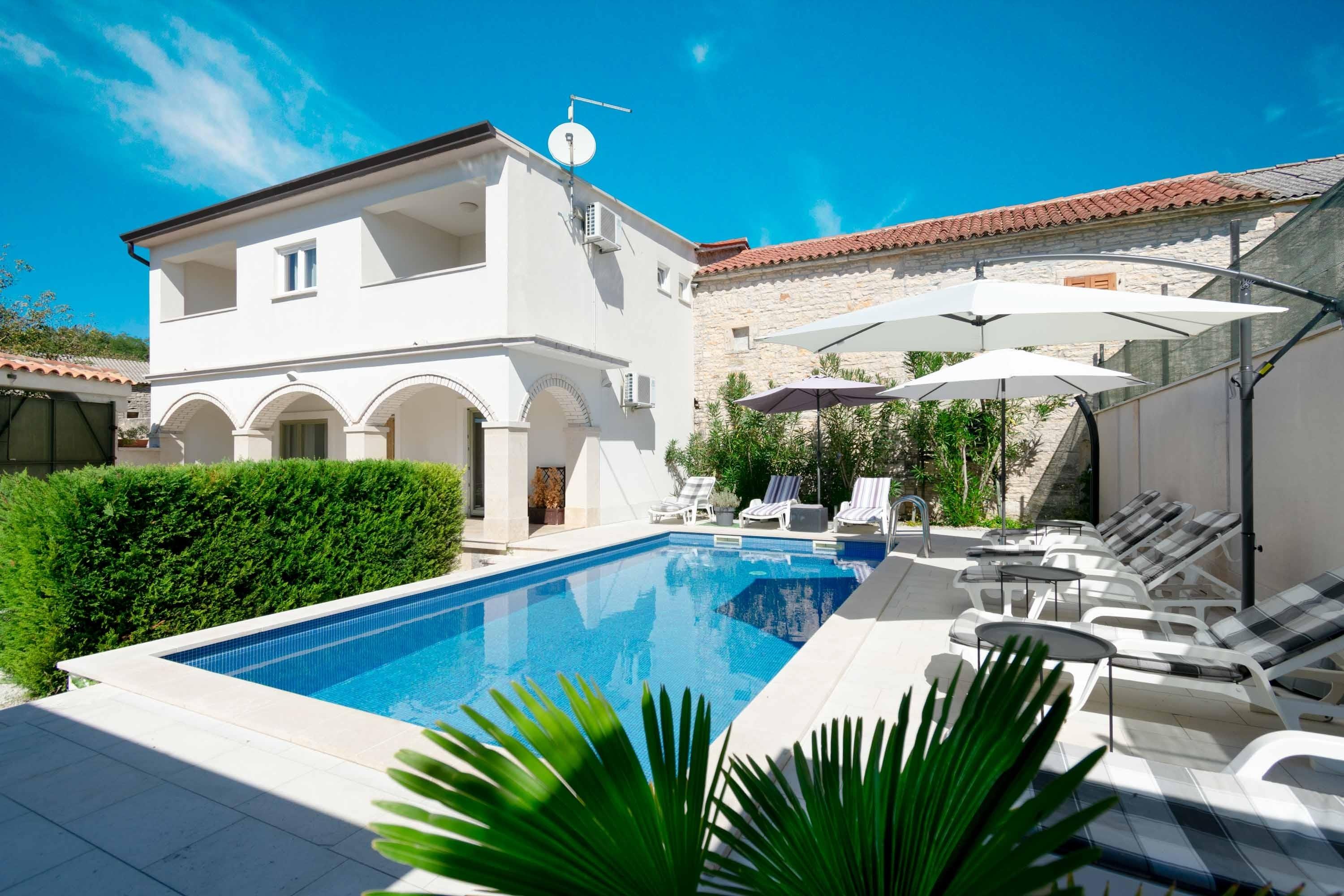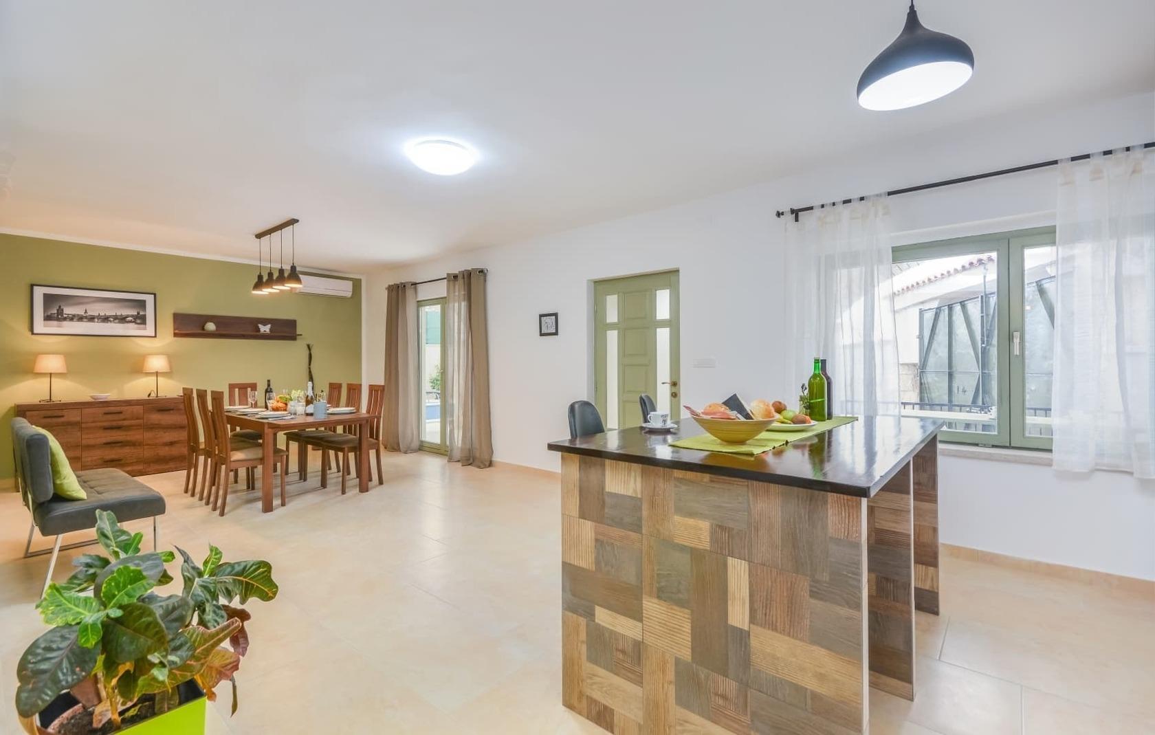 Ursprünglich 1961 erbaut, zeigt die Villa noch immer authentisches istrisches Mauerwerk, ergänzt durch durchdachte Erweiterungen und eine umfassende Renovierung im Jahr 2017. Im ruhigen Dorf Kringa gelegen, nur 20 km vom Meer entfernt, bietet sie ländliche Ruhe, während die Küste bequem erreichbar bleibt.