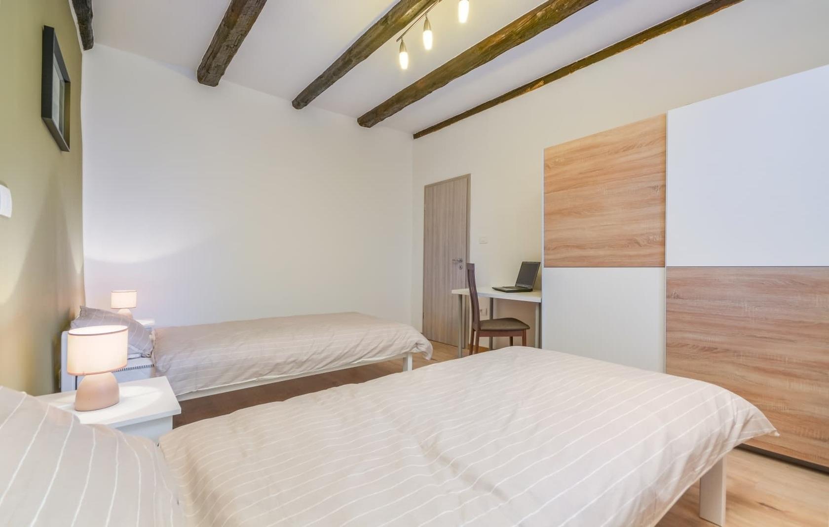 Schlafzimmer 2 – Zwei Einzelbetten und Ventilator