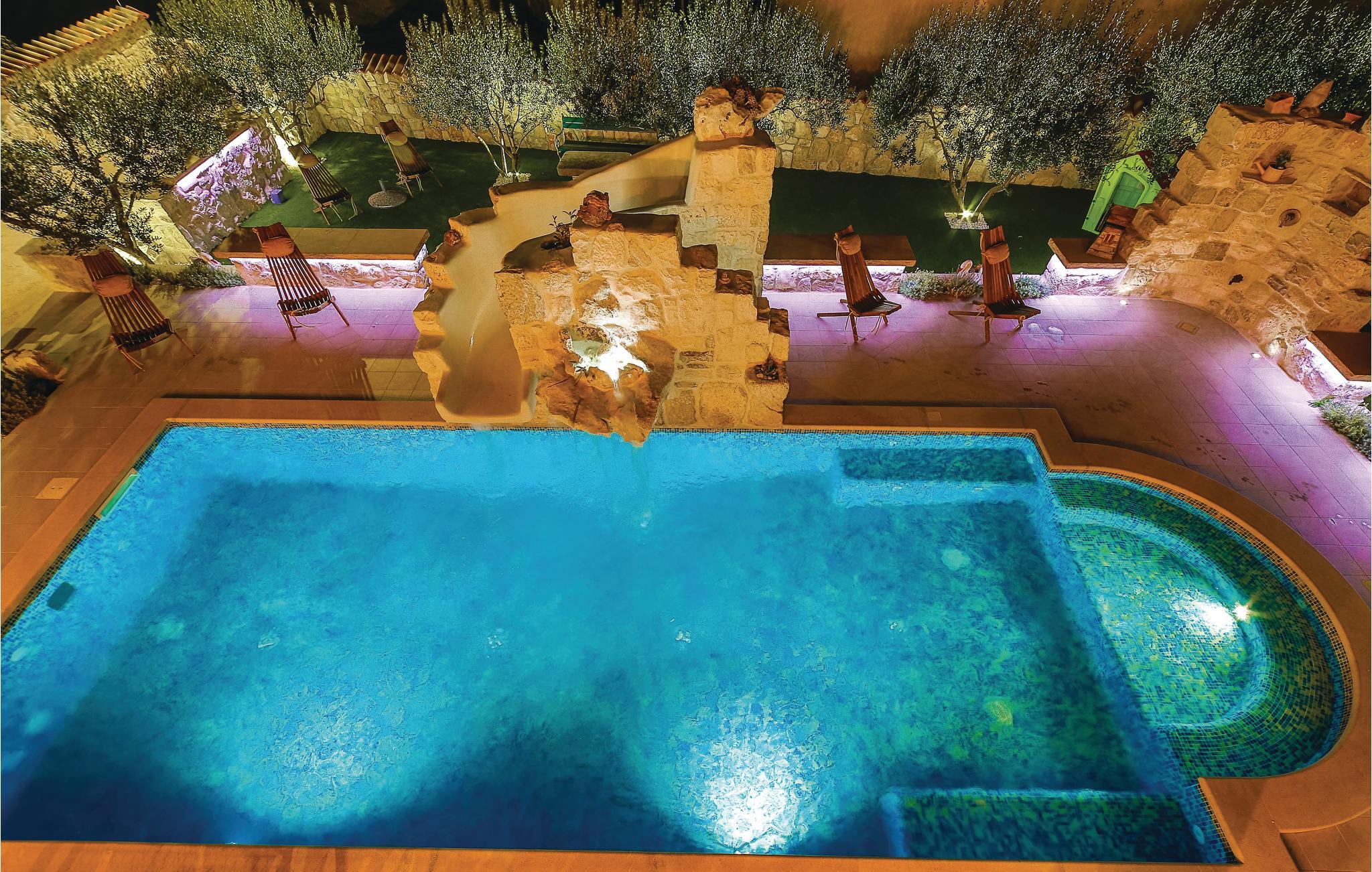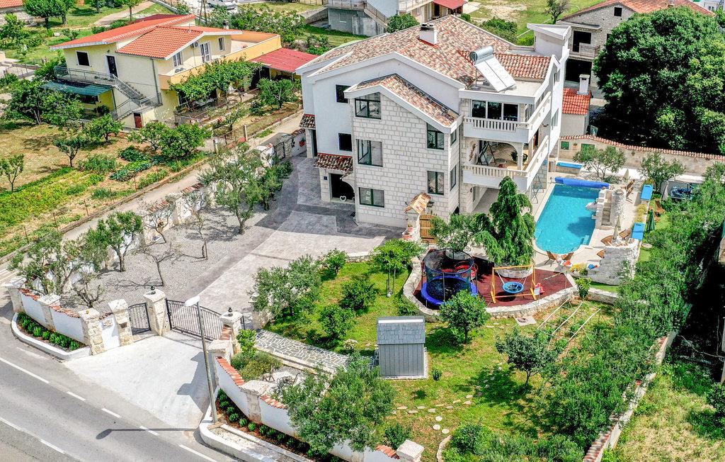 Dette hyggelige feriehus med pool og en usædvanlig indretninger ligger i byen Plano, i nærheden af Trogir. Her er bekvemmeligheder som opvarmet pool, vandrutsjebane og andre underholdningsmuligheder for hele familien, der gør ferien helt speciel. Husets indre fordeler sig på stueplan og første sal. I kan lave mad på grillen der står på terrassen og samtidig nyde en fantastisk havudsigt. I nærheden ligger en lille butik og en restaurant. Vi kan anbefale et besøg i Trogirs gamle bydel, ligesom både Split og Solin er oplagt til en udflugt.