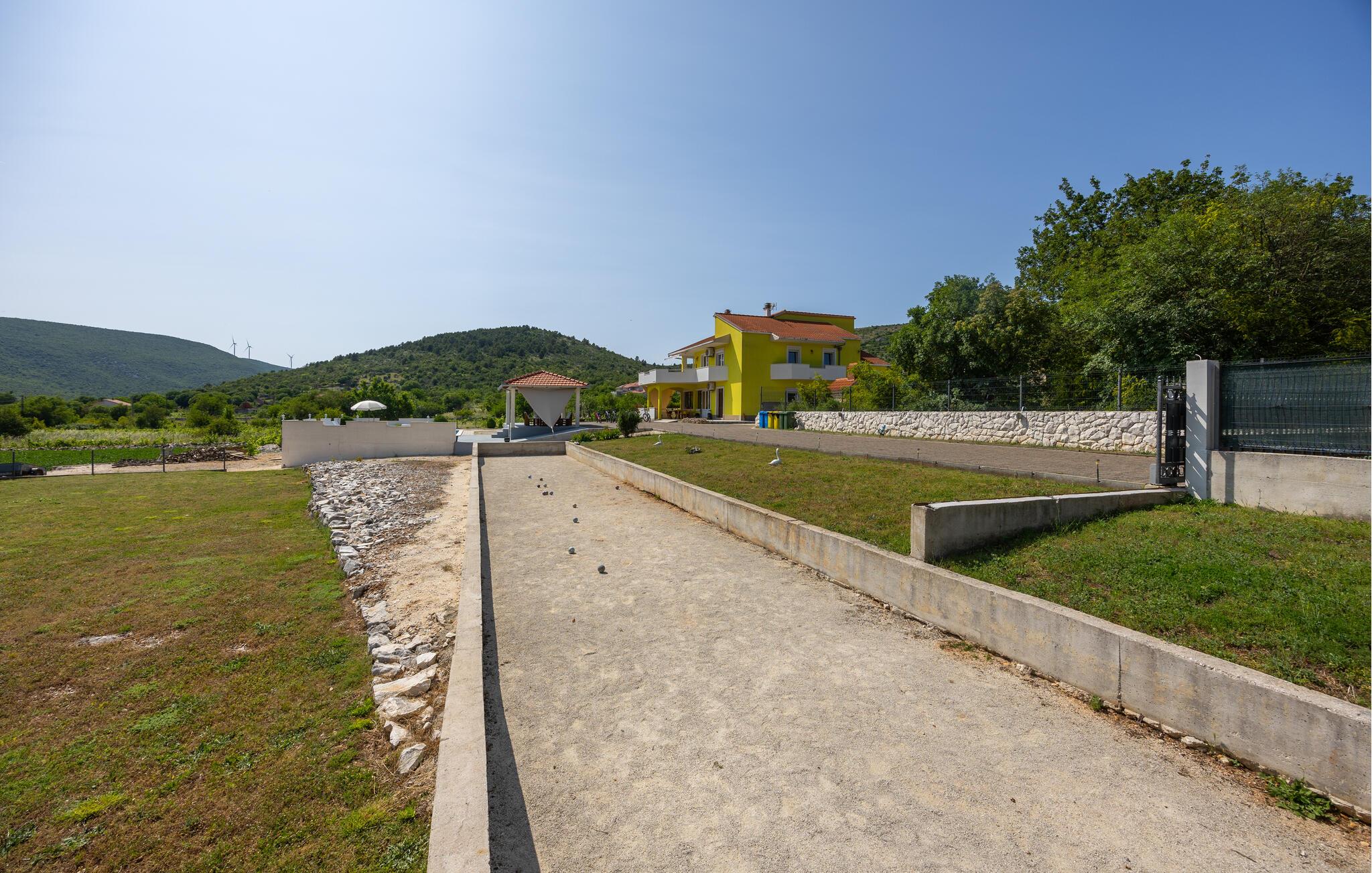 Hold en rolig ferie omgivet af skøn natur, i dette dejlige feriehus med egen privat pool i Primorski Dolac. Huset ligger på en skøn stor grund og er delt op i to lejligheder. Den mindste lejlighed ligger i stueplan med et soveværelse, mens den større lejlighed ligger på øverste etage med tre soveværelser. I stueplan ligger det fælles aktivitetsrum ligesom der er legeplads hvor familiens små kan få mange timer til at gå. Det var ikke lang tid at komme til de interessante byer Trogir, Sibenik og Split. Her er alle muligheder for at få en ferie fuld af afslapning, aktivitet, nye oplevelser og meget andet.