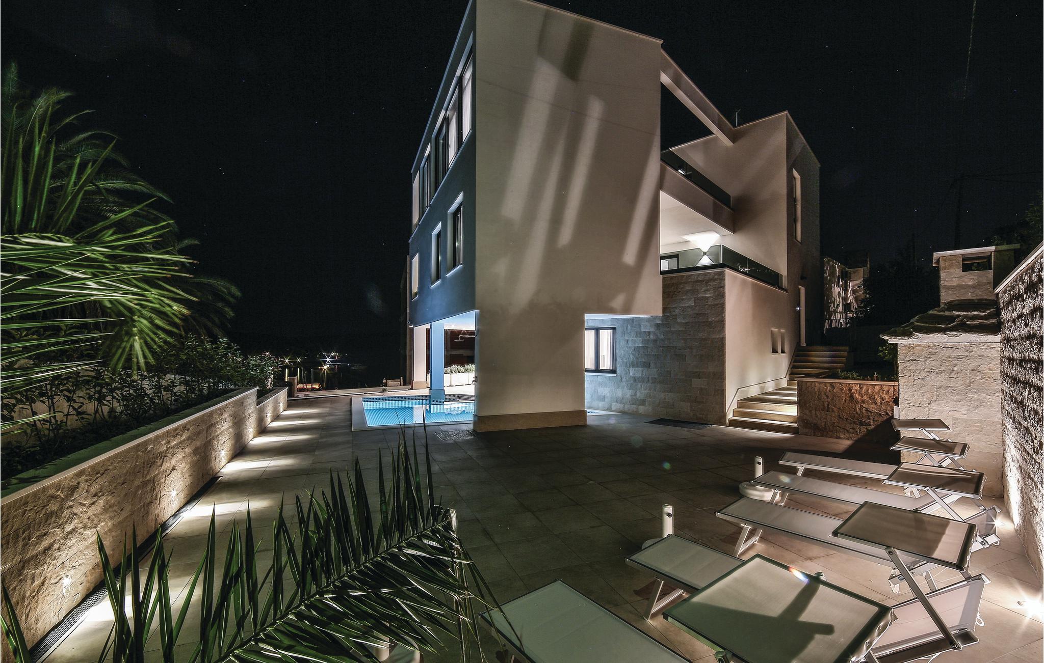 Dette eksklusive feriehus på øen Ciovo nær Trogir lover jer en uforglemmelig ferie med stil og komfort. Husets rummelige indre giver plads til flere familier eller grupper. Med en luksuriøs opholdsstue og et moderne køkken opfylder det alle jeres ønsker. Nyd fælles aftener i den elegante spisestue eller slap af i husets egen wellnessafdeling med sauna og spabad. Fitnessrummet giver jer mulighed for at være aktive, selv under ferien.
