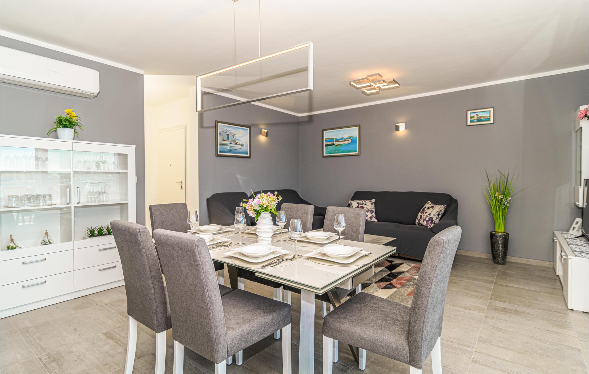 I vil især kunne lide denne hyggelige og moderne ferielejlighed. Her kan I finde jer godt til rette med familien og nyde nogle skønne dage i Kroatien. Fra stuen er der udgang til en stor terrasse med havudsigt, hvor I kan nyde jeres morgenkaffe og morgenmad.