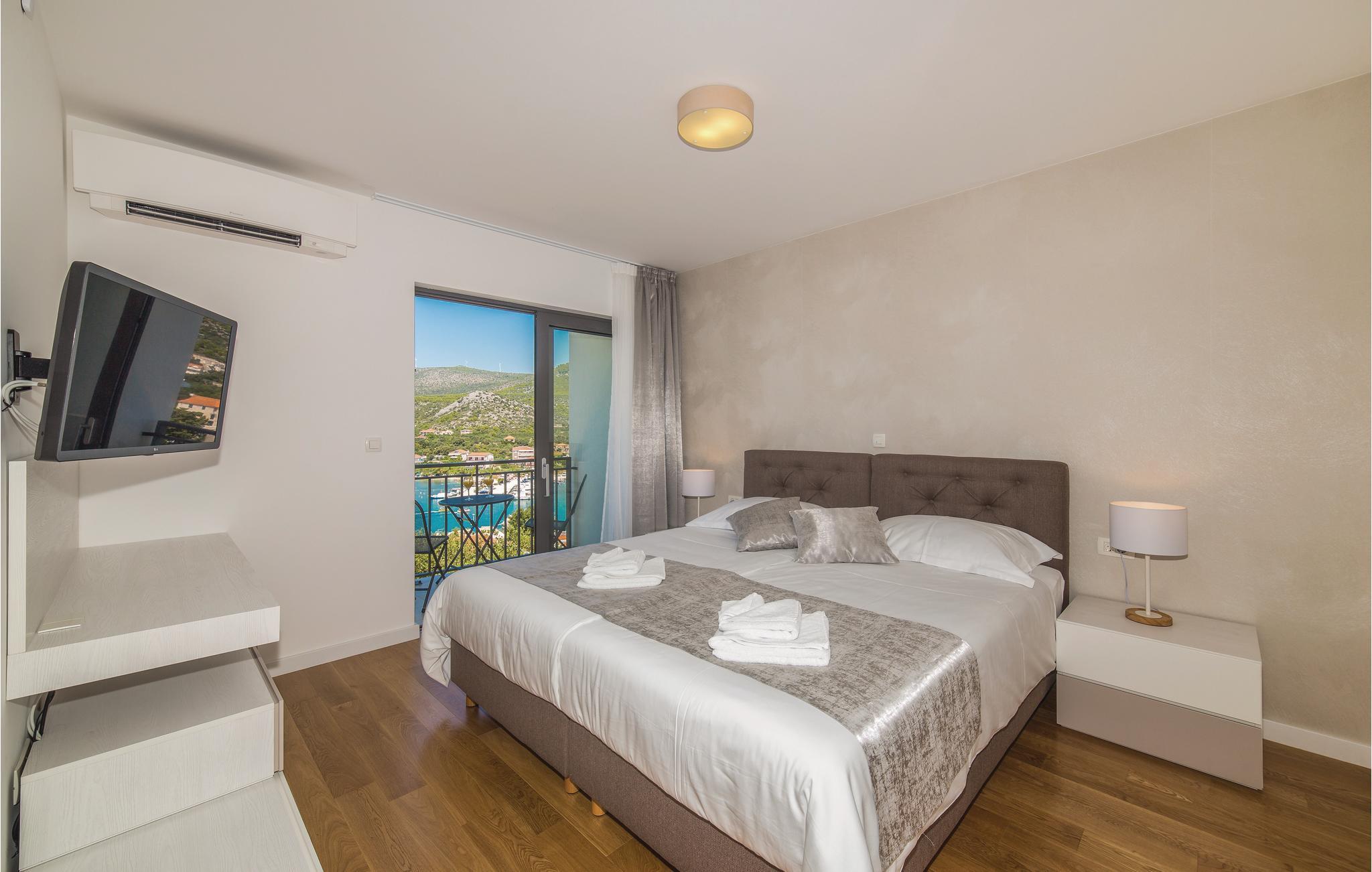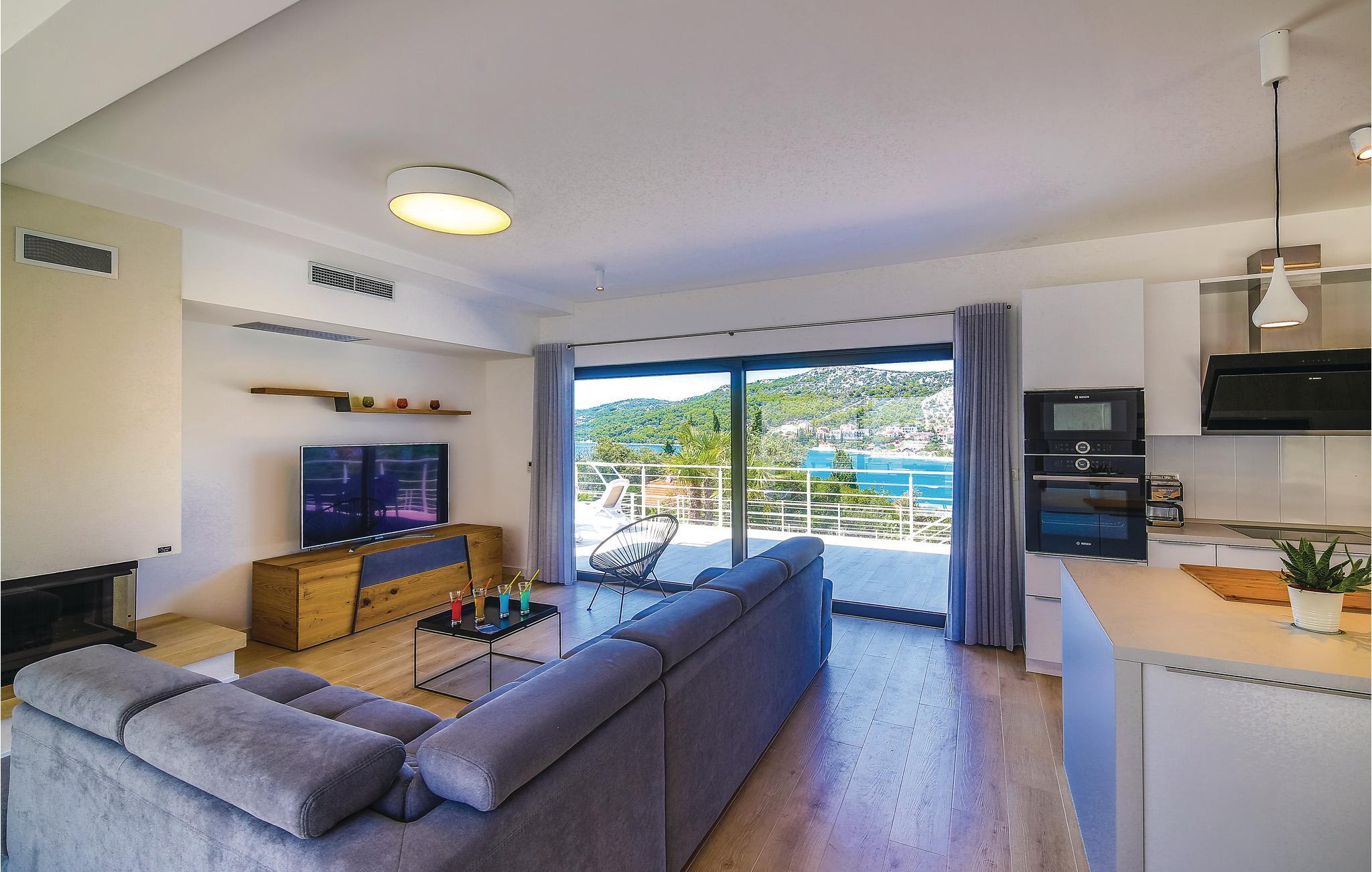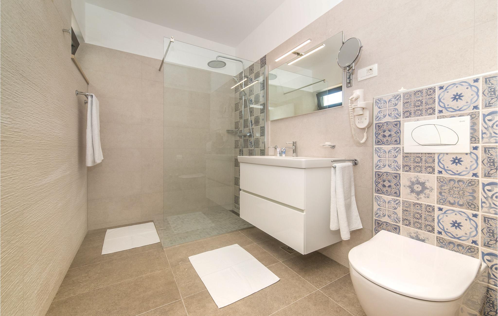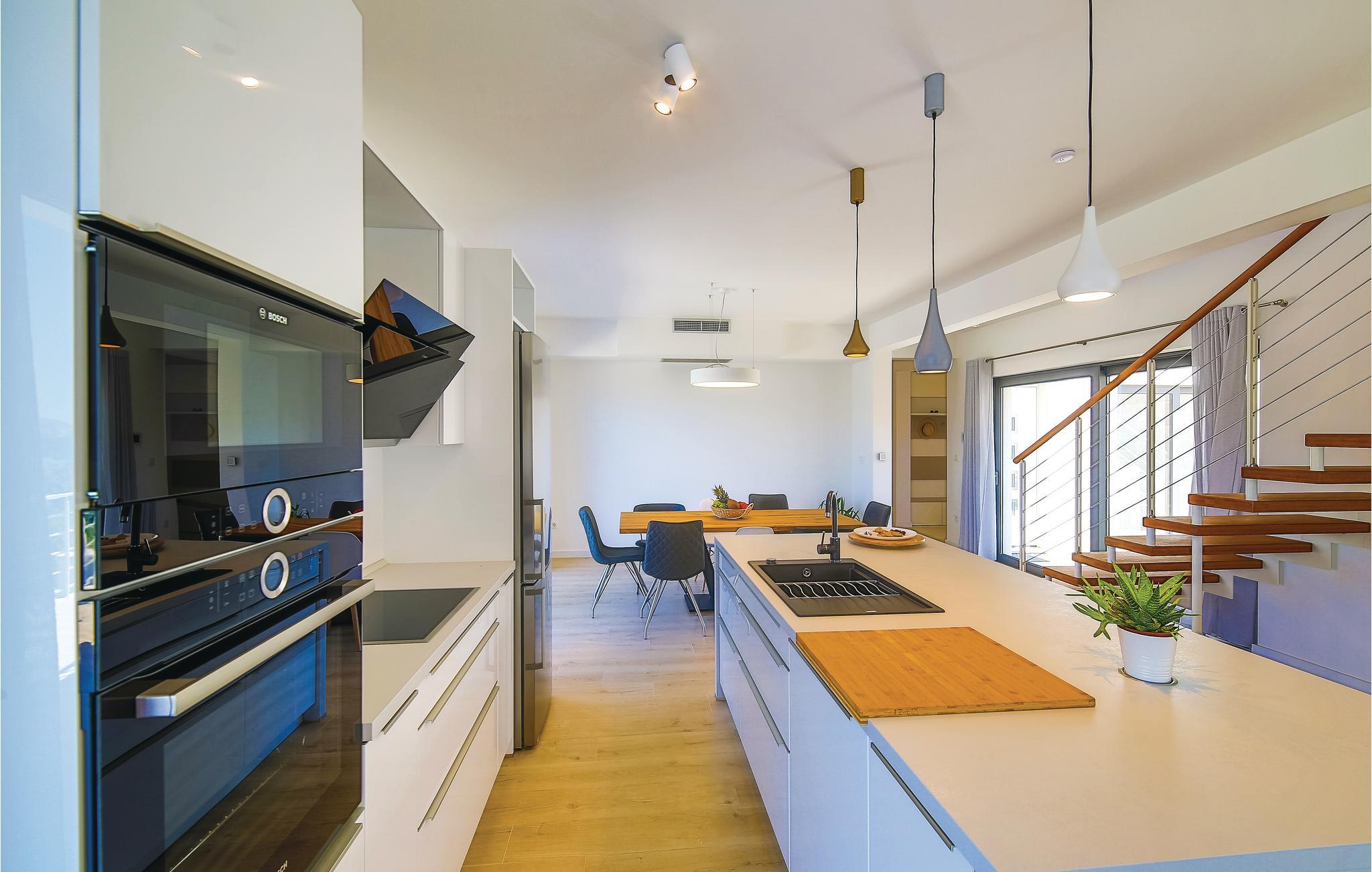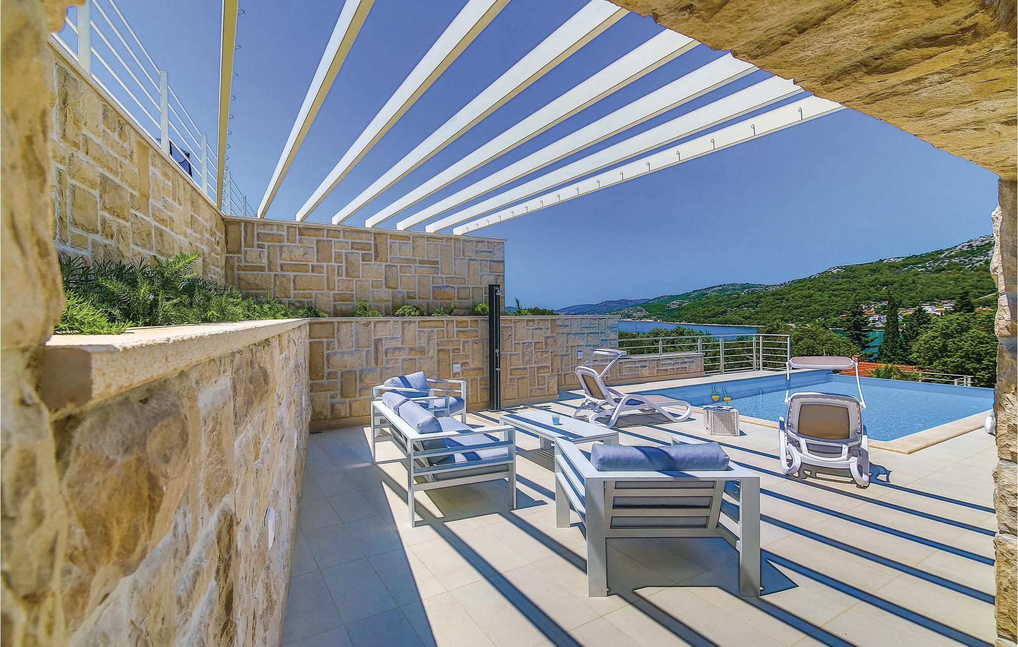 Denne drømmedejlige ferievilla med pool, ligger i den lille by Trget Vranjica og har alt hvad der skal til for at gøre jeres ferie til en uforglemmelig oplevelse. Den skønne indretning er behagelig og komfortable. Slap af i saunaen og jacuzzien og i fitnessrummet kan I komme i form ligesom den opvarmede pool indbyder til vandsjov uanset tid på dagen. Kør en tur til den nærliggende strand og nyd de lune dage ved Adriaterhavet. Gå gennem Trogirs smukke gader kik på kunstværker fra gotikken, renæssancen, barokken og romertiden. Af husets fire parkeringspladser er to overdækkede, en er i en garage.