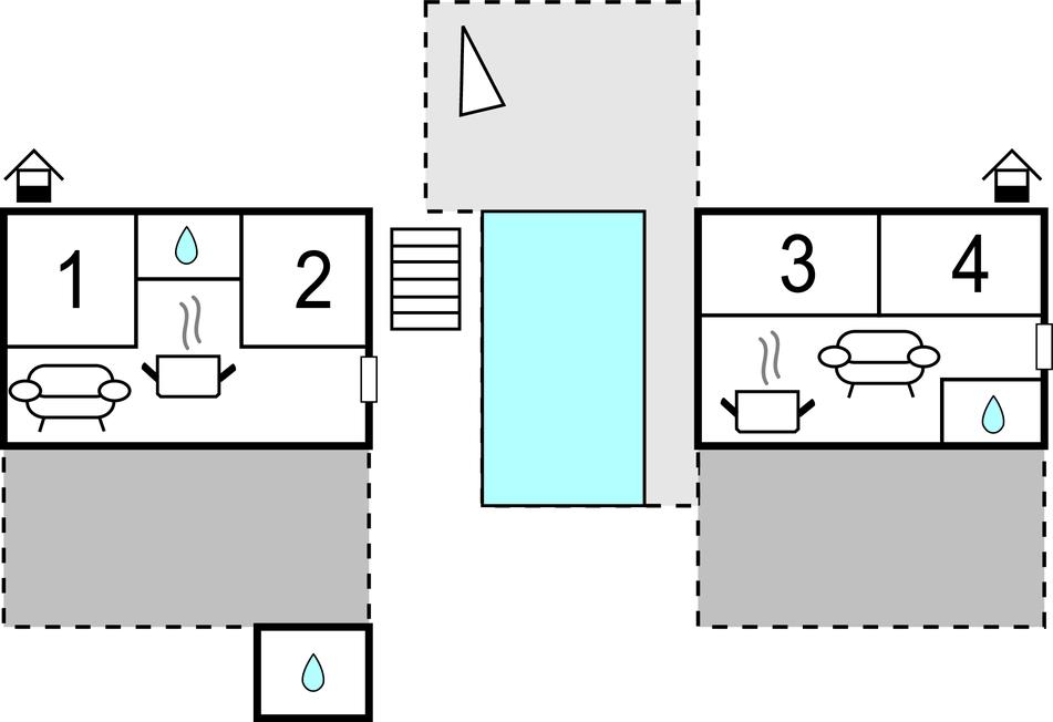 Det moderne hus indeholder to separate lejligheder, der er ideelle til to familier eller grupper af venner, der gerne vil holde ferie sammen, med bevare privatlivets fred. I hver enhed er der to soveværelser, et badeværelse, et køkken og en stue, samt en terrasse med havemøbler. Her er også toilet udendørs. En anden skøn fordel er den udendørs pool, med flot udsigt over havet. Her er både bordtennis, legehus og badmintonbane, så ingen behøver at kede sig.