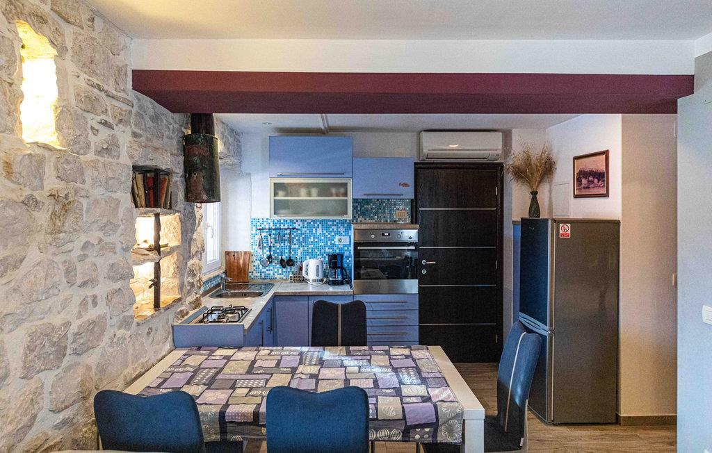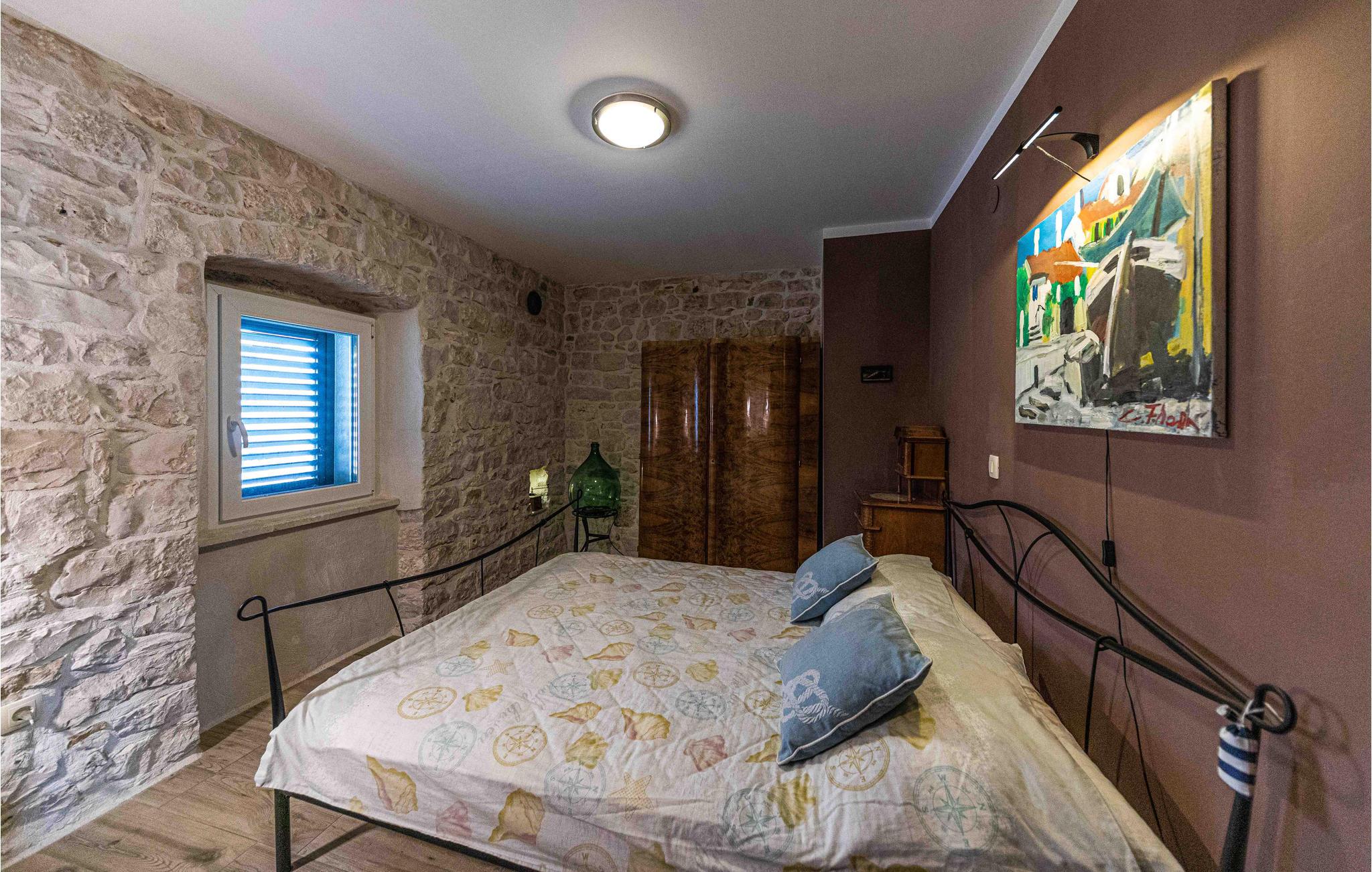 Denne hyggelige lejlighed ligger i et fint, gammelt stenhus med flere små lejligheder. Lejligheden på 1. sal er velegnet til en lille familie, som kan frem til hyggelige, rustikke rammer. På den åbne terrasse kan I få et glimt af kysten og havet og nyde morgenkaffen, inden det går løs med dagens oplevelser. Om aftenen kan I samles på den fælles terrasse og gøre aftensmaden klar på grillen.