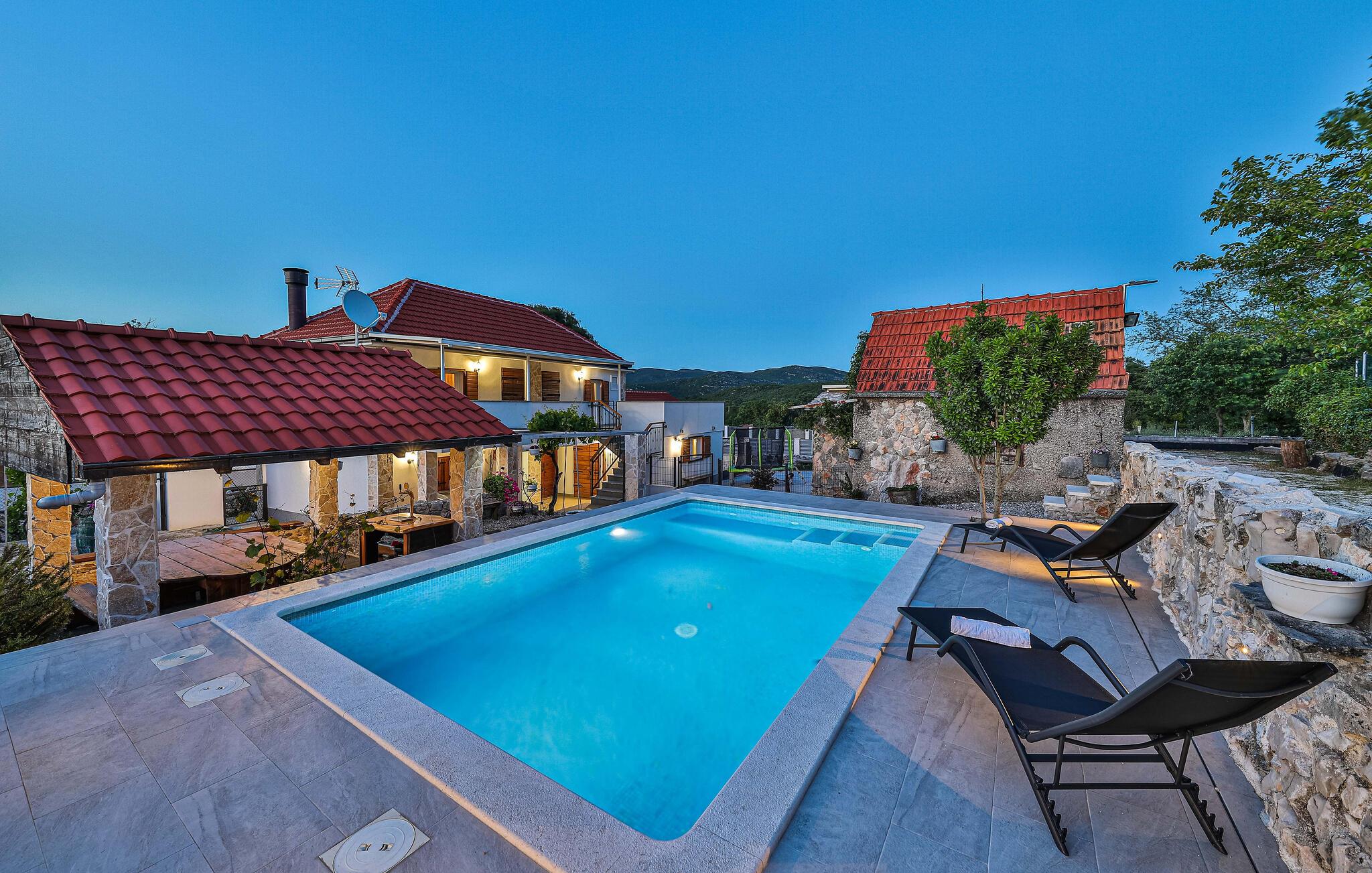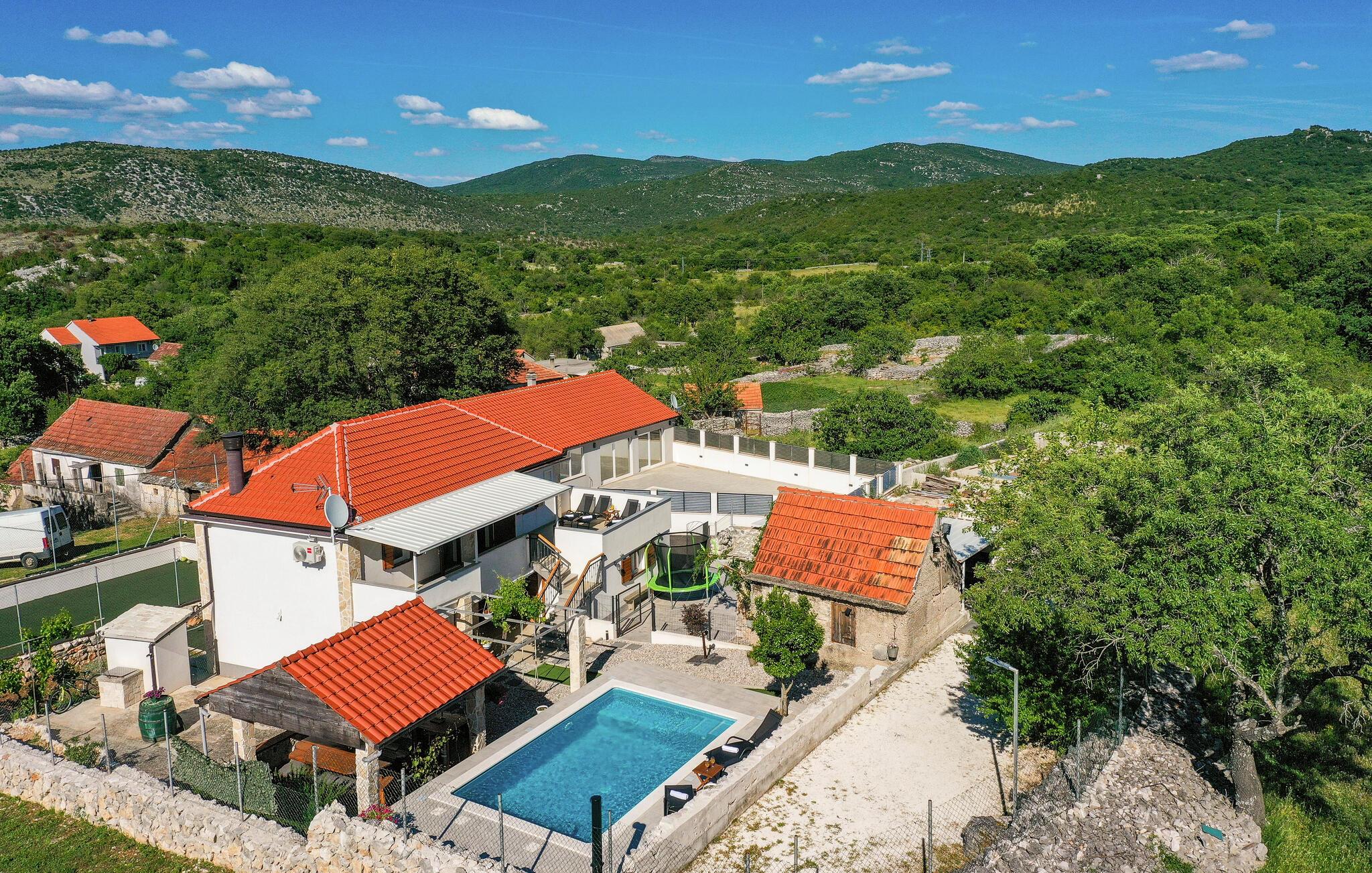 Nyd den vidunderlige udsigt over landskabet i dette smukt beliggende feriehus med pool og sportsfaciliteter.