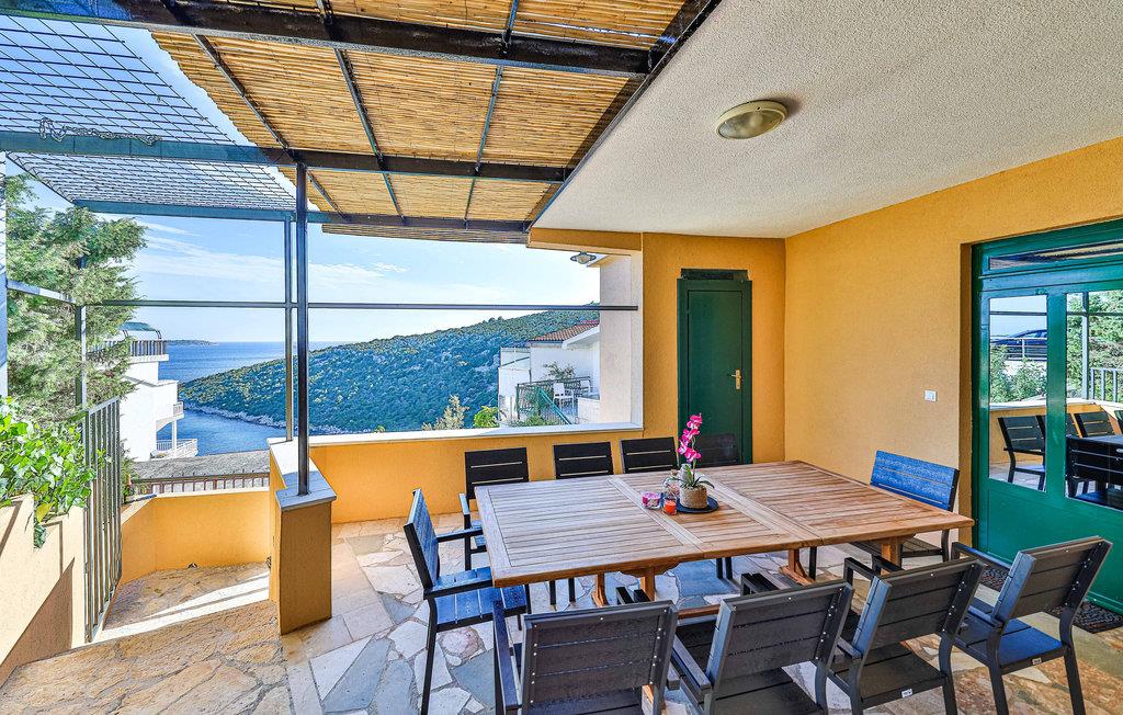 Dette fremragende feriehus består af to lejligheder med hver sin terrasse, der begge har udsigt til havet og det hyggelige liv i Ljubljeva. Huset er ideelt til to familier eller en gruppe venner, der tilbringer deres ferie sammen. Den ene lejlighed består af fire soveværelser, to badeværelser, to stuer og et køkken. Der er også et sommerkøkken foran denne lejlighed. Den anden er indrettet med soveværelse, køkken med stue og et badeværelse. Den opvarmede udendørs pool bliver sikkert jeres foretrukne opholdssted, for her kan I både tage friske dukkerter og nyde den smukke udsigt til det knaldblå Adriaterhav.