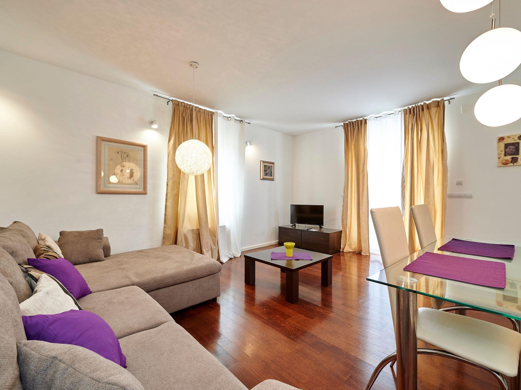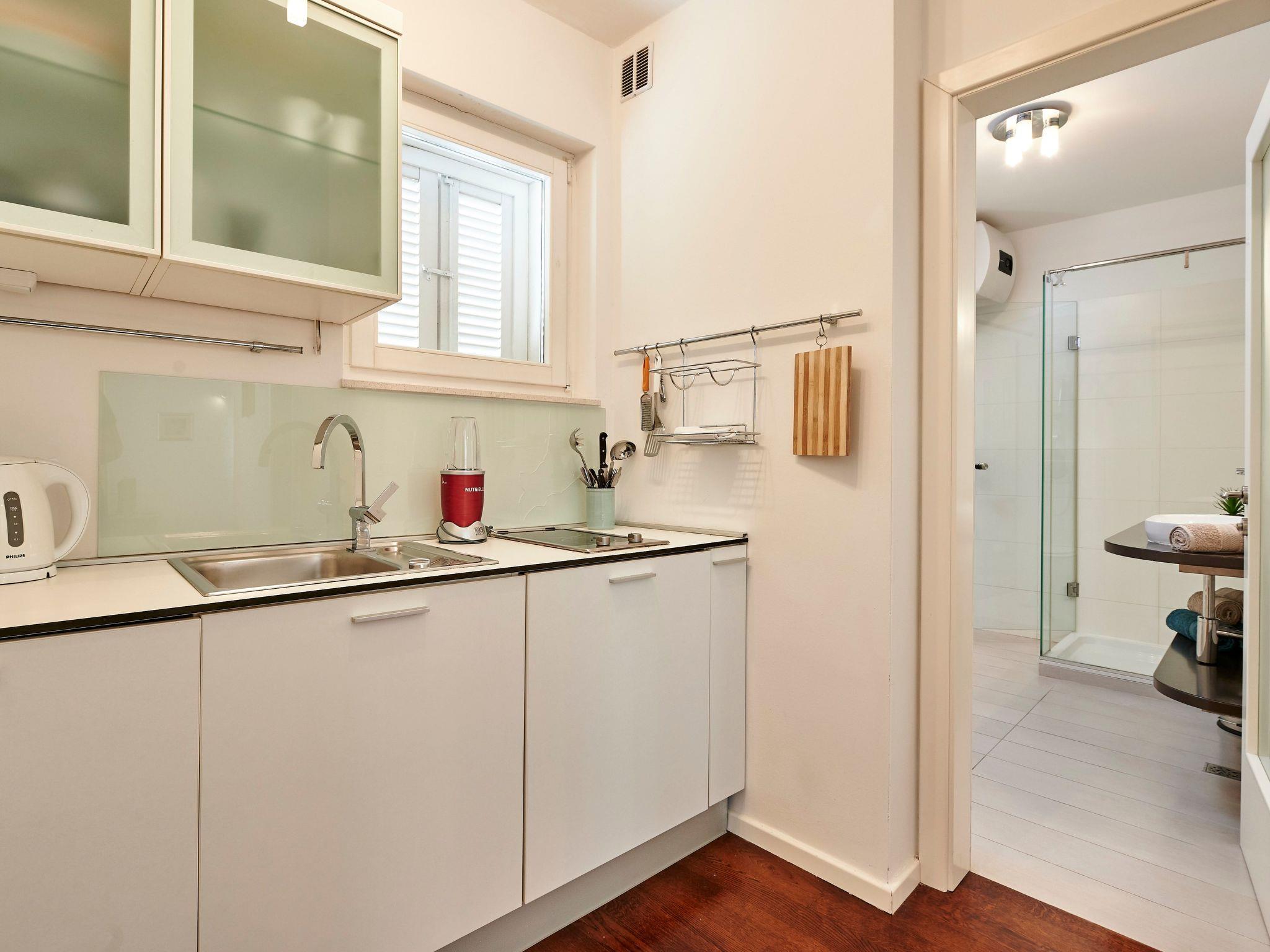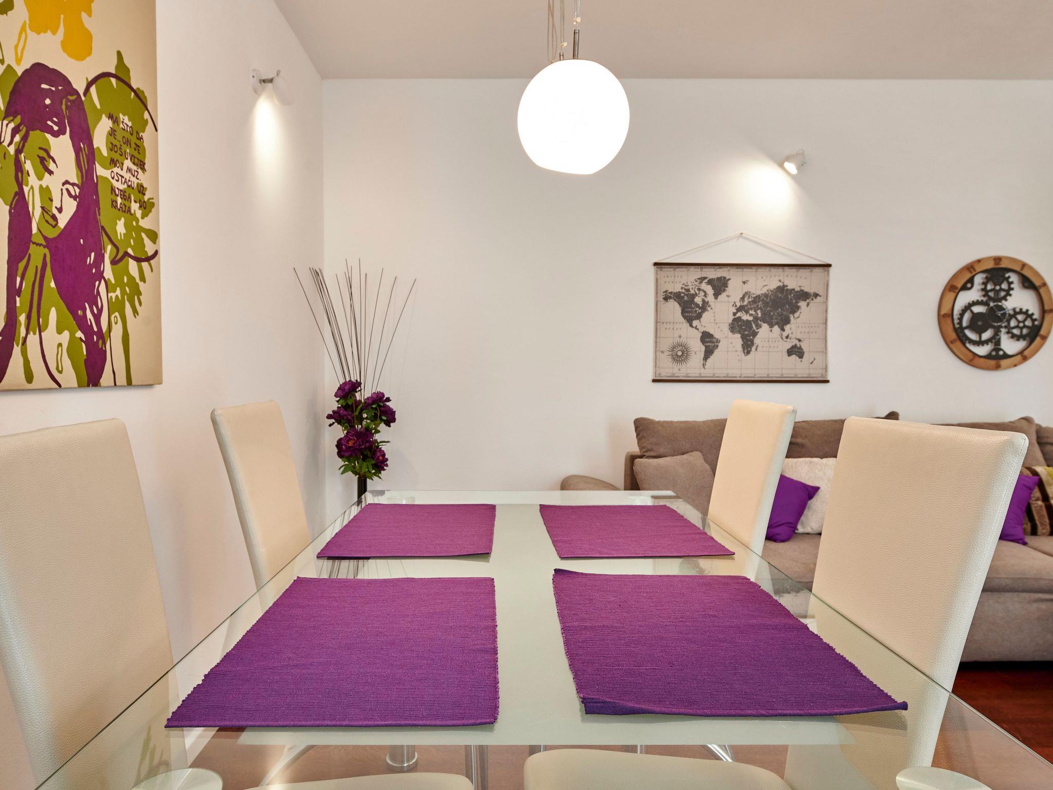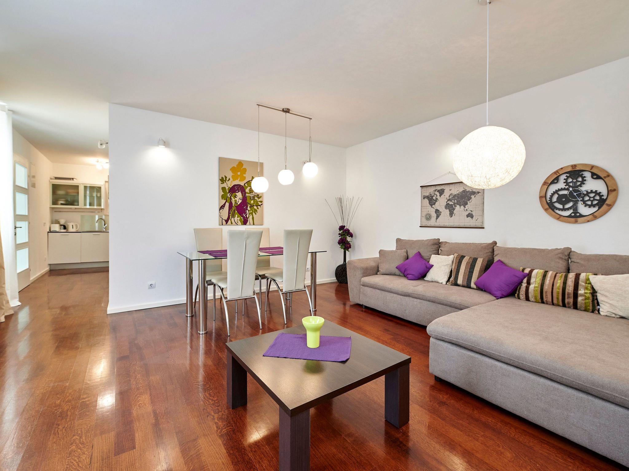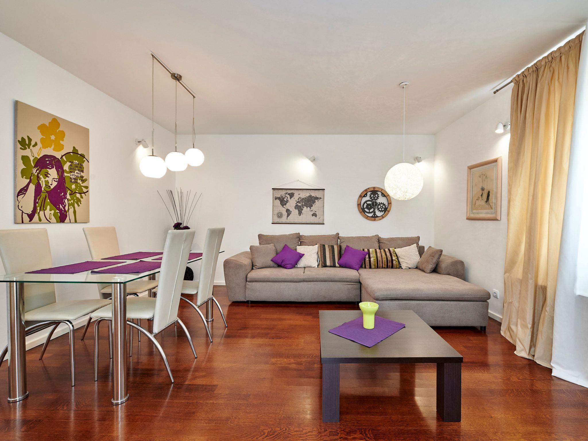 This is one bedroom apartment with one private bedroom. It is suitable for 3 persons. There is one double bed in bedroom (1.60m wide). Living room and dining room is in complex. Sofa in living room provides bed for third person. Kitchen is connected to living space by hall. Bathroom with shower has unerfloor heating. Heating is everywhere in this 60m square apartment. Free Wi-Fi, SAT TV, bad linens and towels are provided to guests.