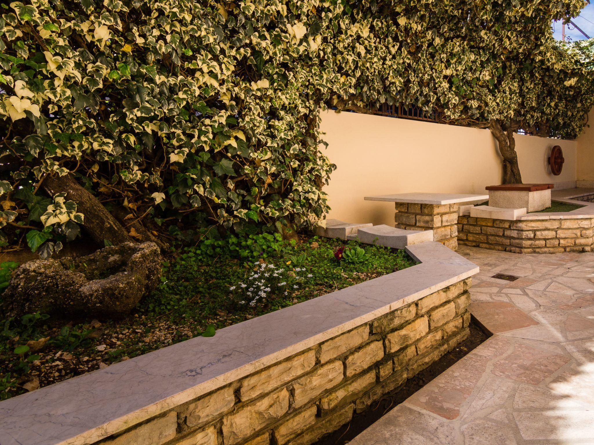 There are four parking places without charge. Outside terrace has an area of 50 m2 with stone table and benches, including a small cottage with a fireplace. The property is fenced and garden is suitable for children.