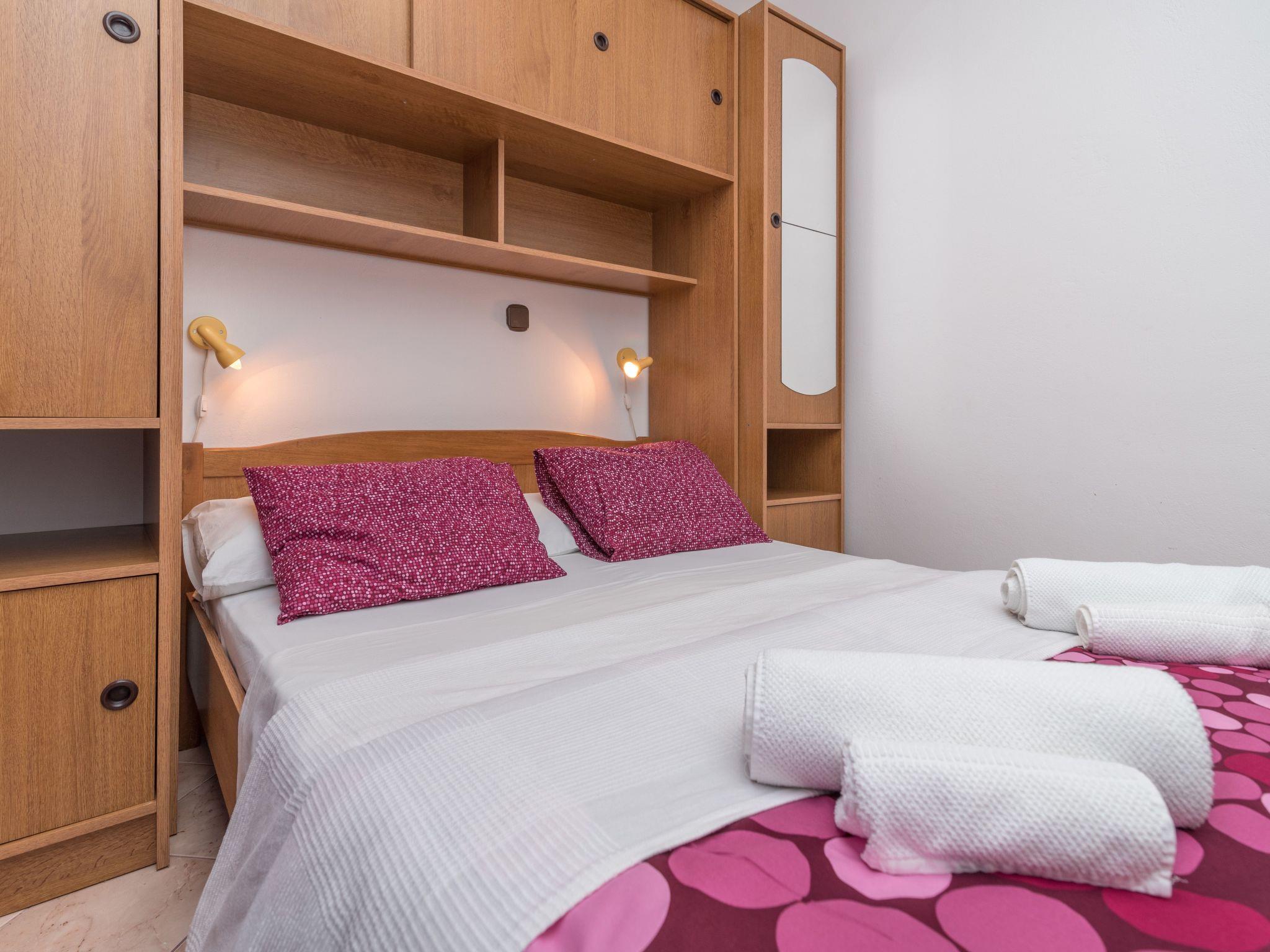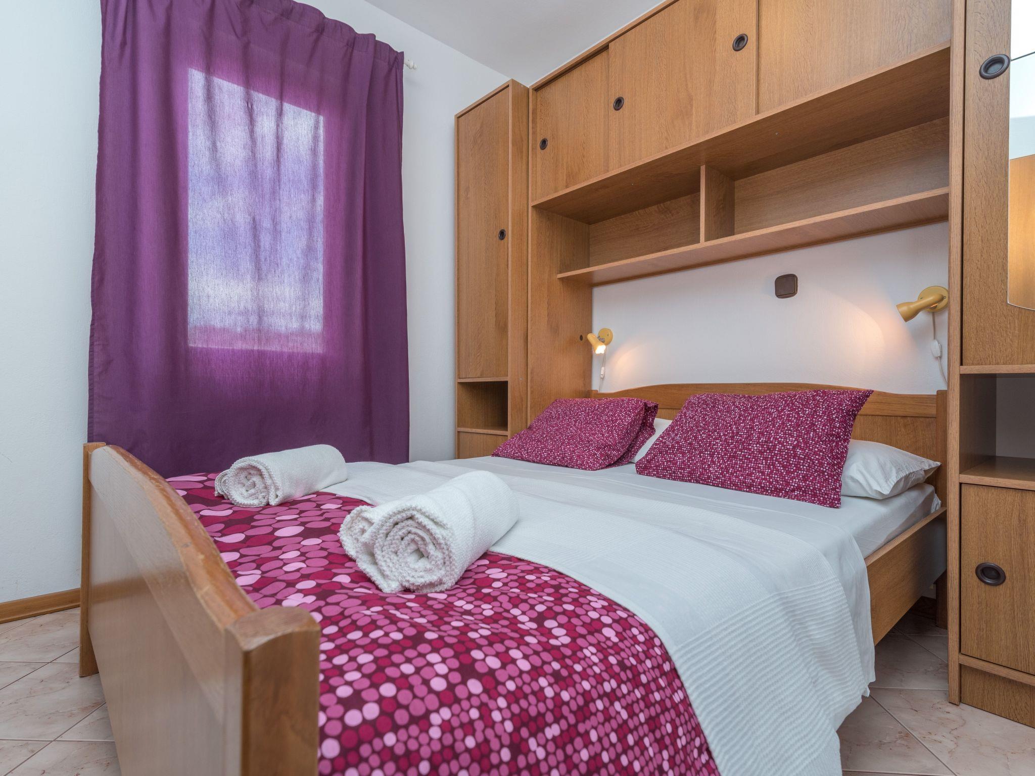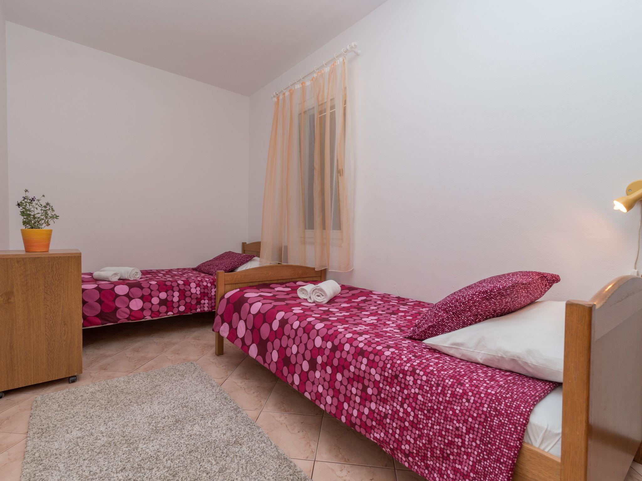 Fully equipped two bedroom apartment with a private balcony and a shared garden and sunny terrace This holiday apartment is located in the Dalmatian coastal town of Okrug Gornji, only approximately a two-minute walk from the beach, shops, restaurants, a bakery, etc.