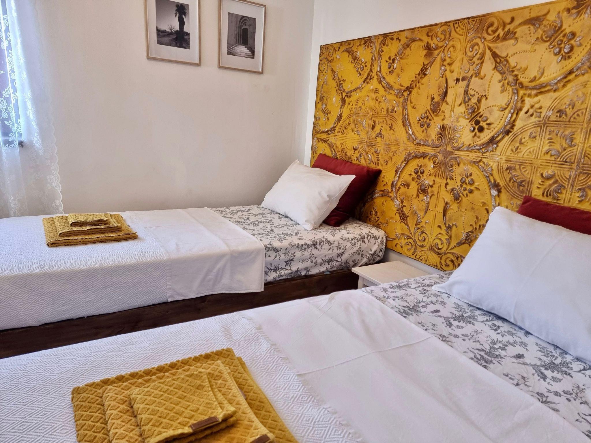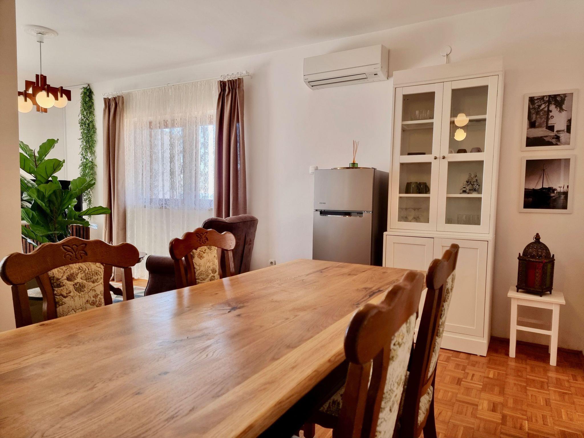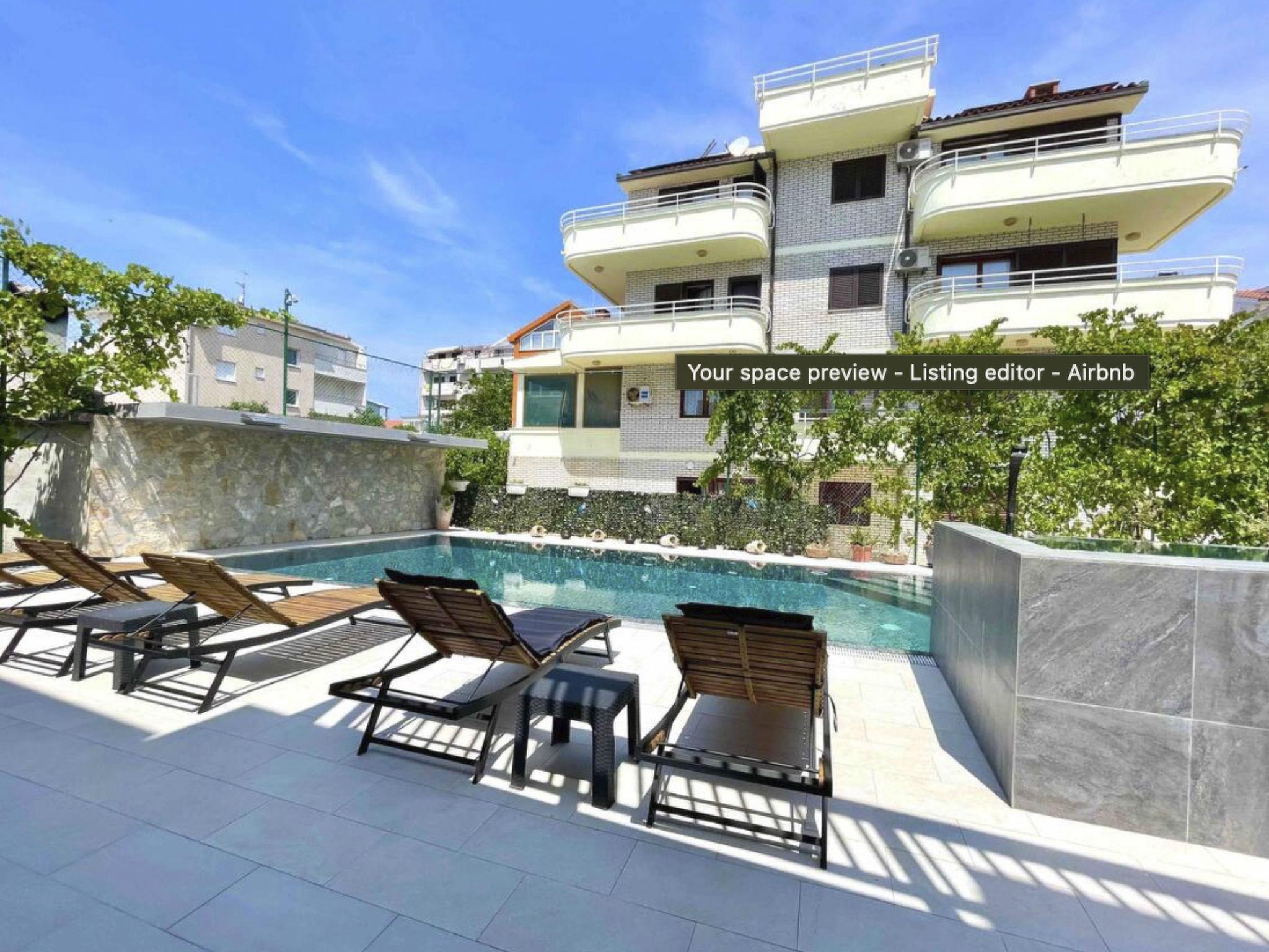 Relax with your entire family at this peaceful place to stay. Spend summer afternoons in the private swimming pool, which is shared only with property guests(a total of seven apartments), or enjoy the sun on the private balcony. The interior of the apartment is furnished with charming décor and is equipped with Wi-Fi, air conditioning, private parking, and a brand-new kitchen. It features two bedrooms with a double bed and a second bedroom with two single beds.